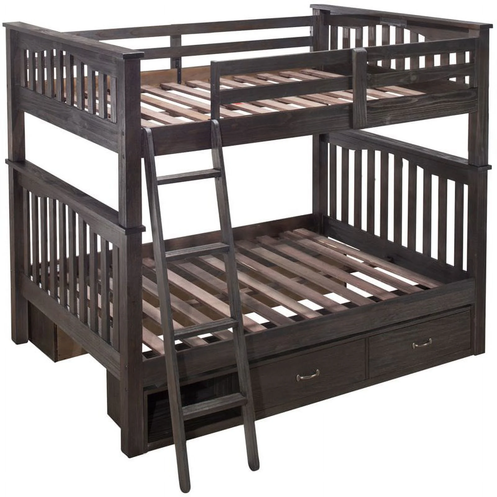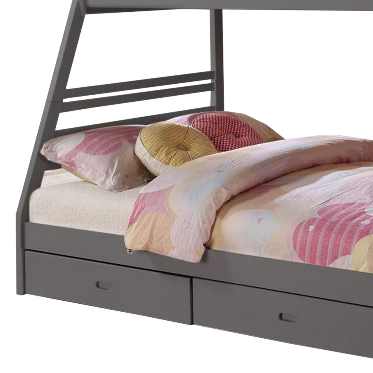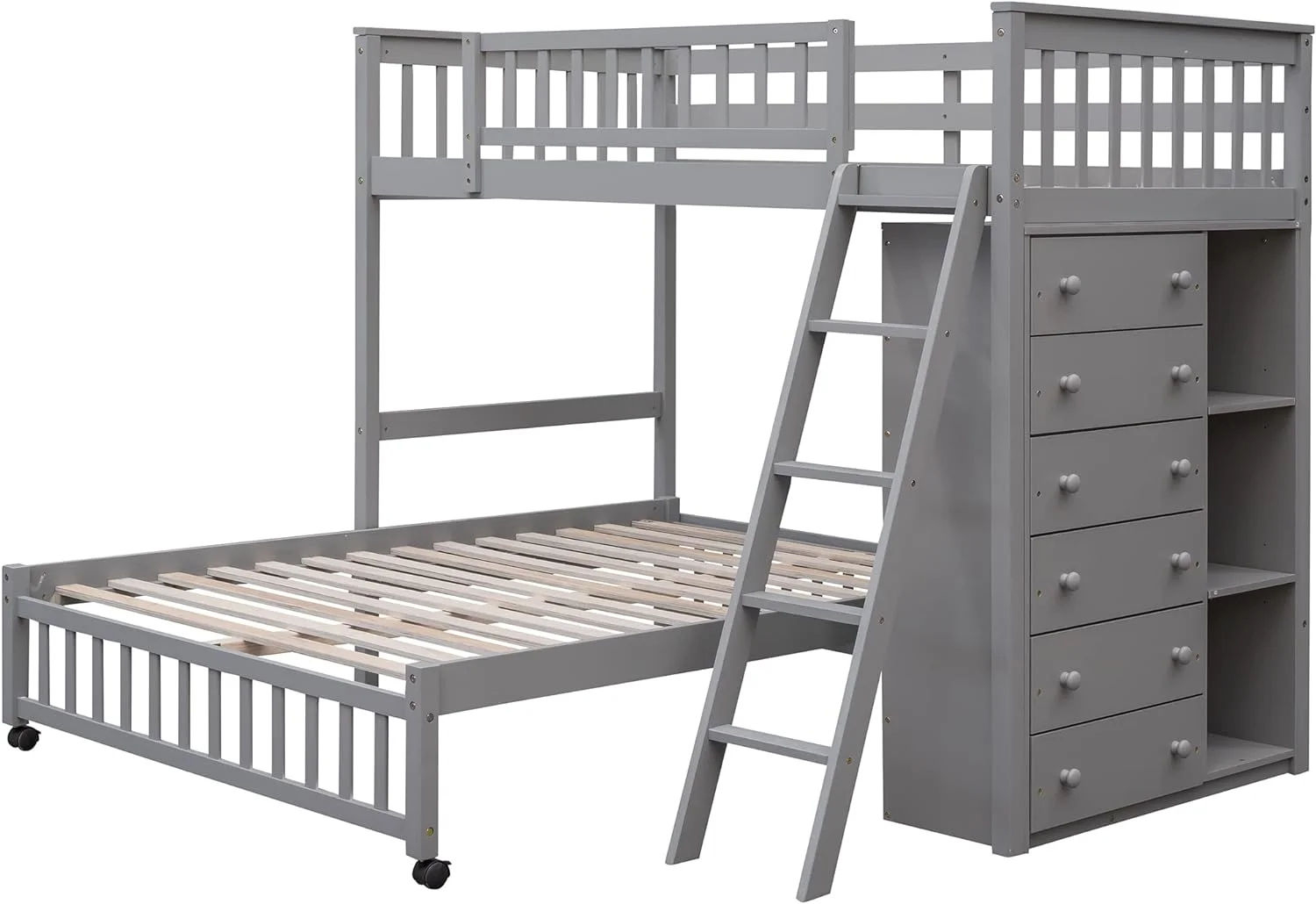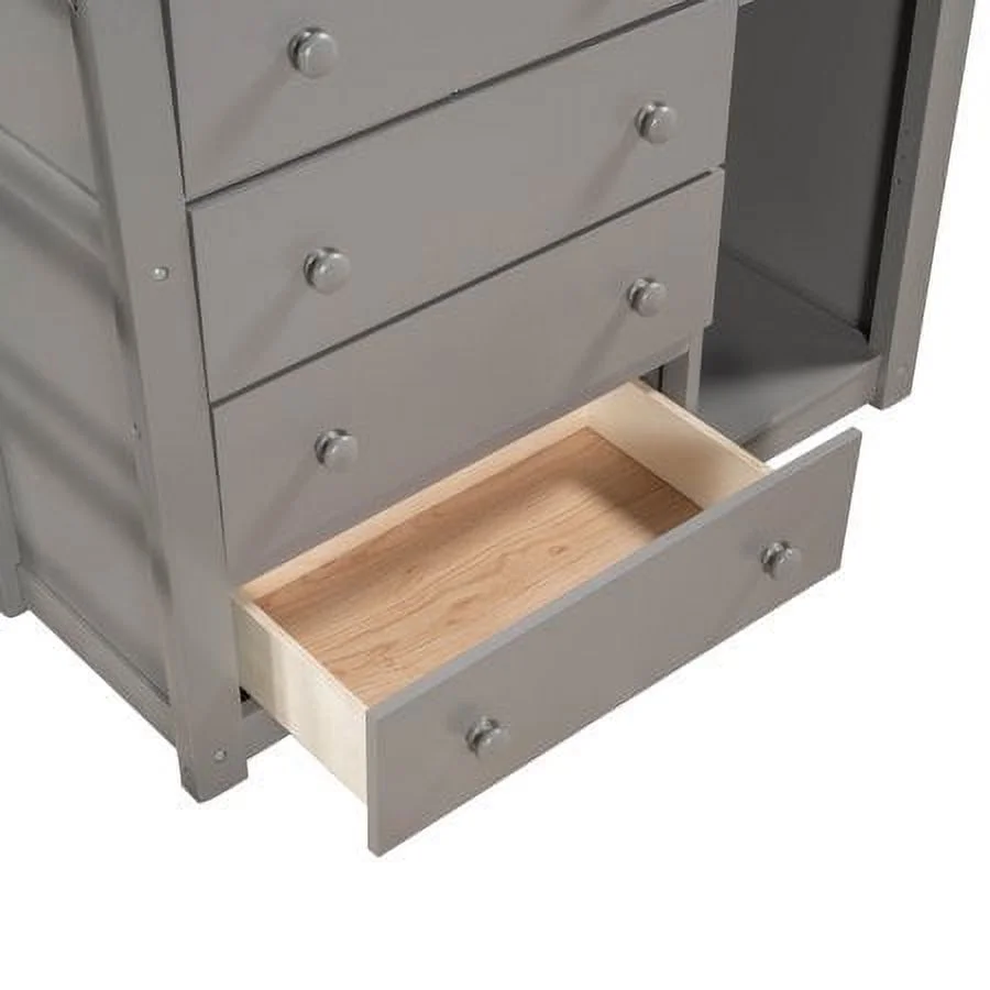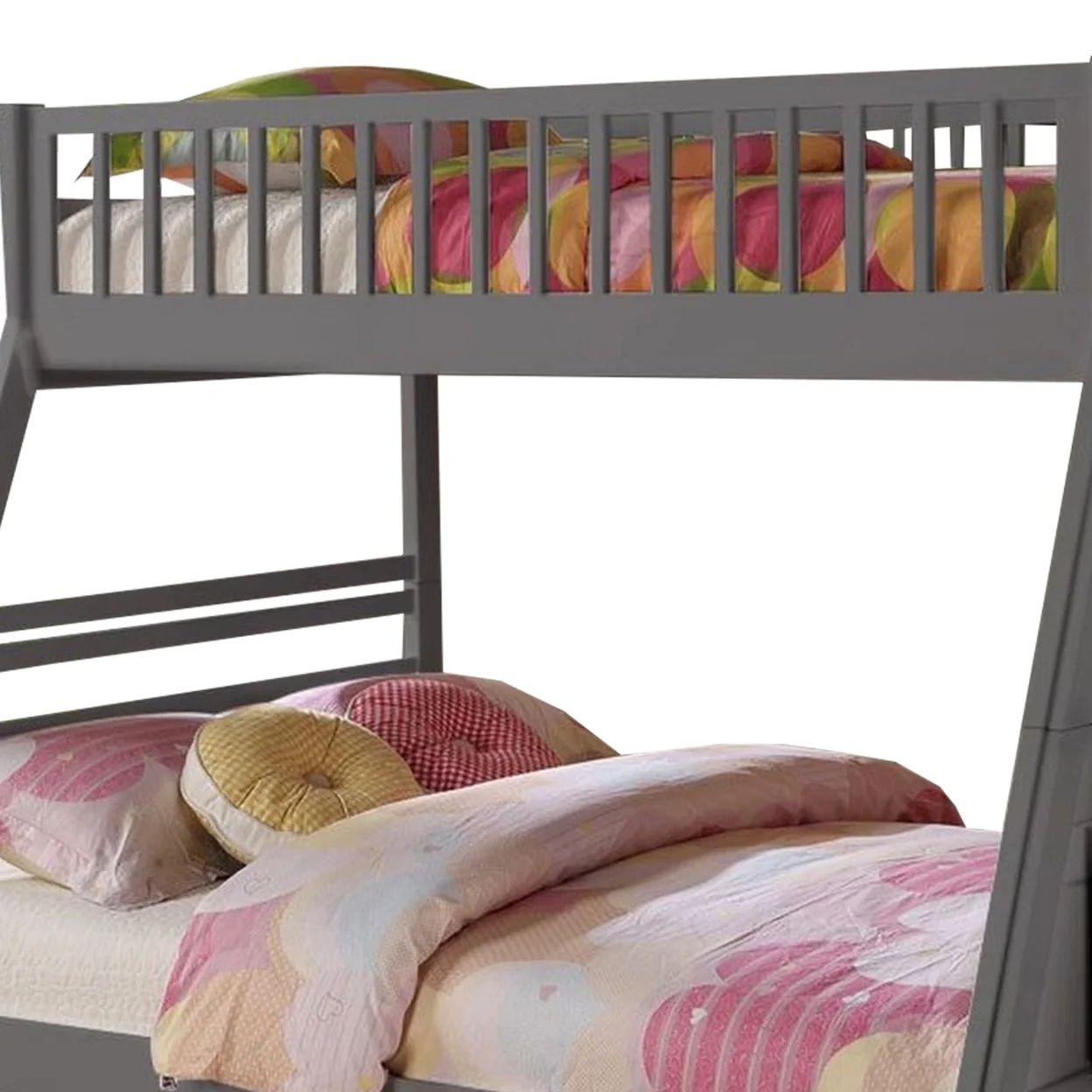 2 Drawer Wooden Twin Over Full Bunk Bed with Storage Staircase, Gray- Saltoro Sherpi