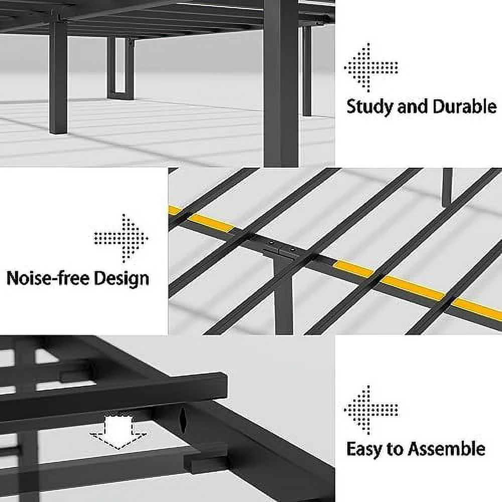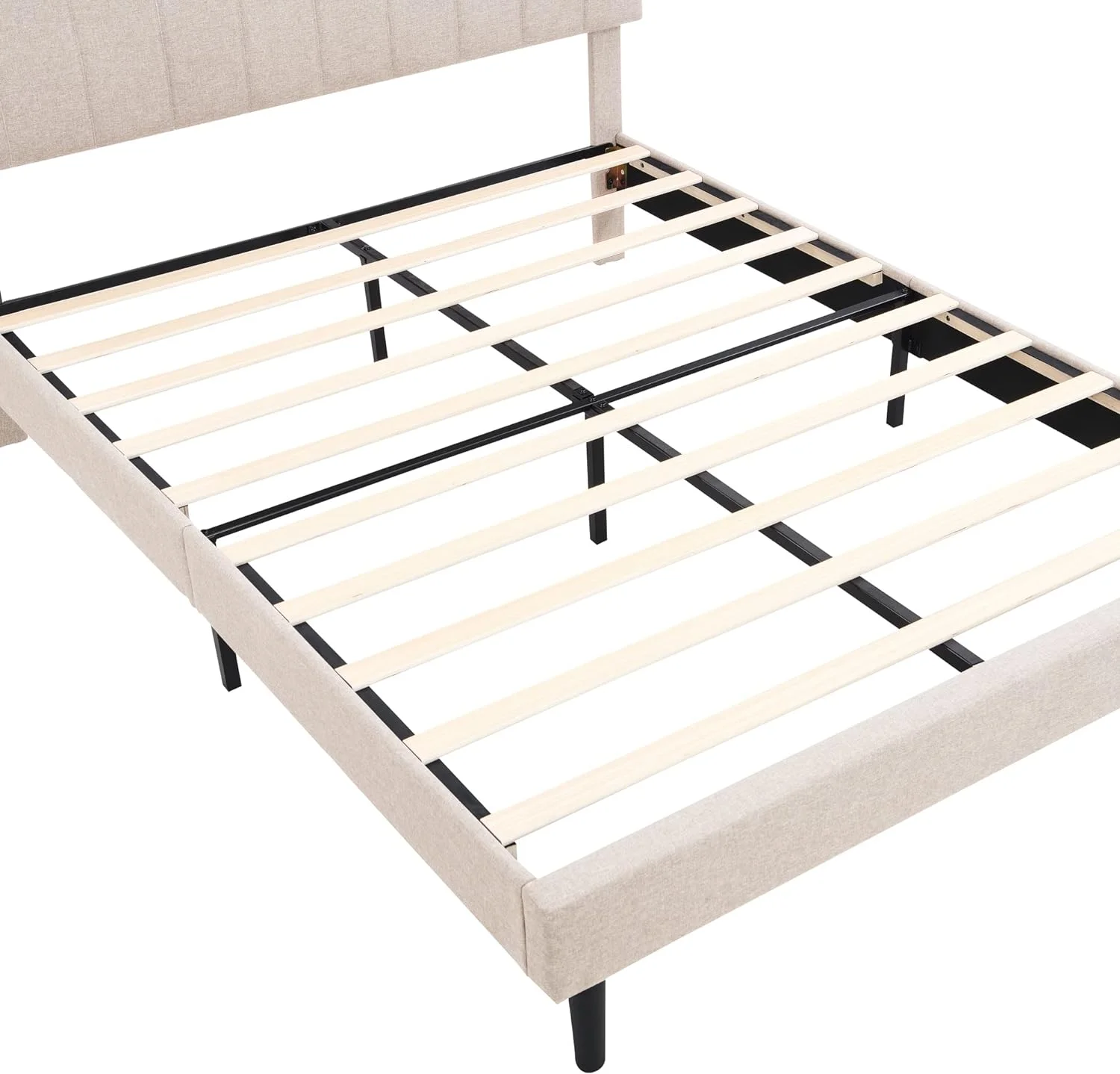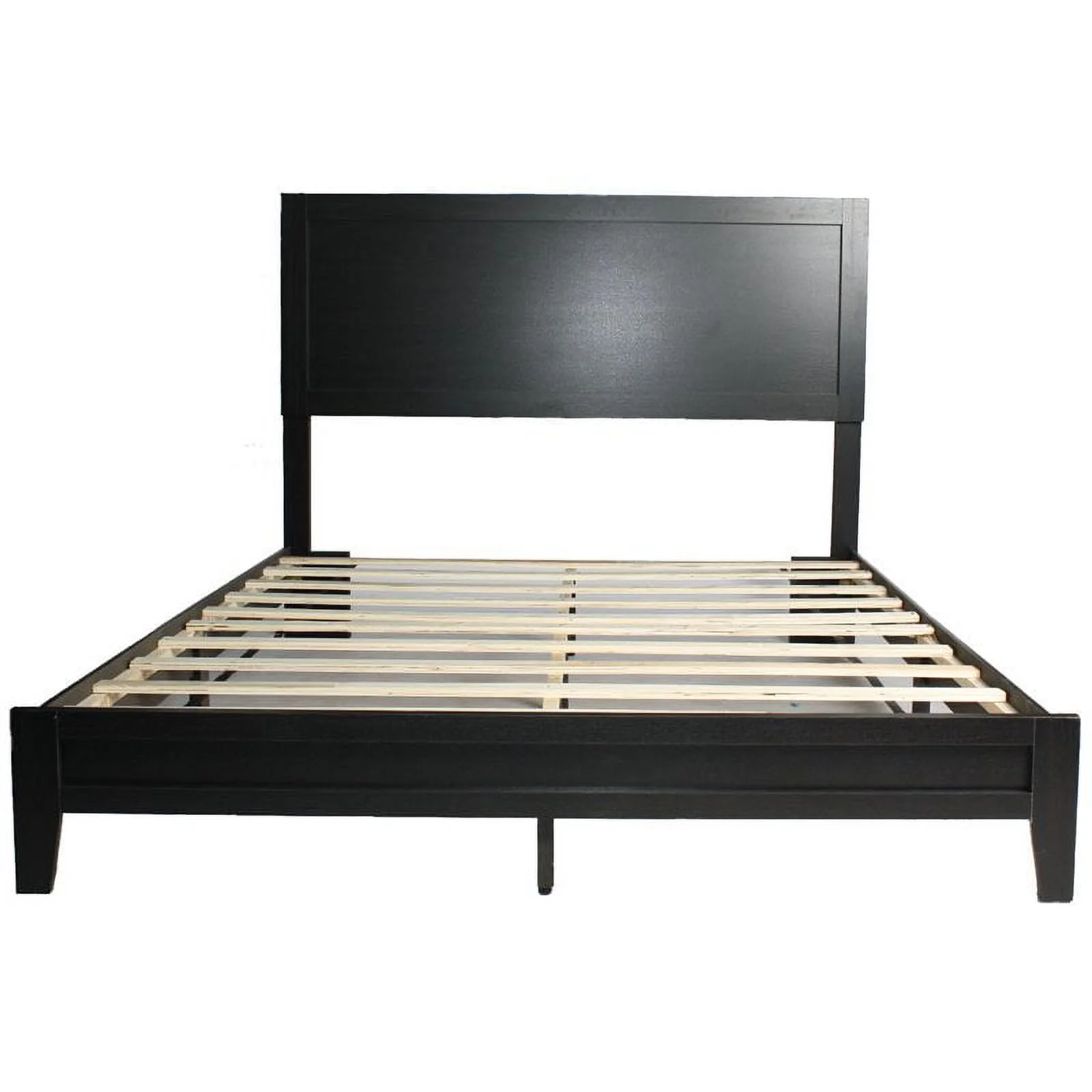 Benjara Elle Queen Size Bed, Low Profile, Black Button Tufted Upholstered Headboard