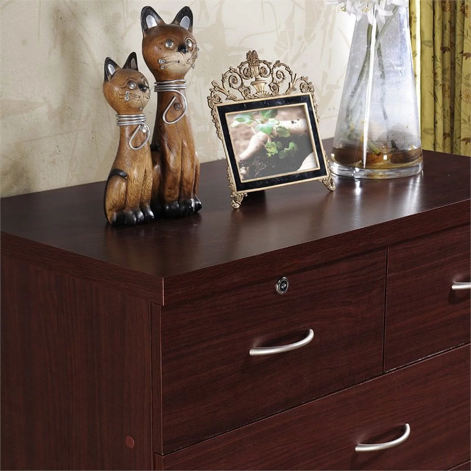 Pemberly Row Country Rustic 4 Drawer Storage Chest Dresser in Jamocha Wood