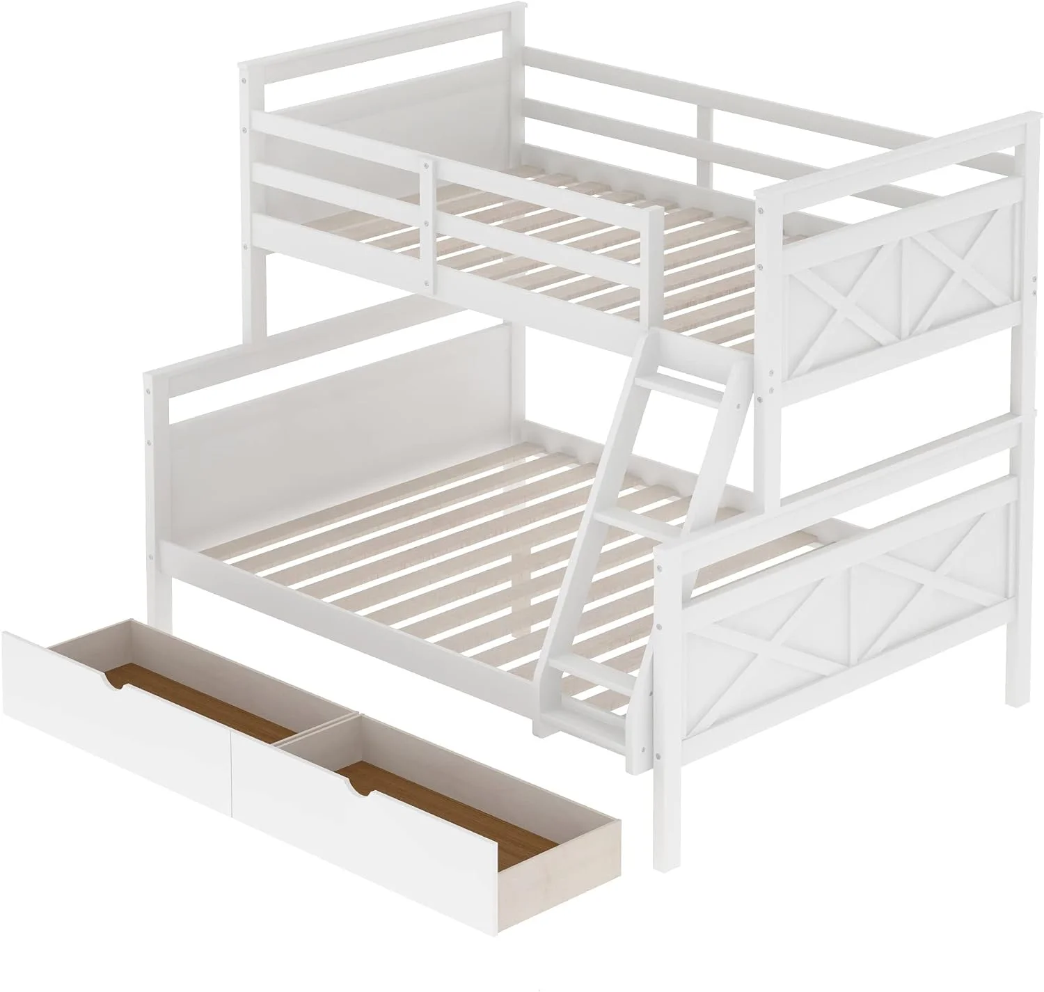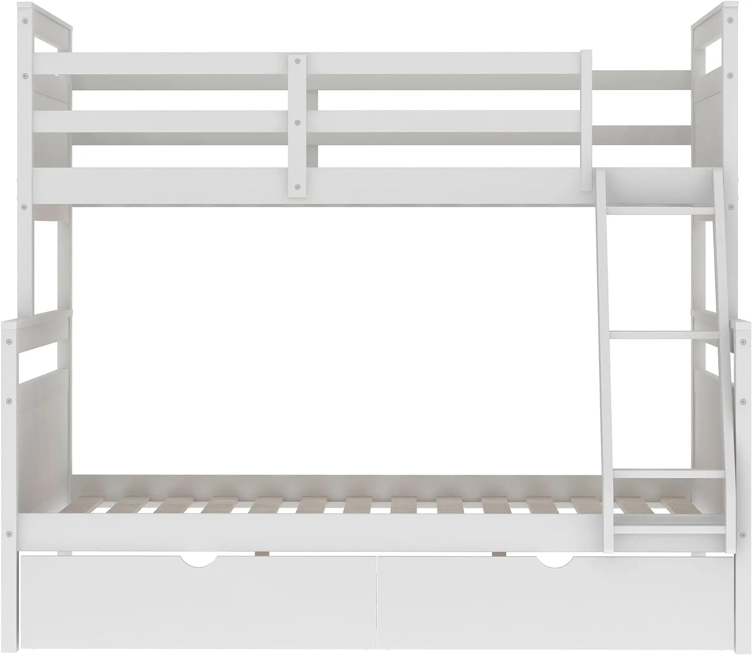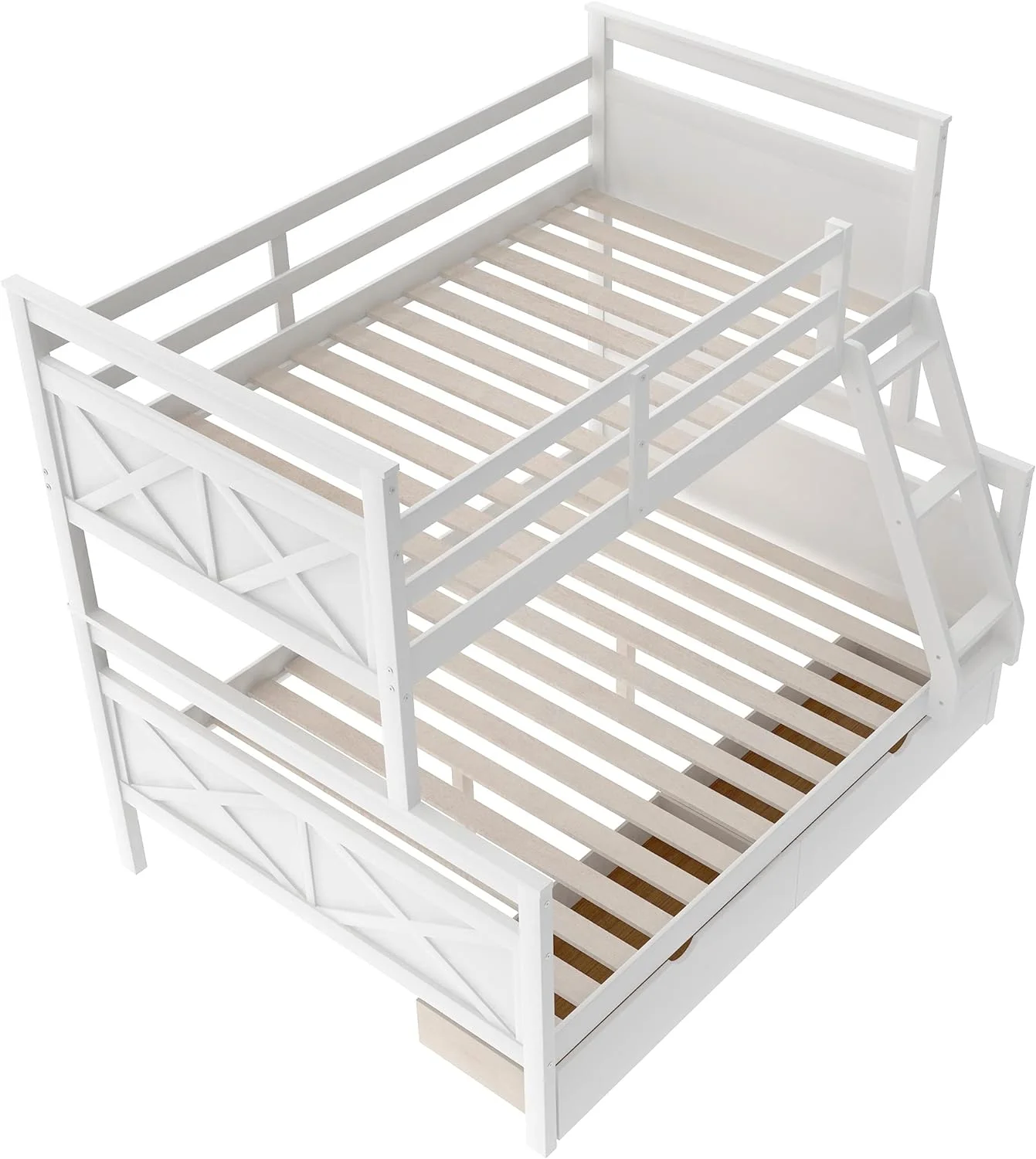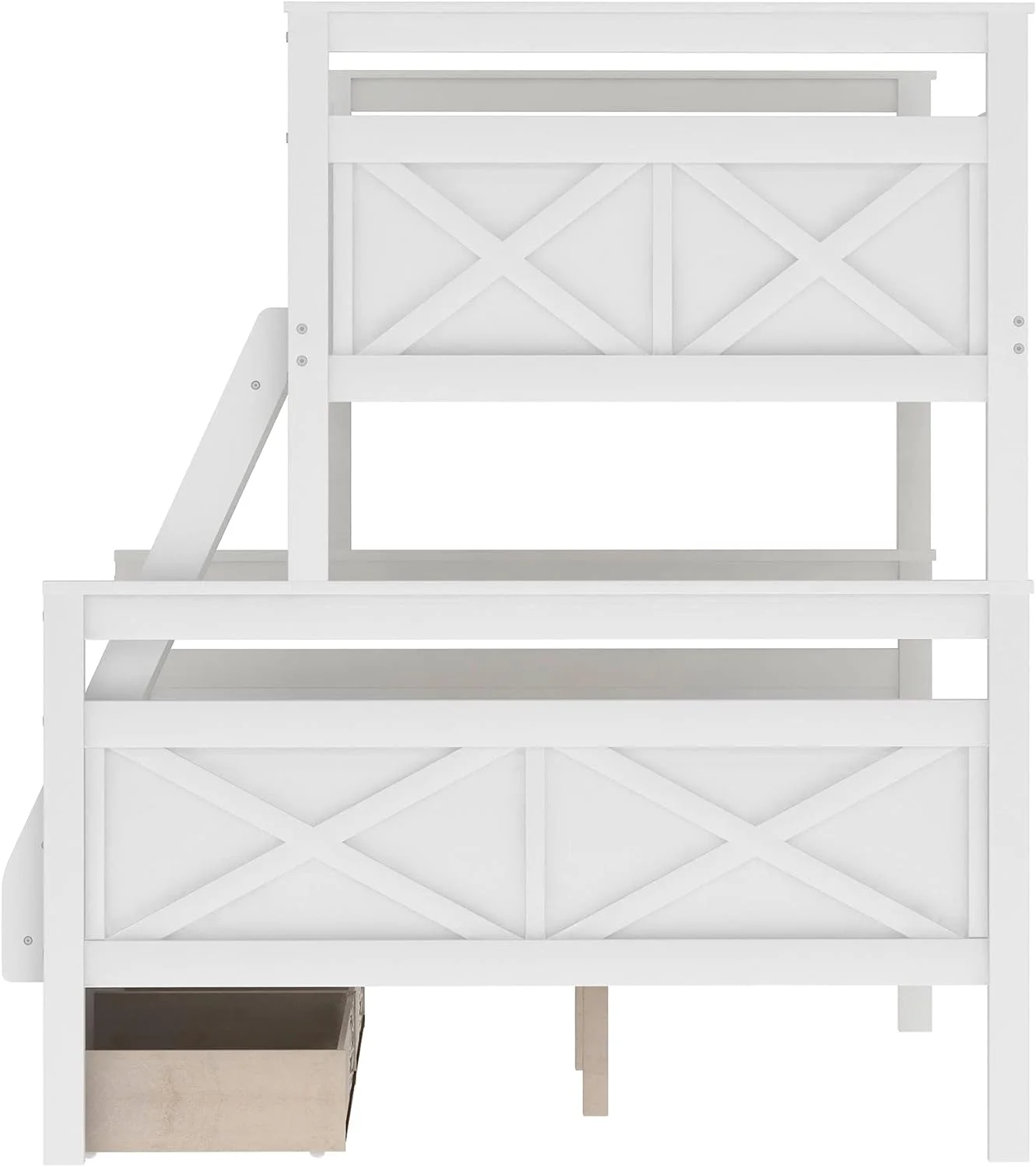 Benzara BM163463 Wooden Twin & Full Bunk Bed with Storage Ladder & Trundle, White