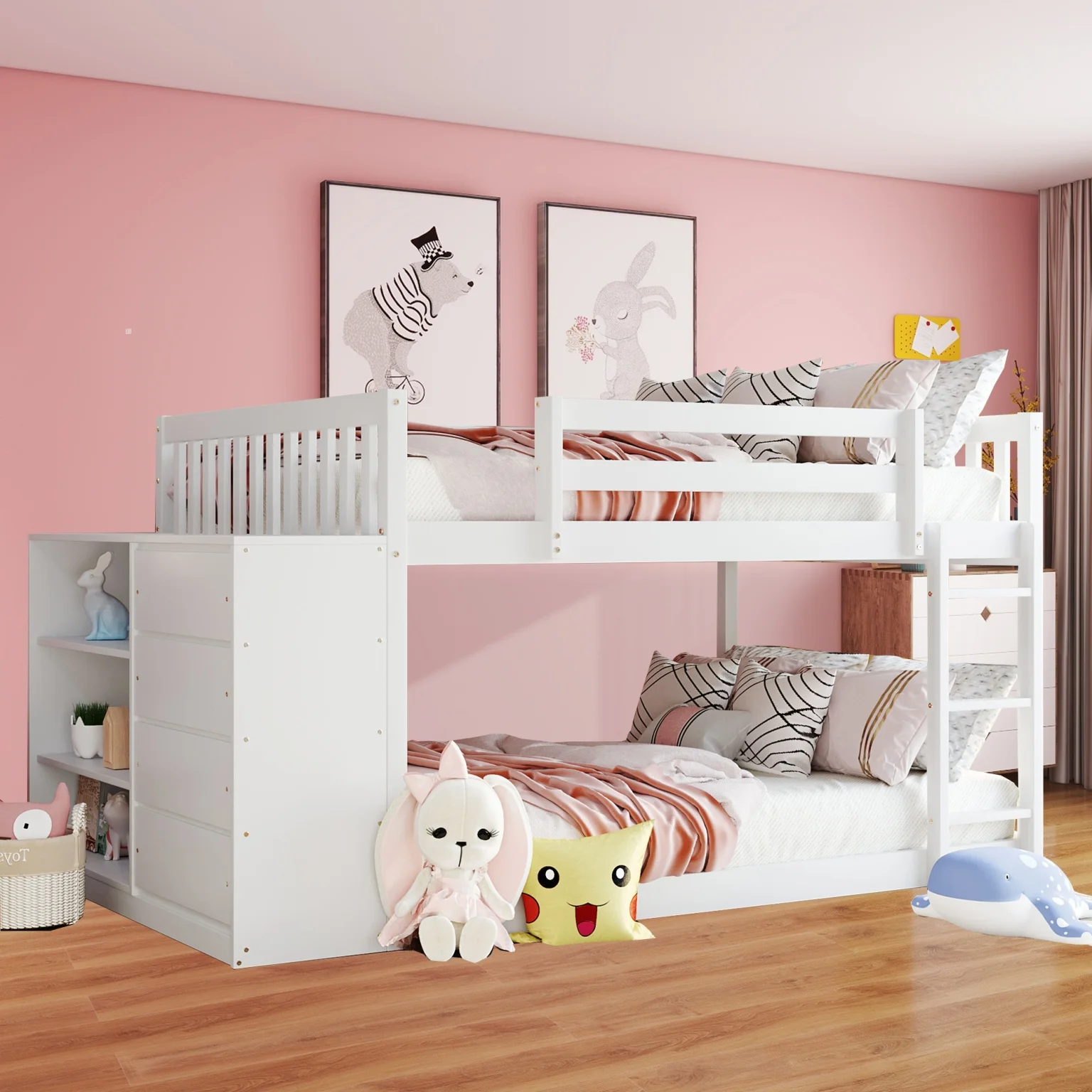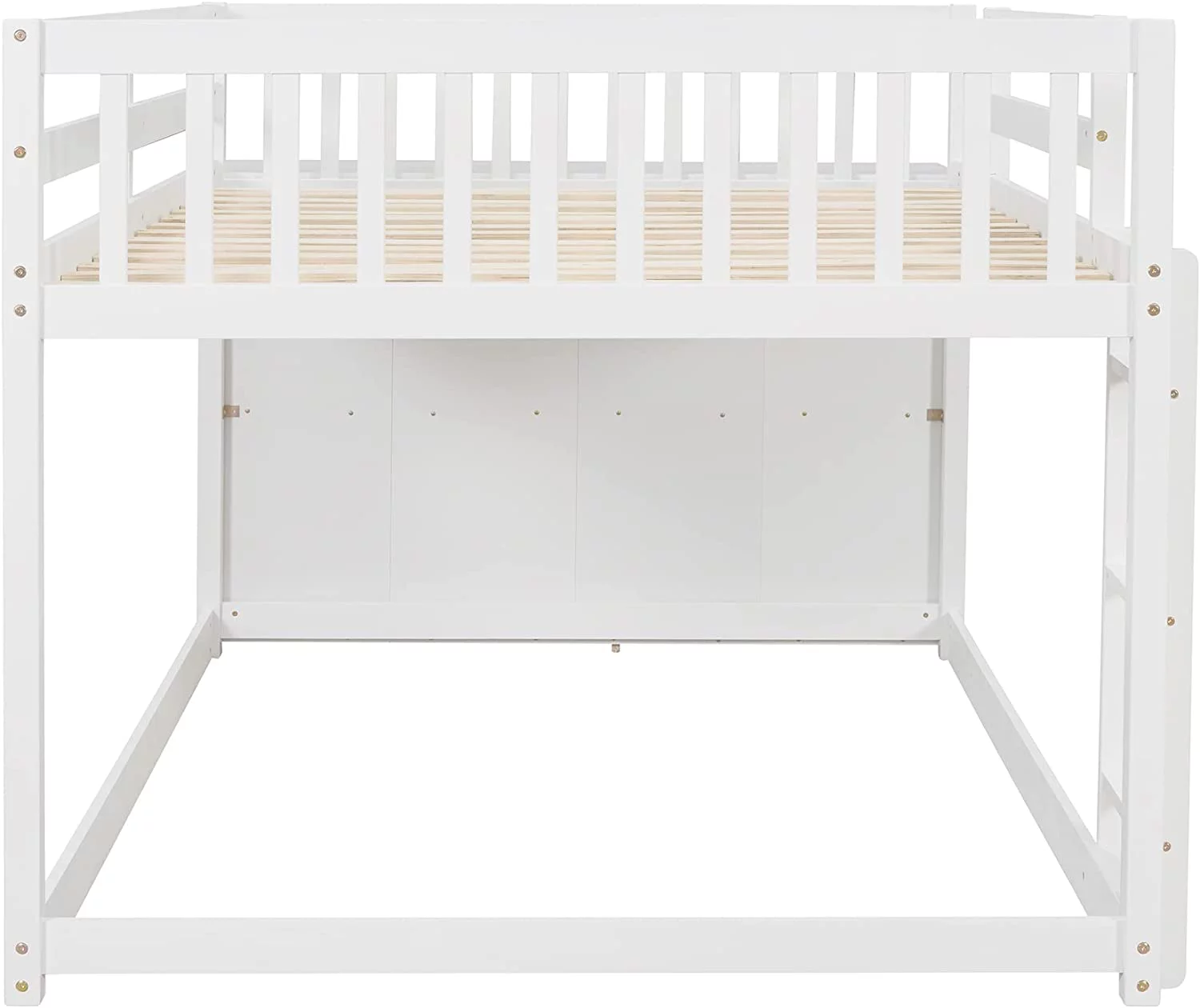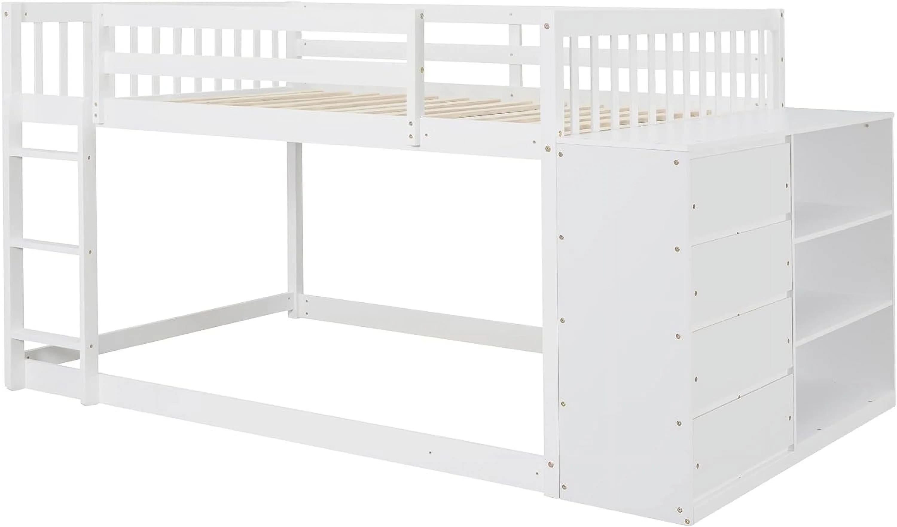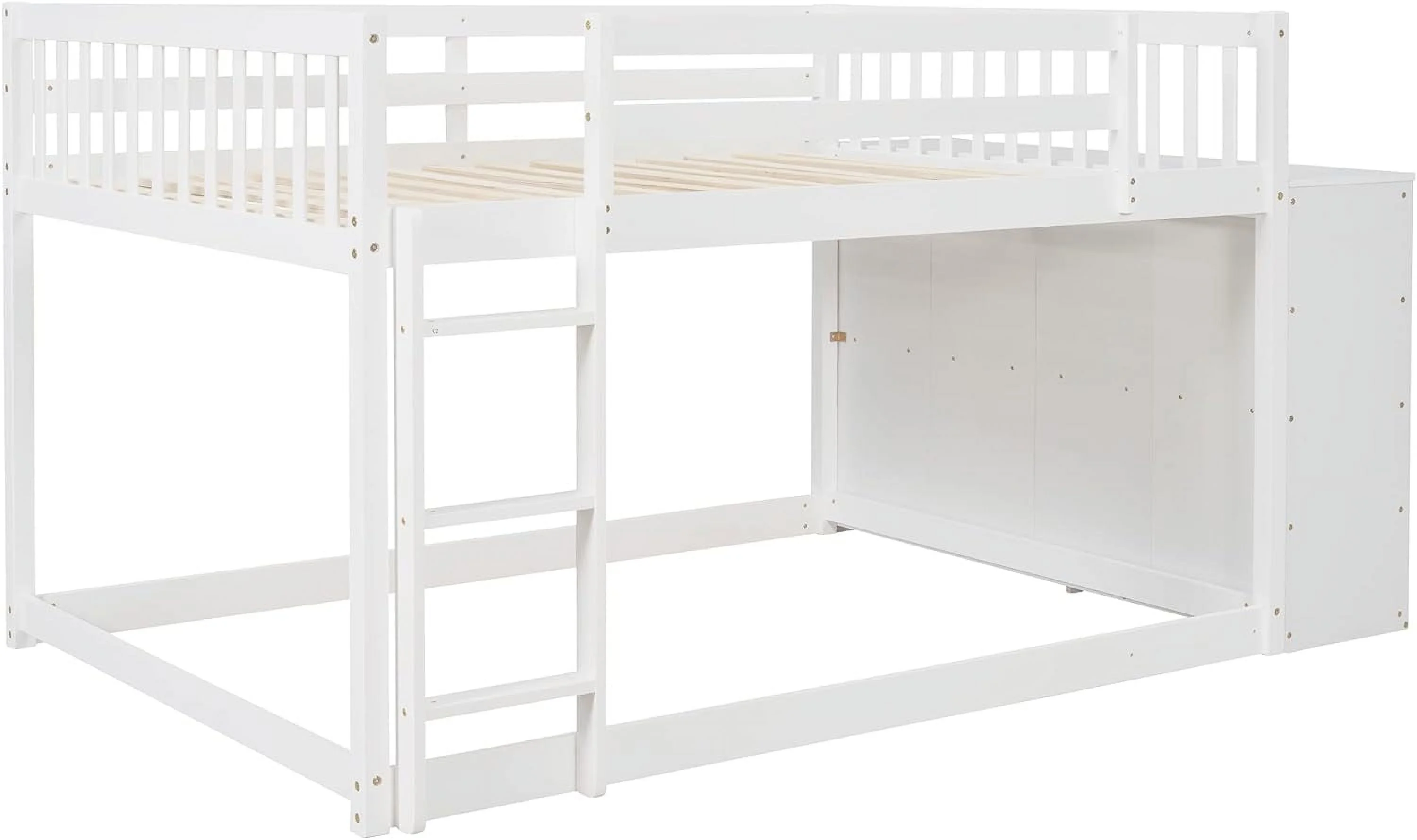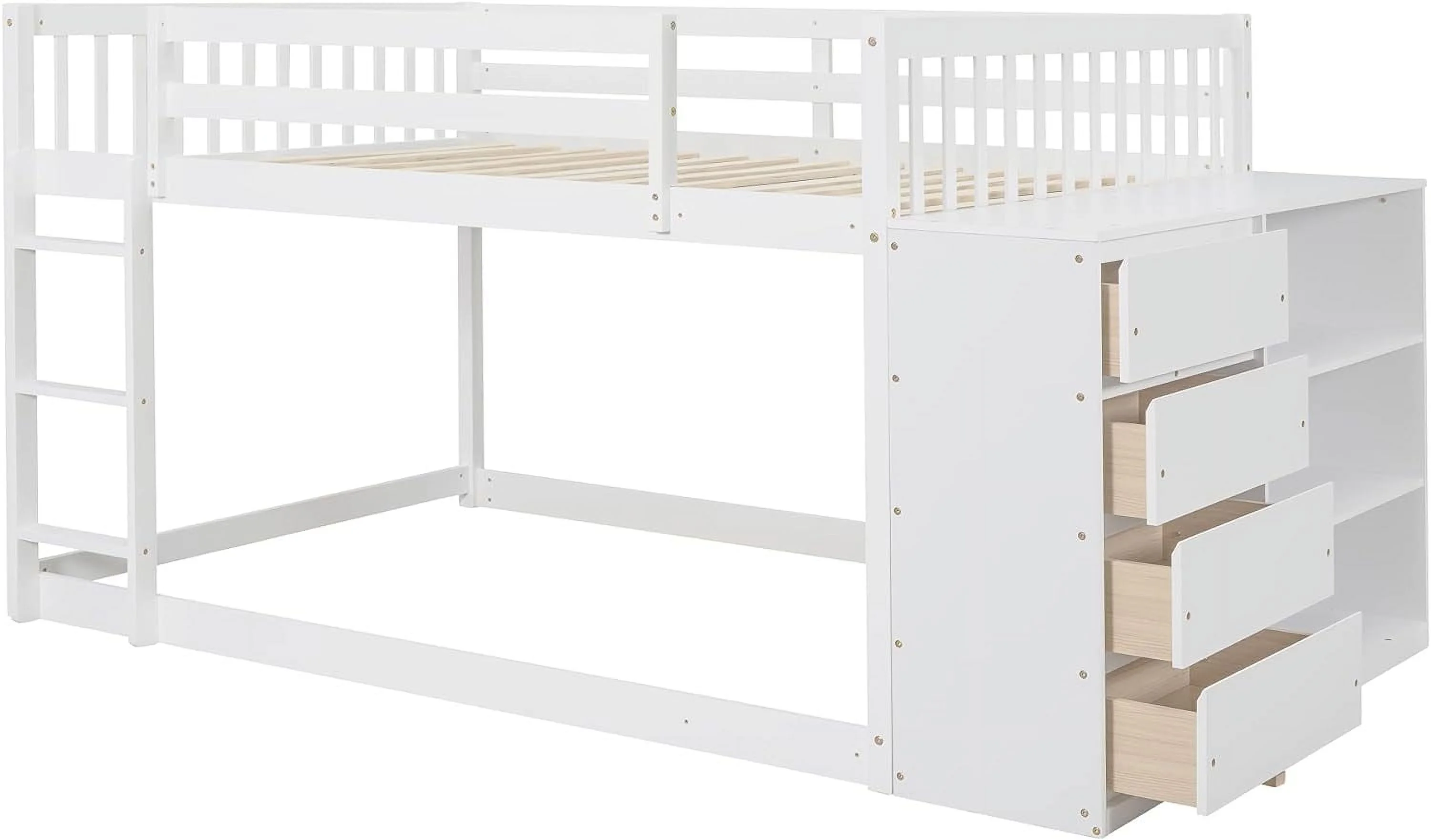 Benzara BM163463 Wooden Twin & Full Bunk Bed with Storage Ladder & Trundle, White