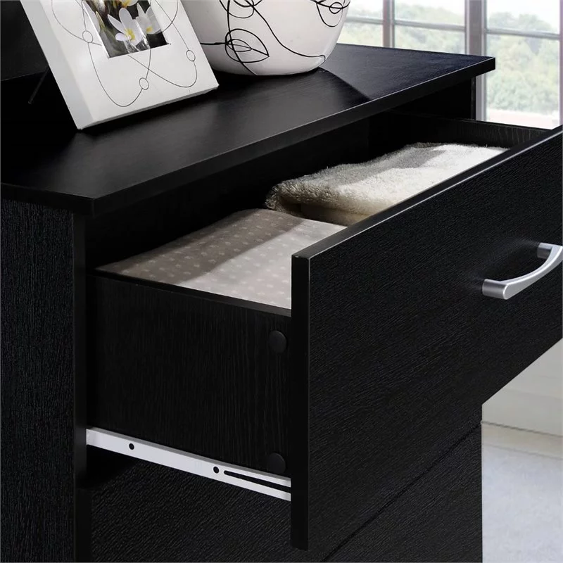 Home Square 2 Piece Bedroom Set wit 2 Three Drawer Chests in Black Wood