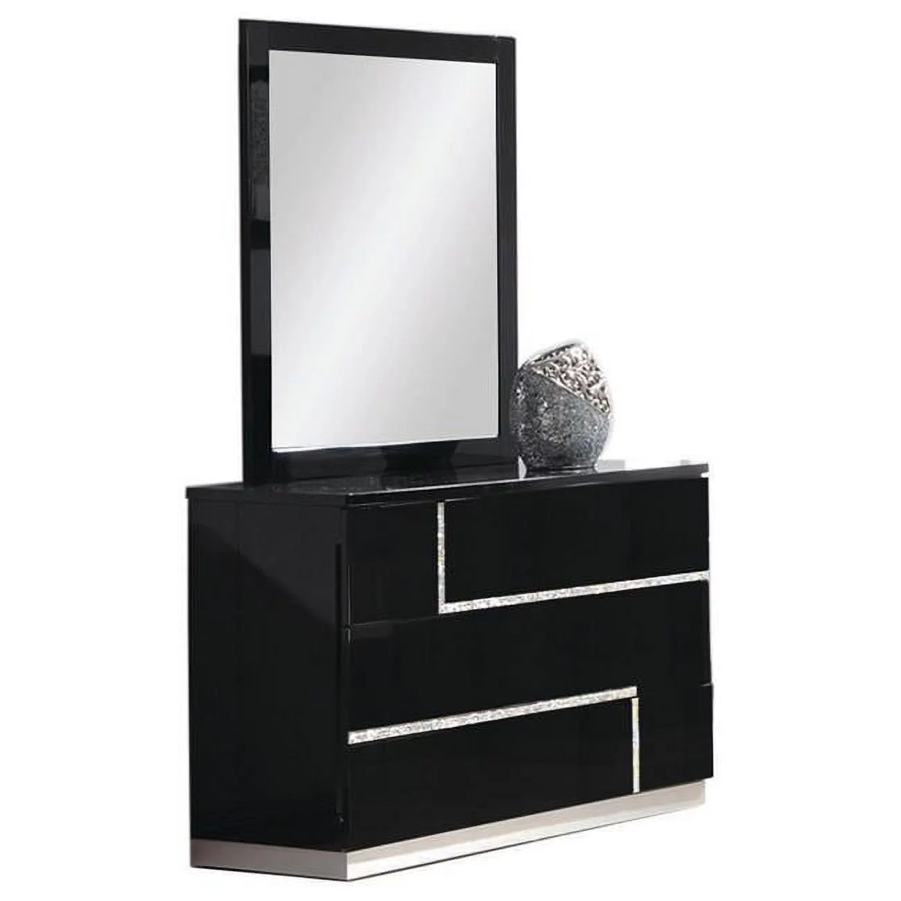 Best Master Barcelona Poplar Wood Dresser and Mirror Set in Black High Gloss