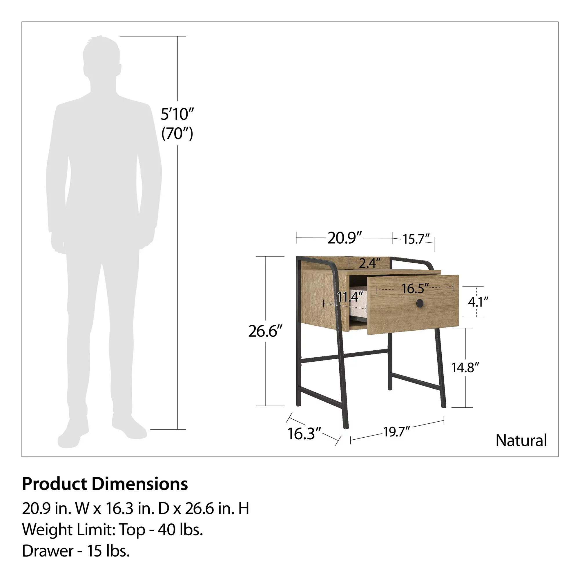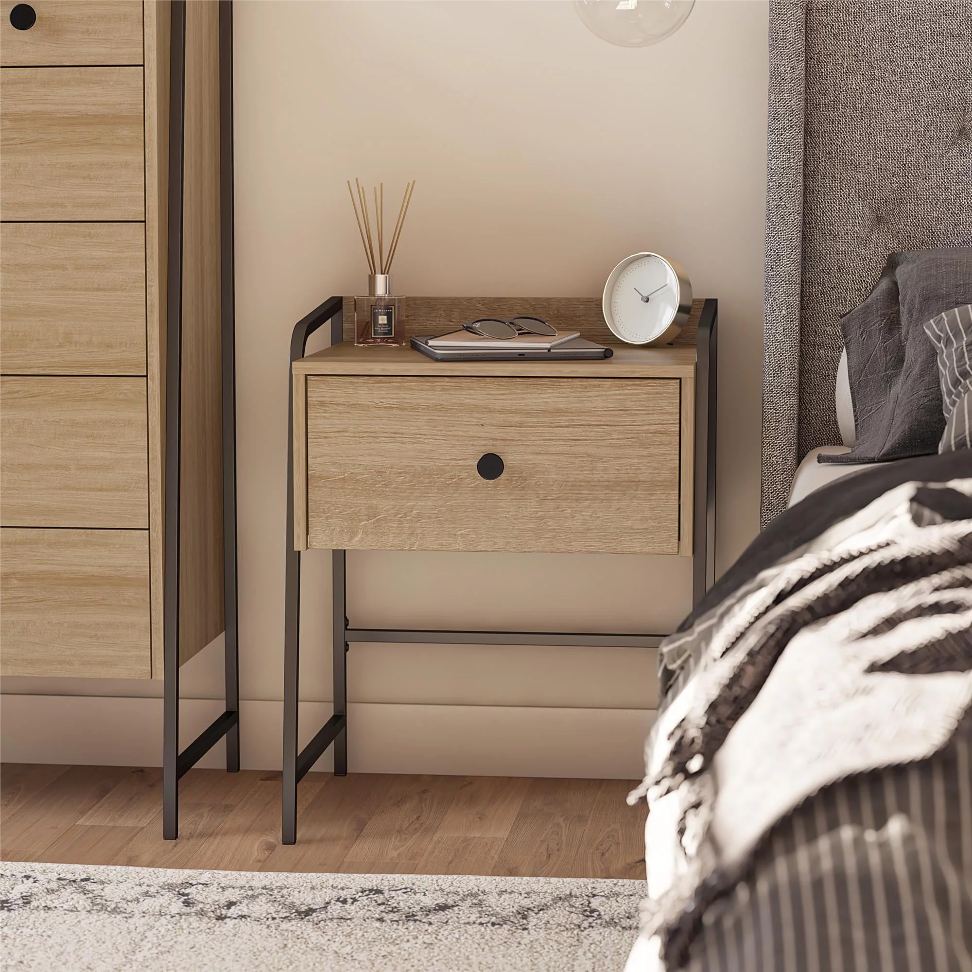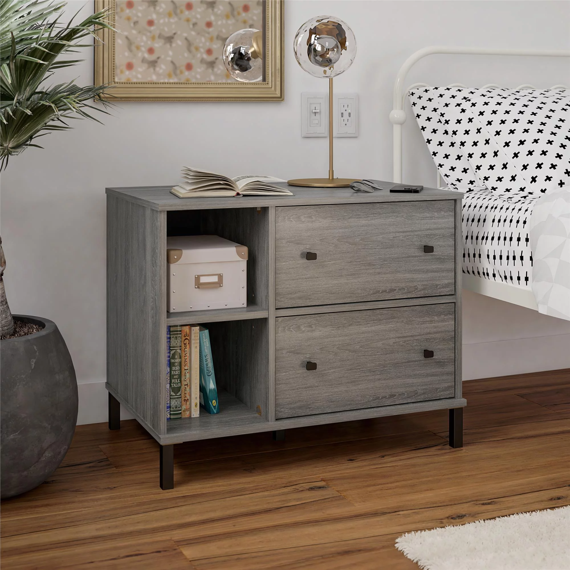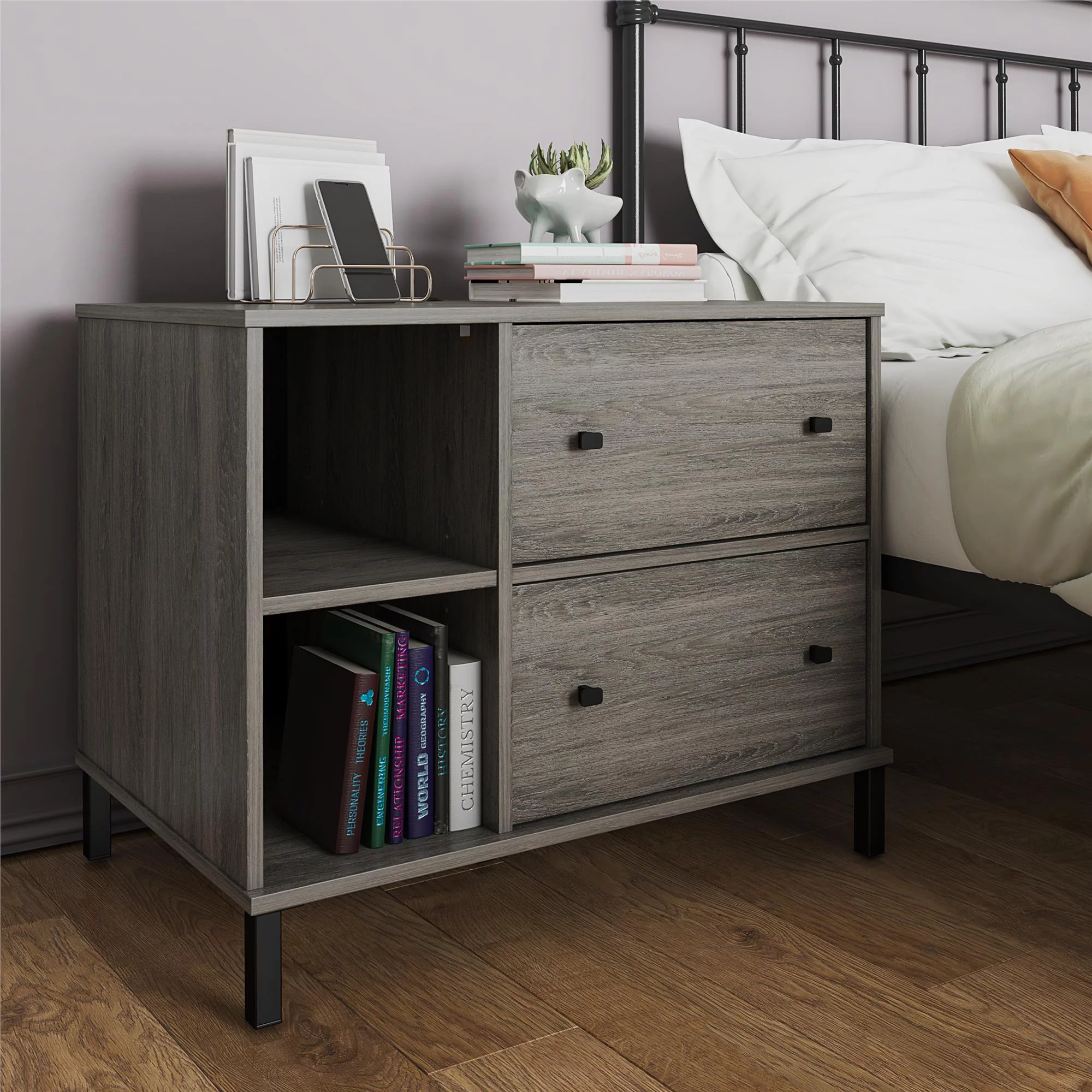 Novogratz Kalissa Wide Nightstand with Wireless Charger, Gray Oak with Black