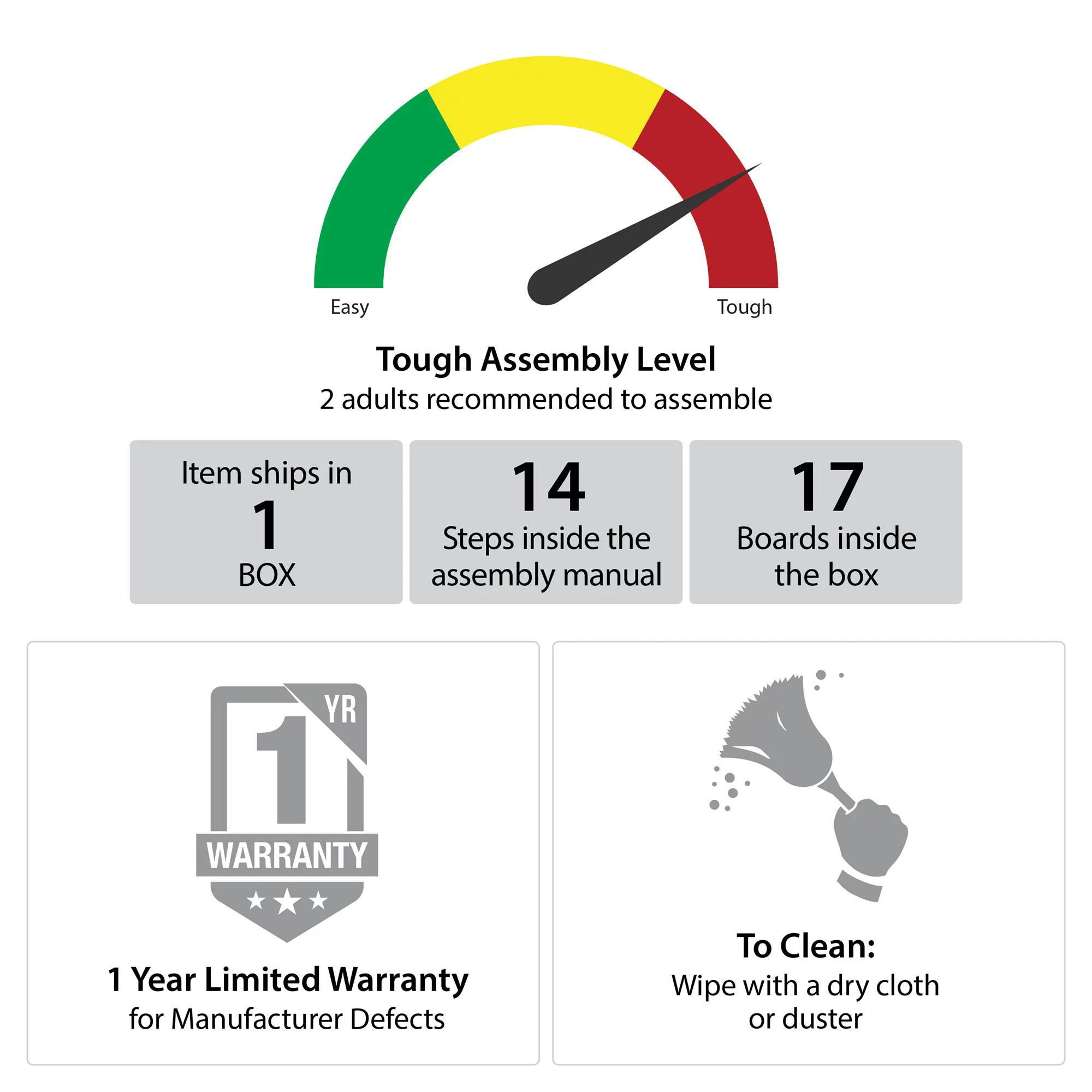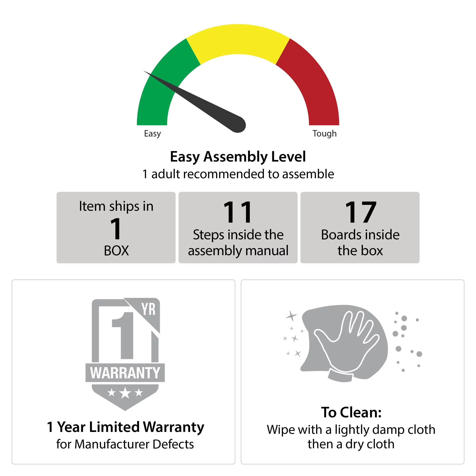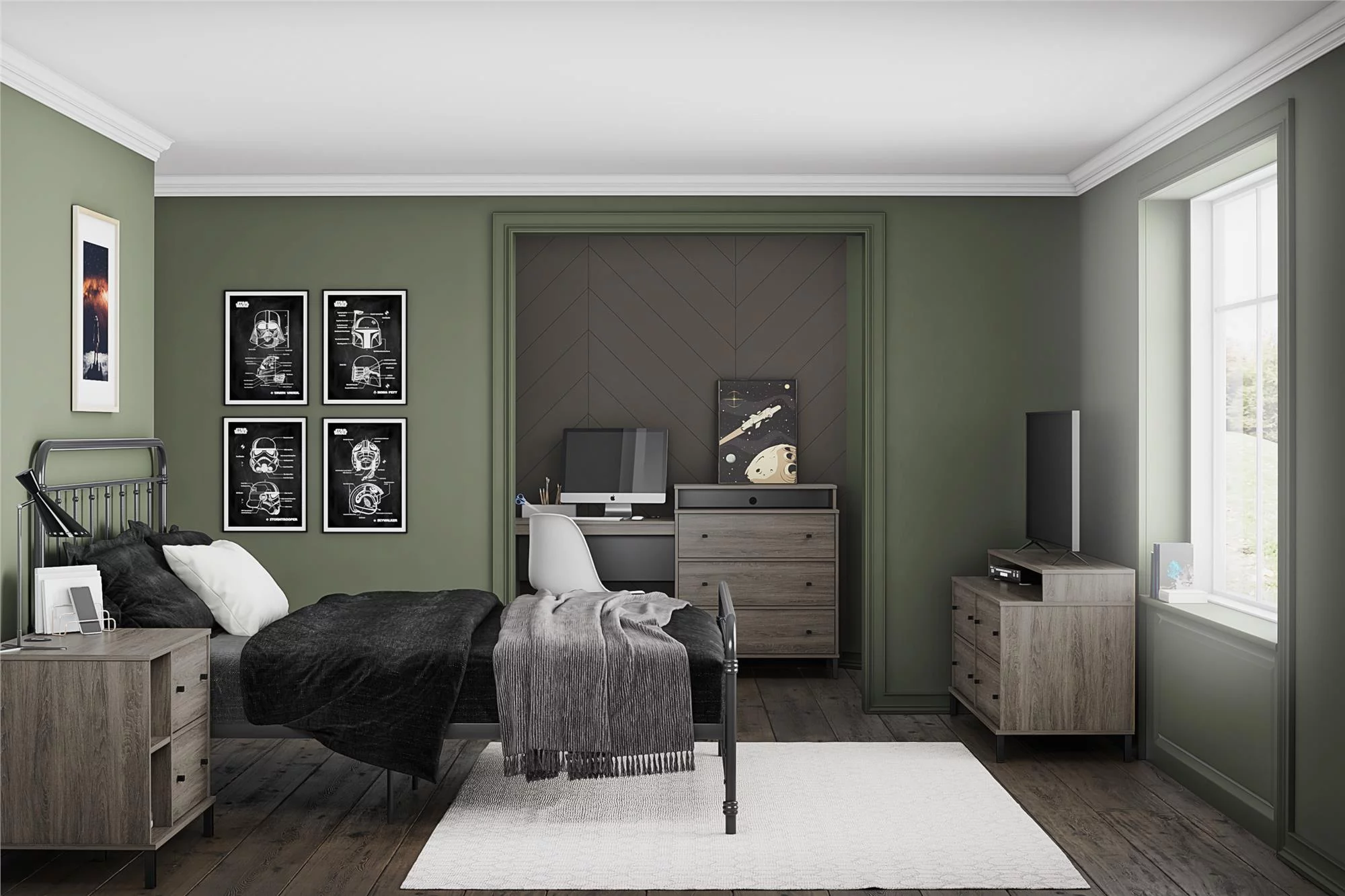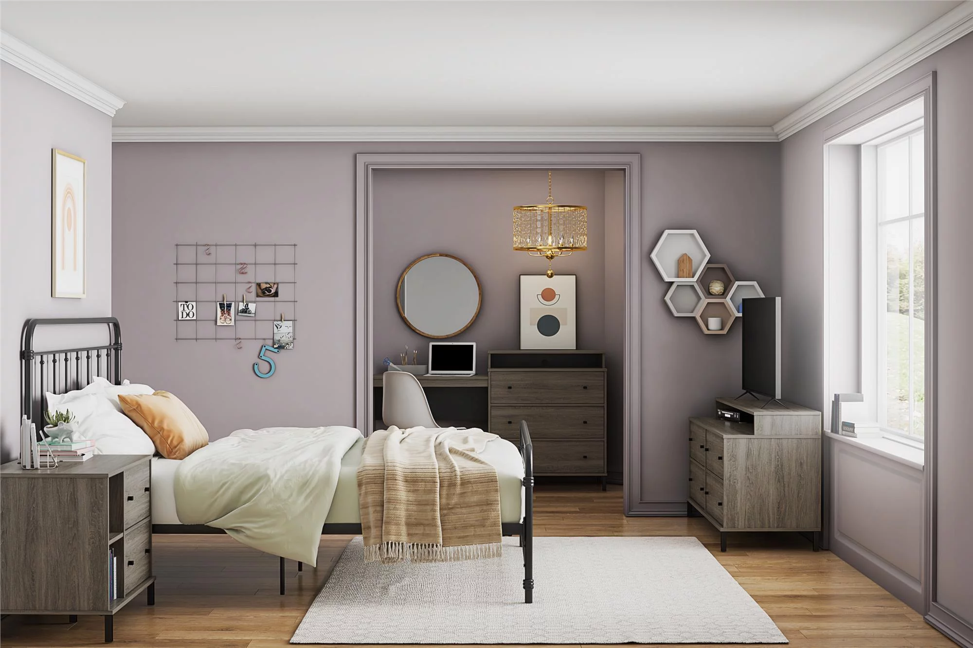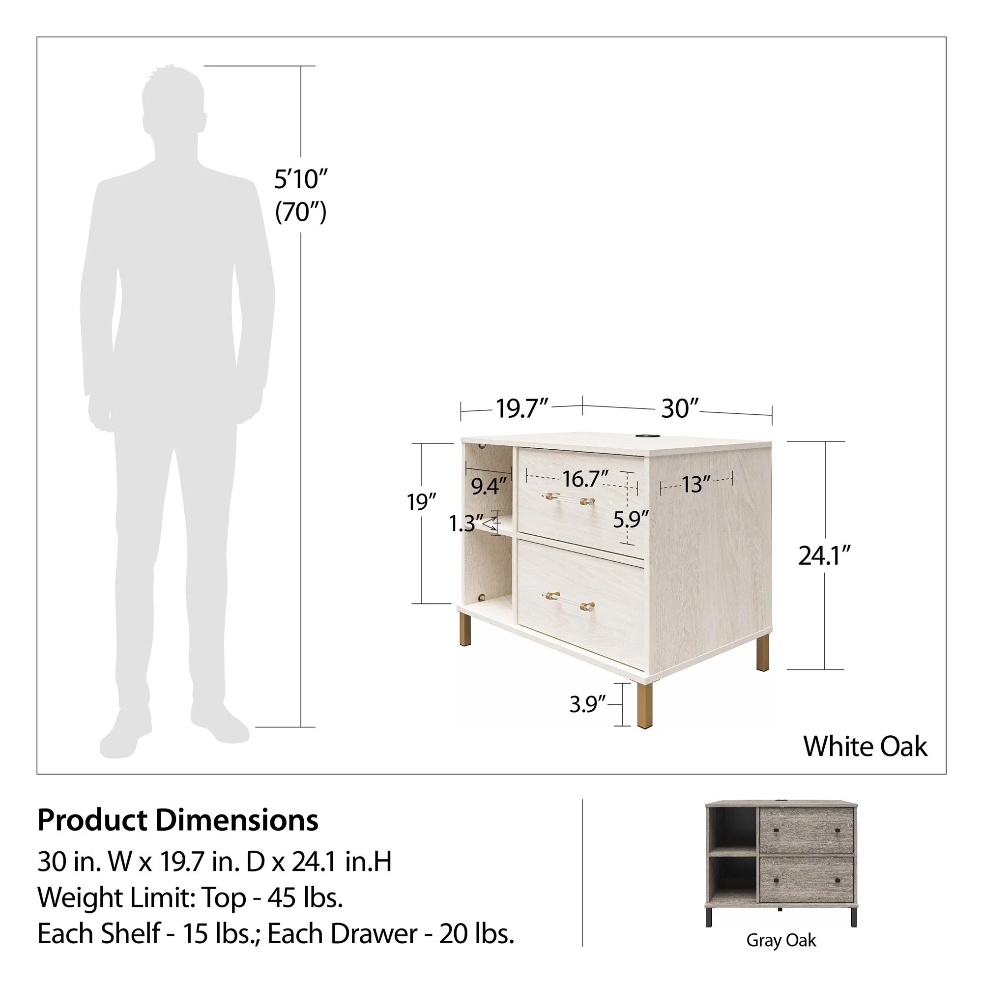 Novogratz Kalissa Wide Nightstand with Wireless Charger, Gray Oak with Black