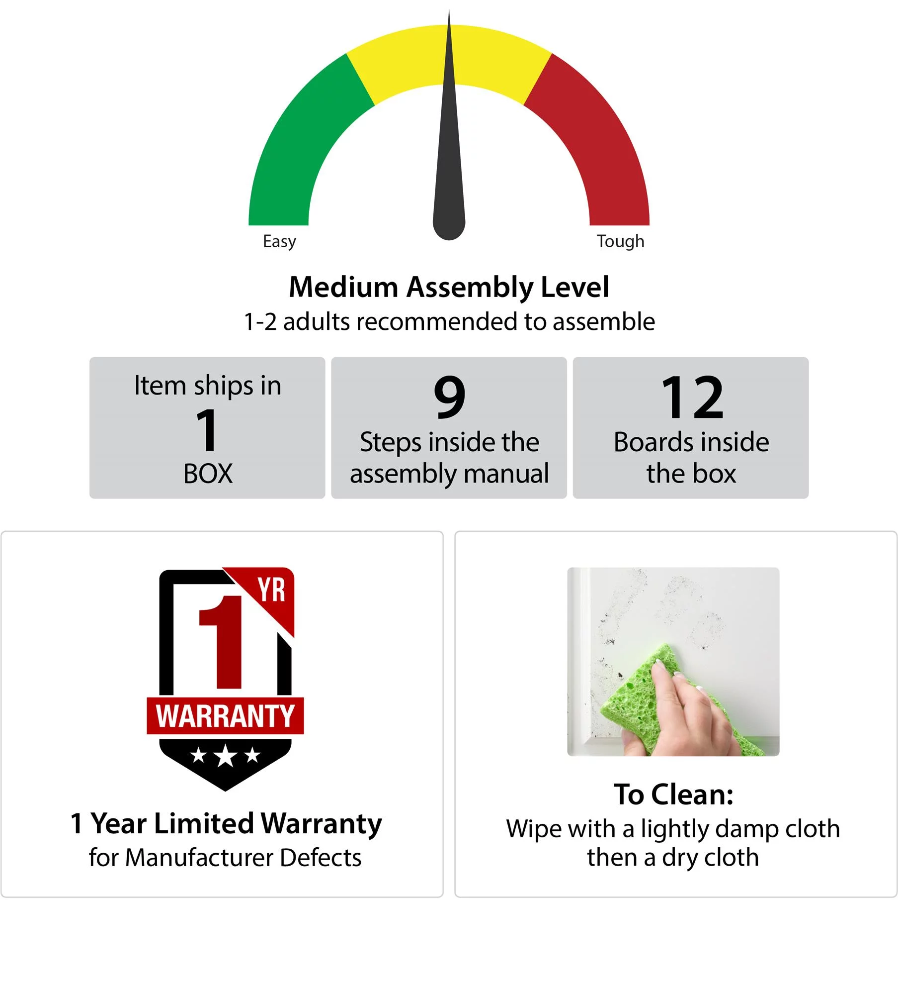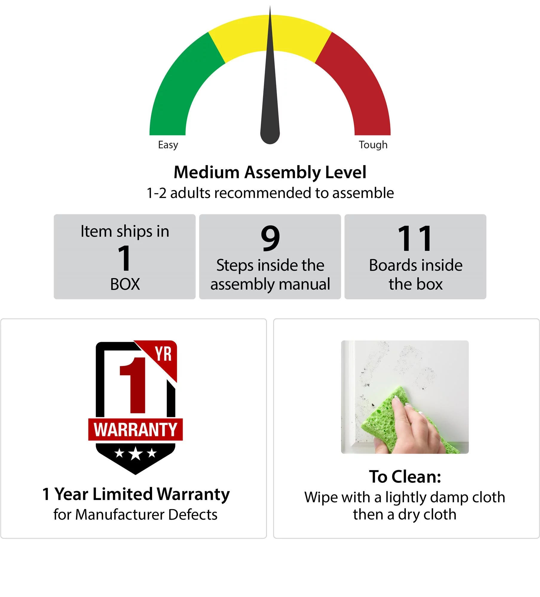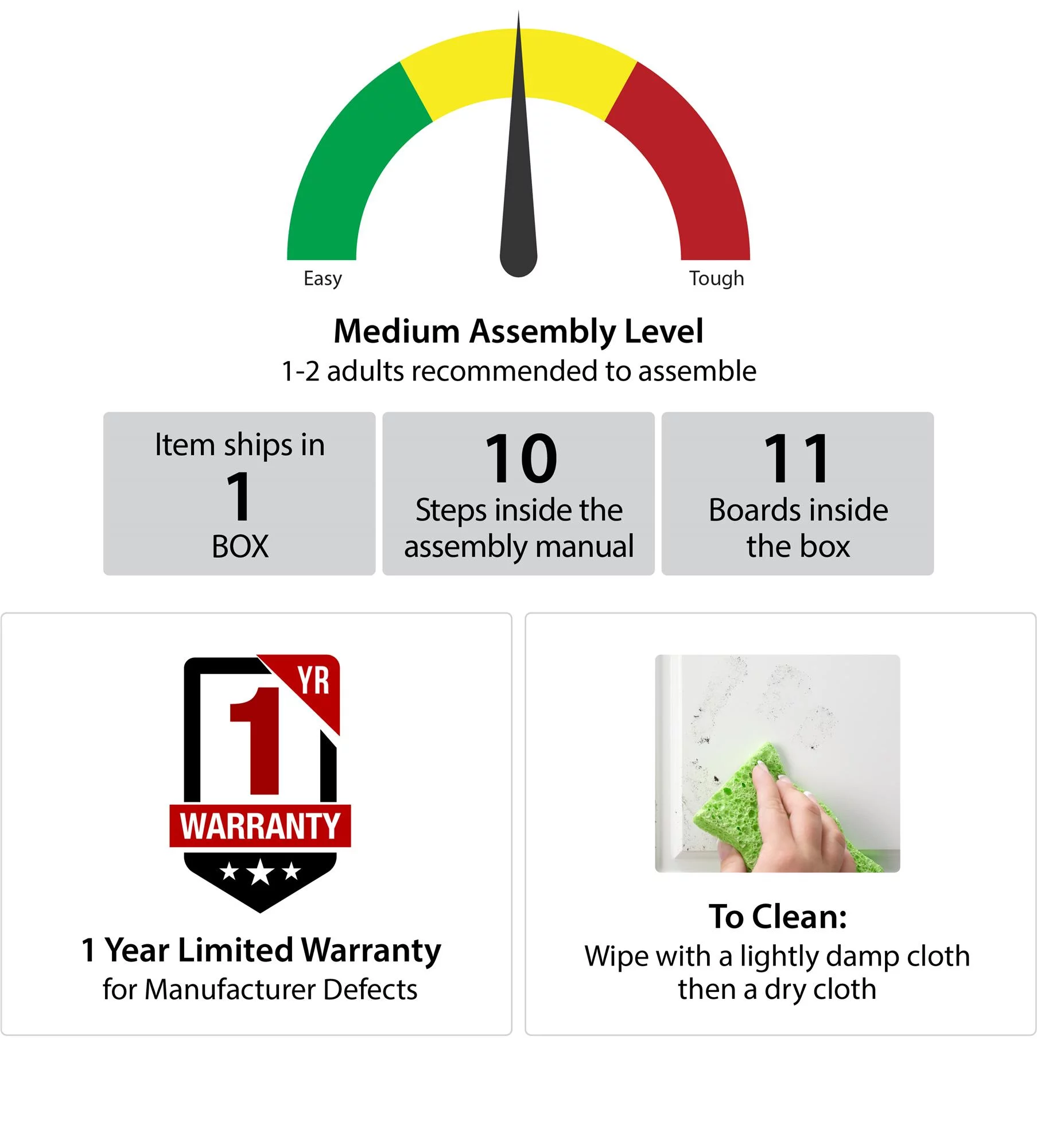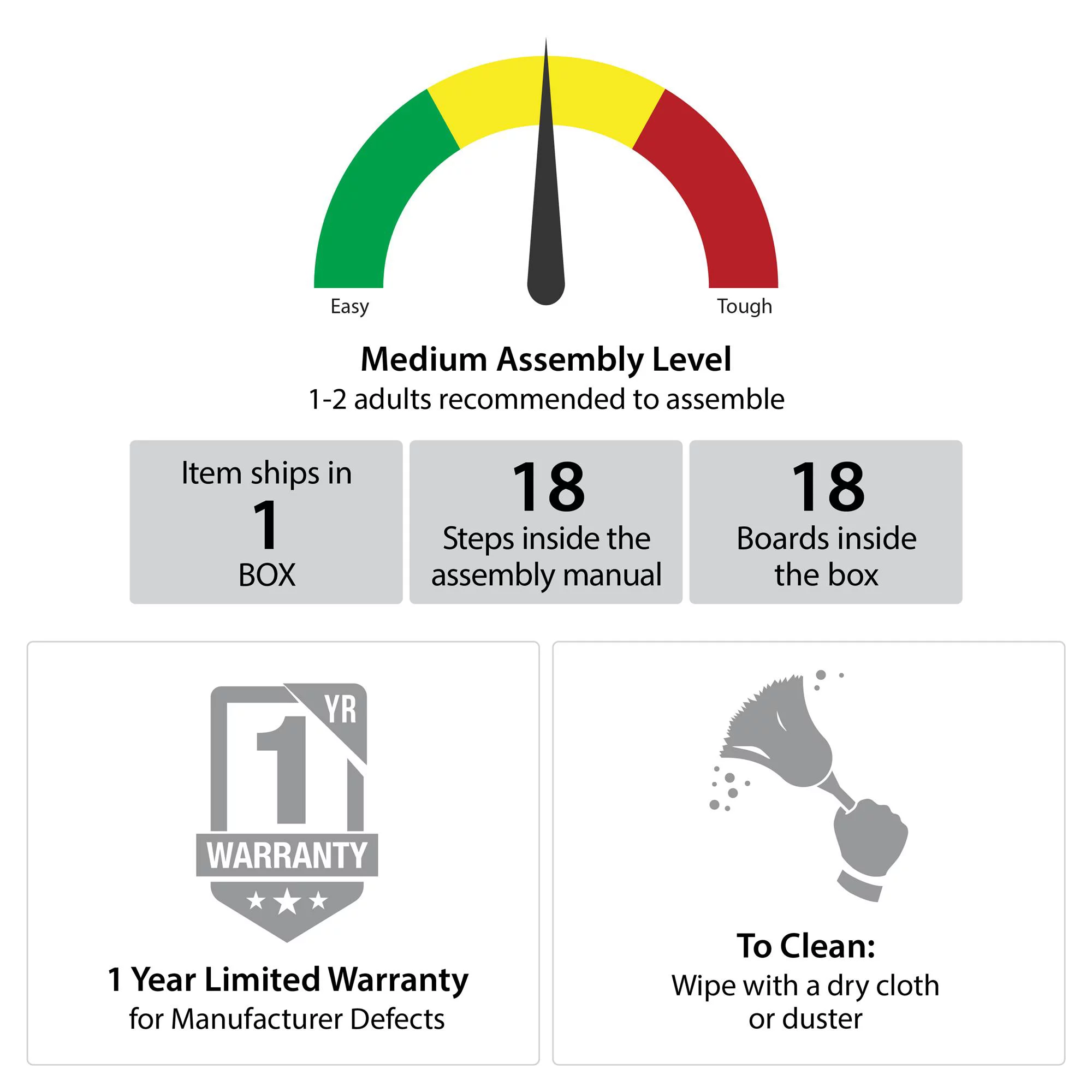 Novogratz Kalissa Wide Nightstand with Wireless Charger, Gray Oak with Black