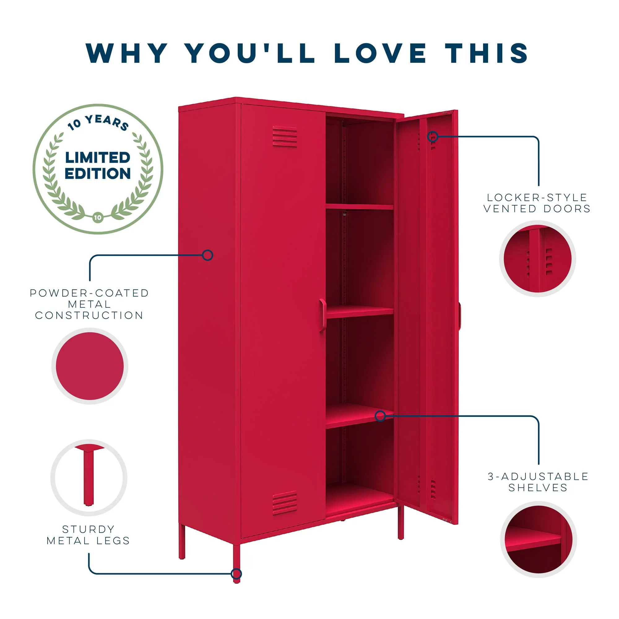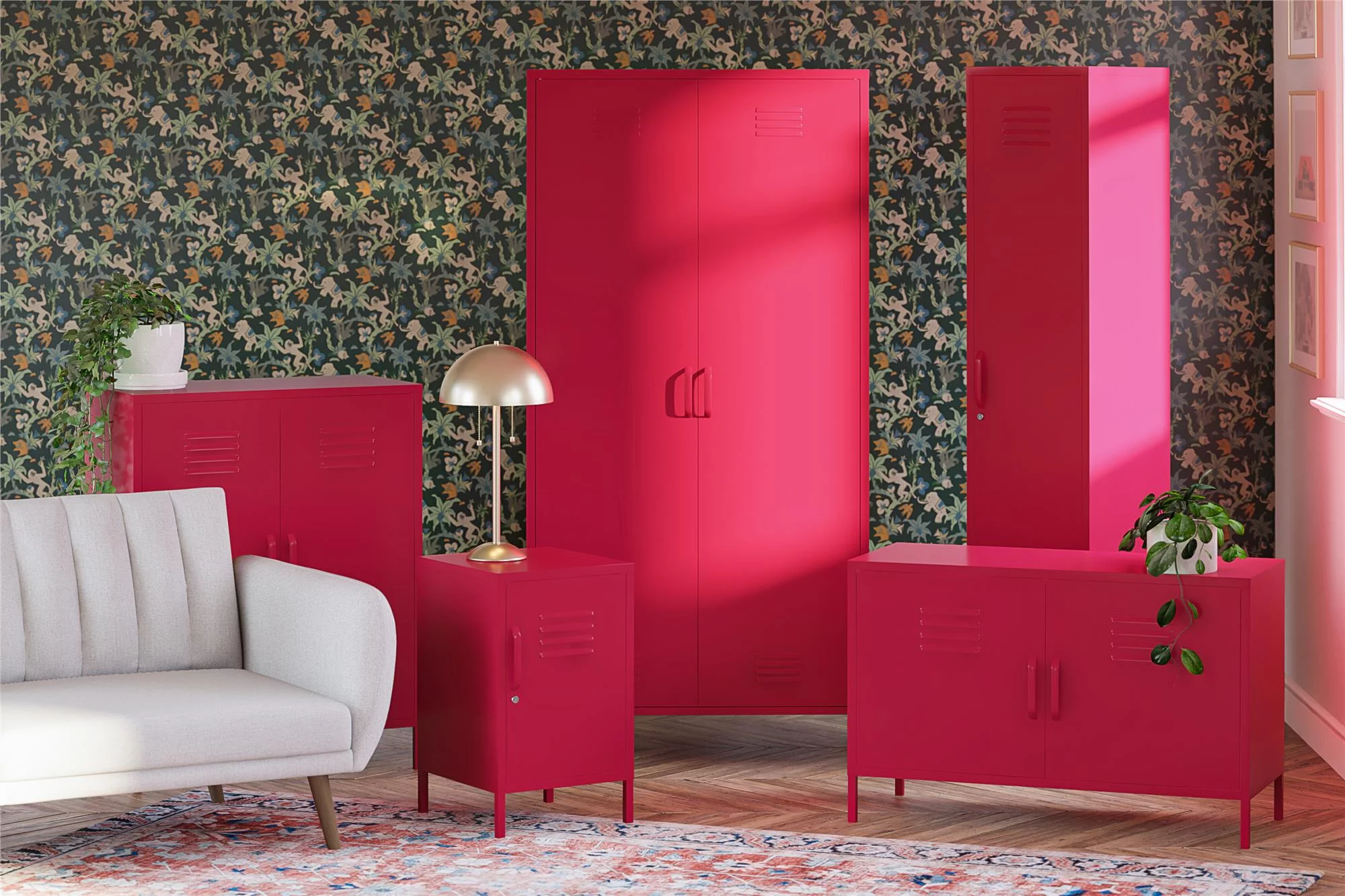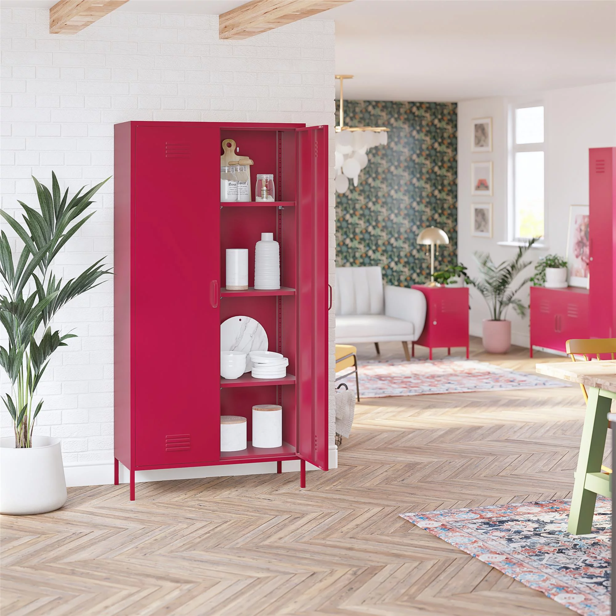 Novogratz Cache 2 Door Tall Metal Locker Style Storage Cabinet, Magenta