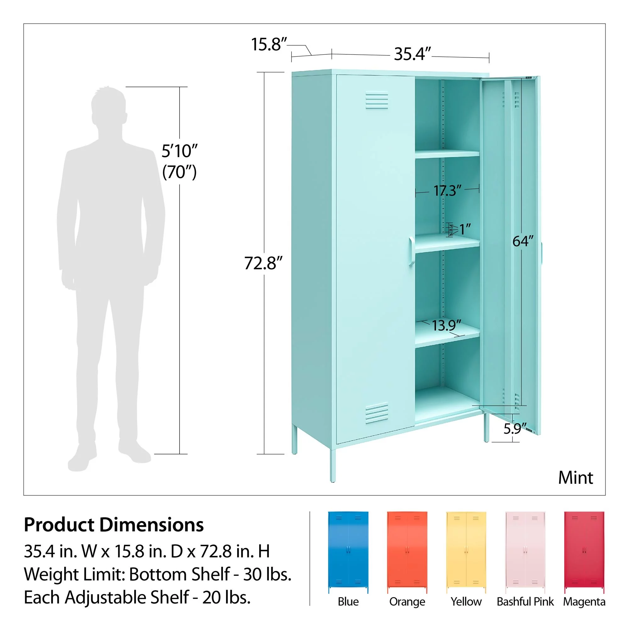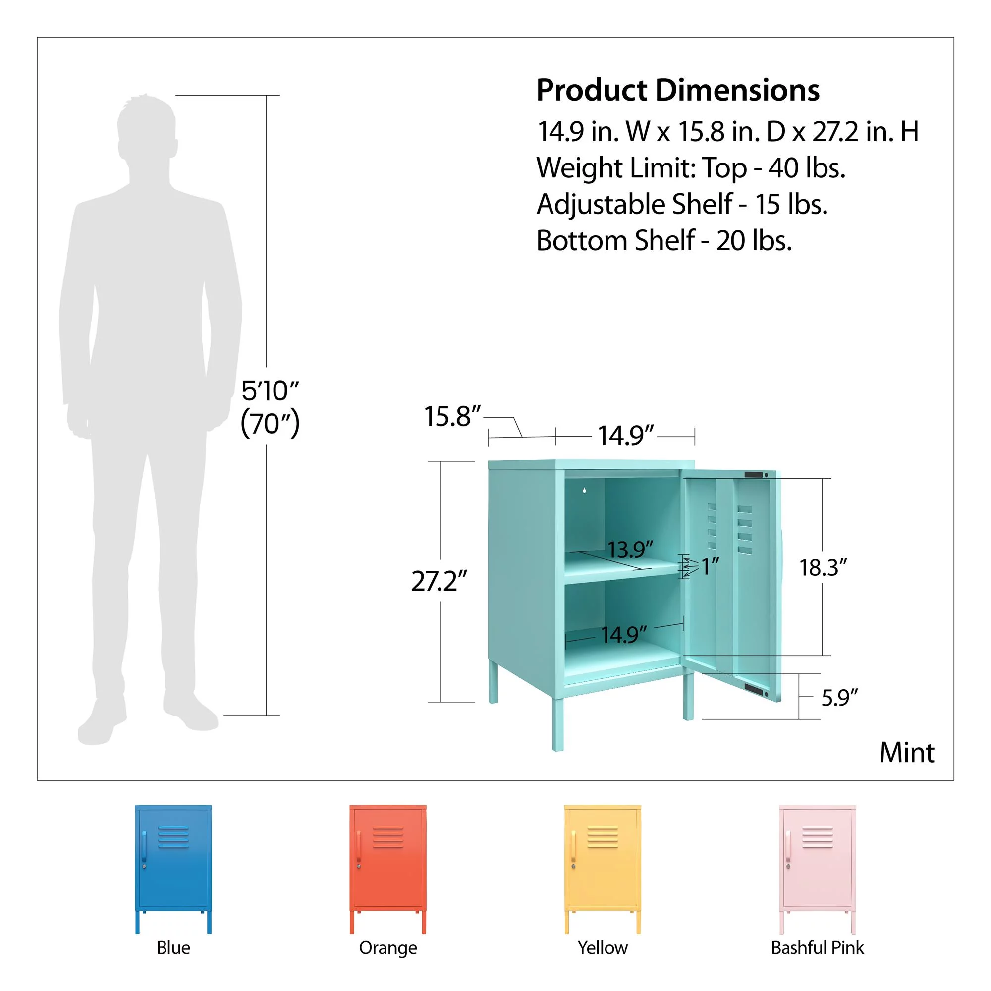 Novogratz Cache 1 Door Tall Single Metal Locker Style Storage Cabinet, Mint