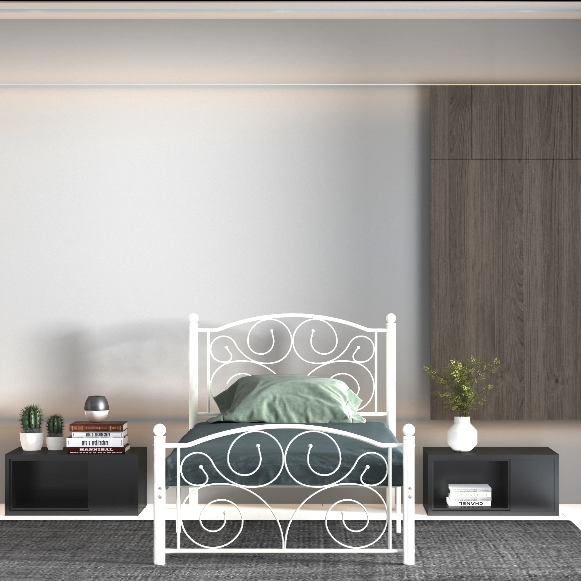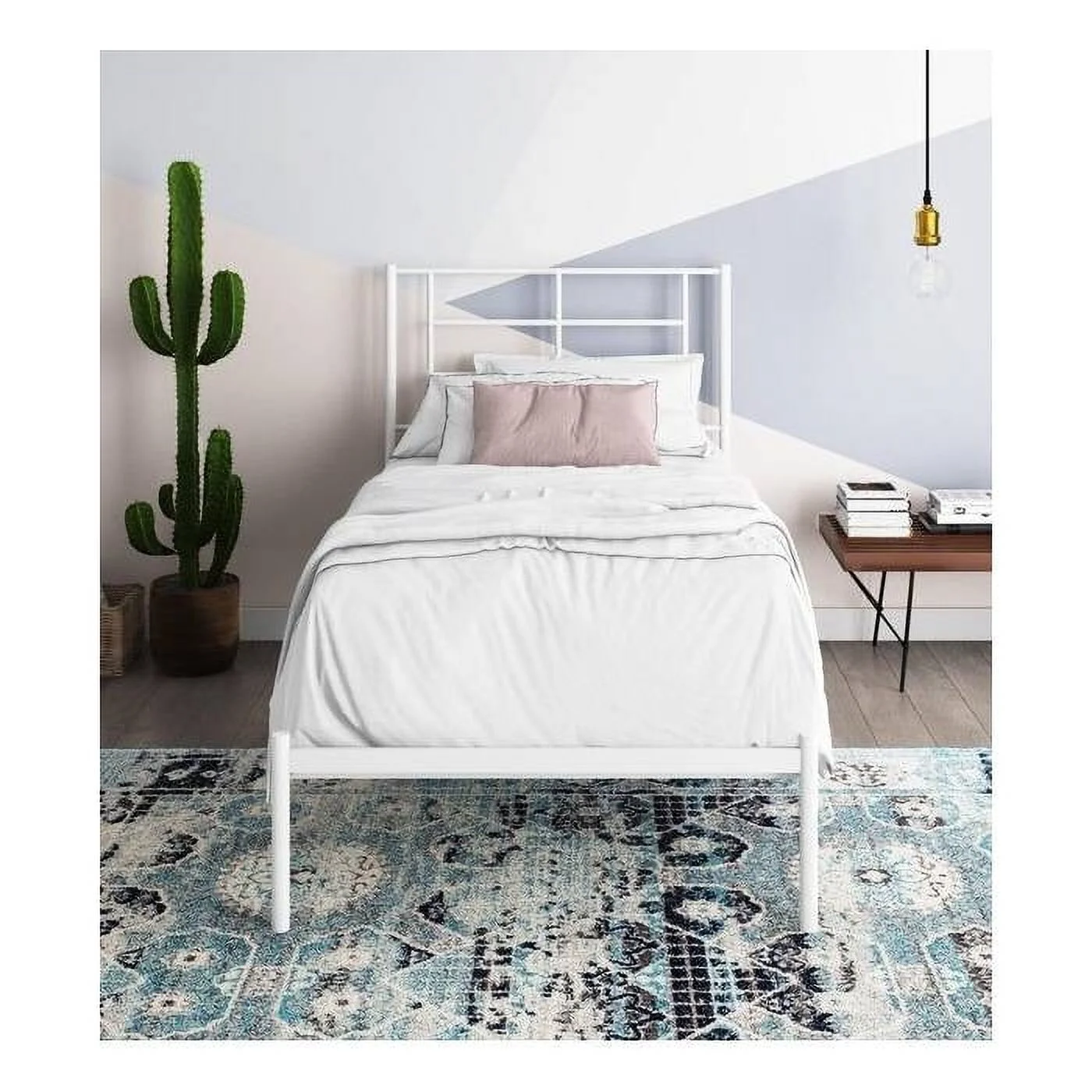 CoSoTower White Metal Frame Twin Size Bed 1Pc Casual Style Bedroom Furniture