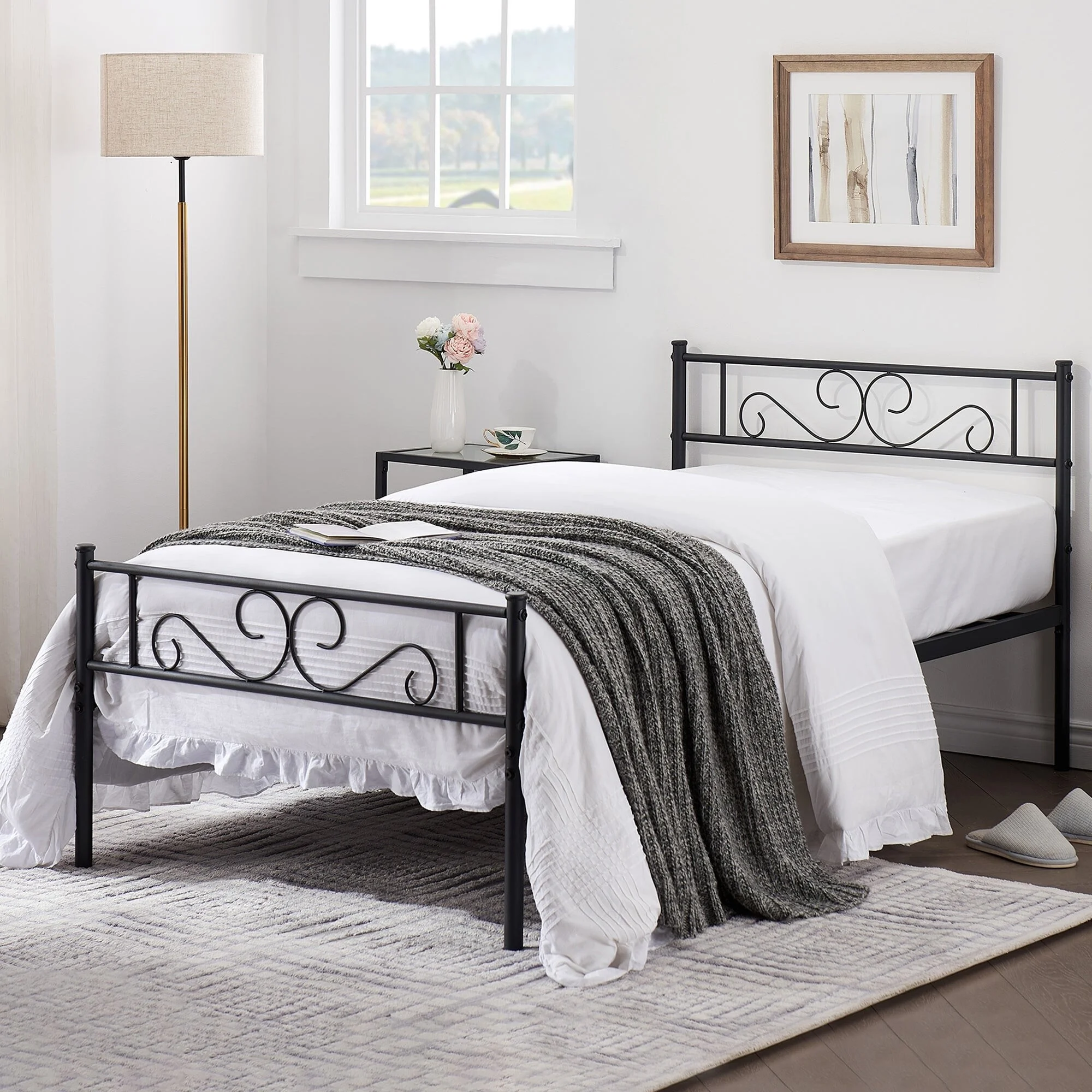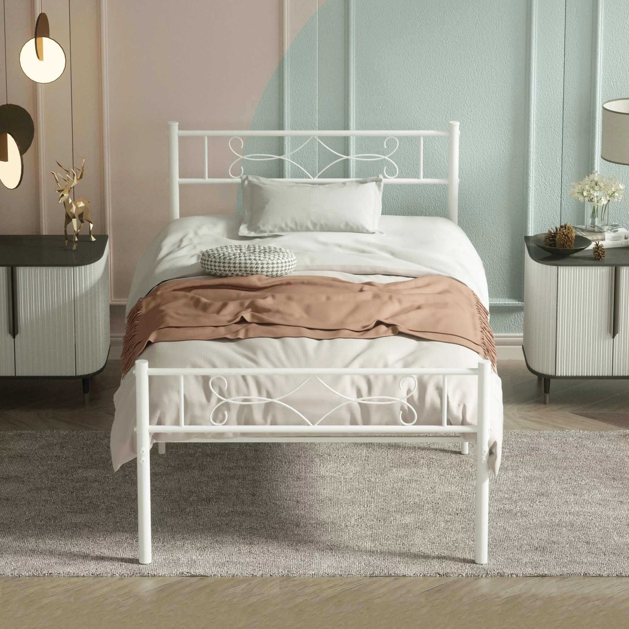 Javlergo Twin Metal Bed Frame with Headboard and Footboard for Girls/ Boys Teenagers White