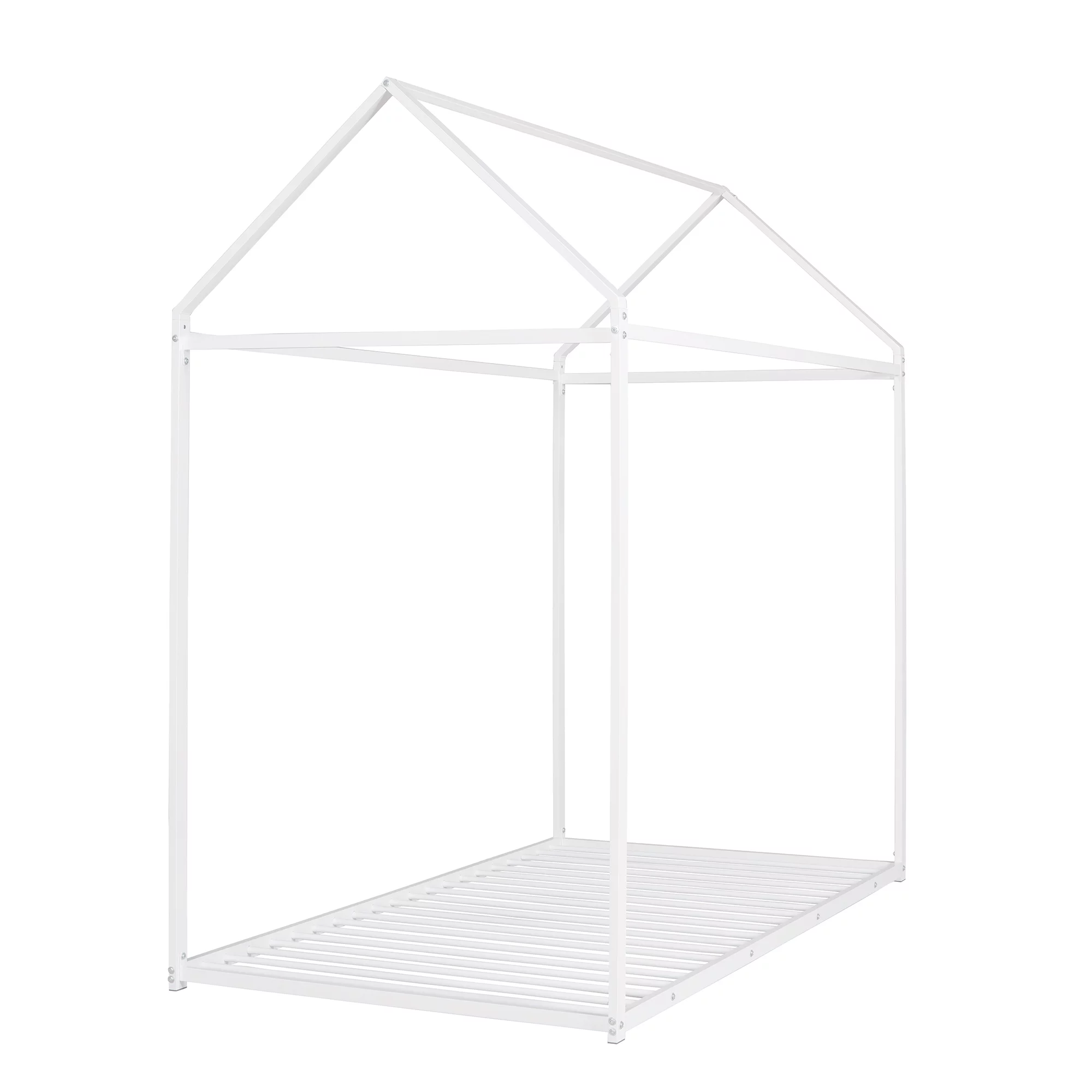 ikayaa Metal House Bed Frame Twin Size with Slatted Support No Box Spring Needed White