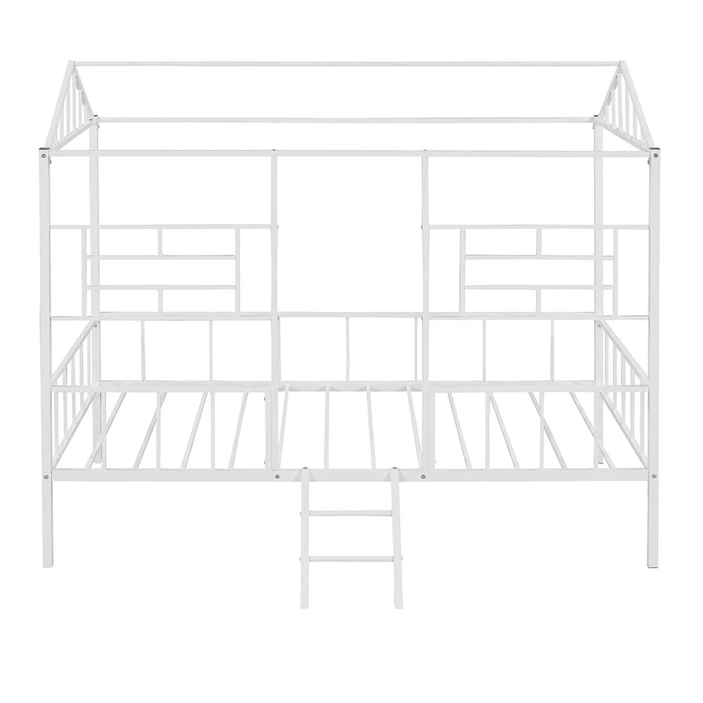 Metal House Bed Frame Twin Size with Slatted Support No Box Spring Needed White