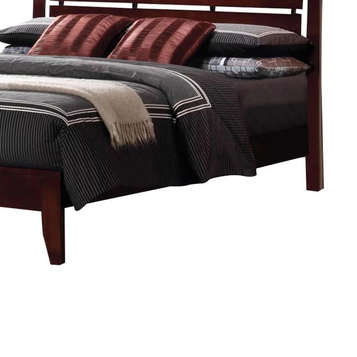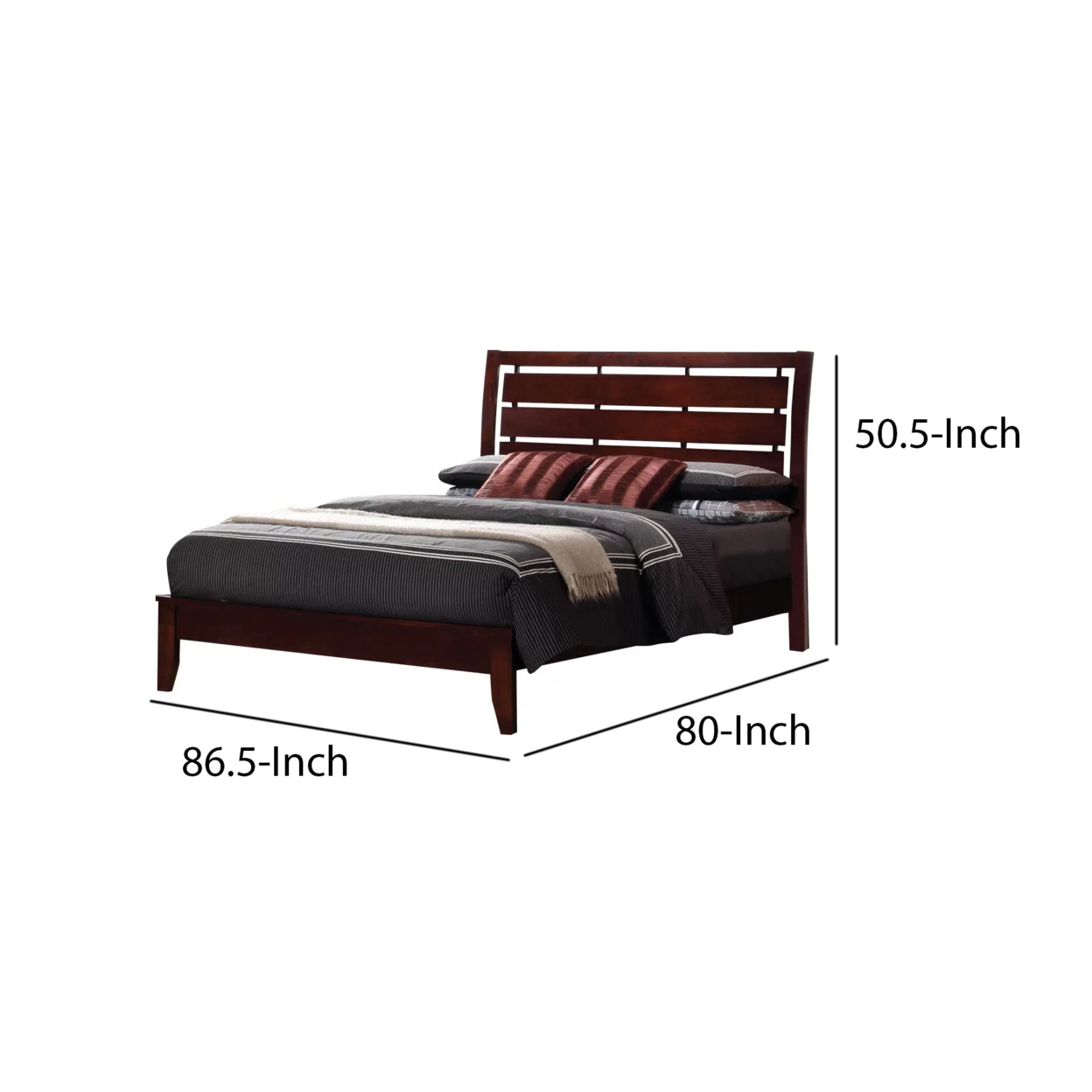 Transitional Eastern King Size Wooden Bed with Slatted Headboard Brown- Saltoro Sherpi