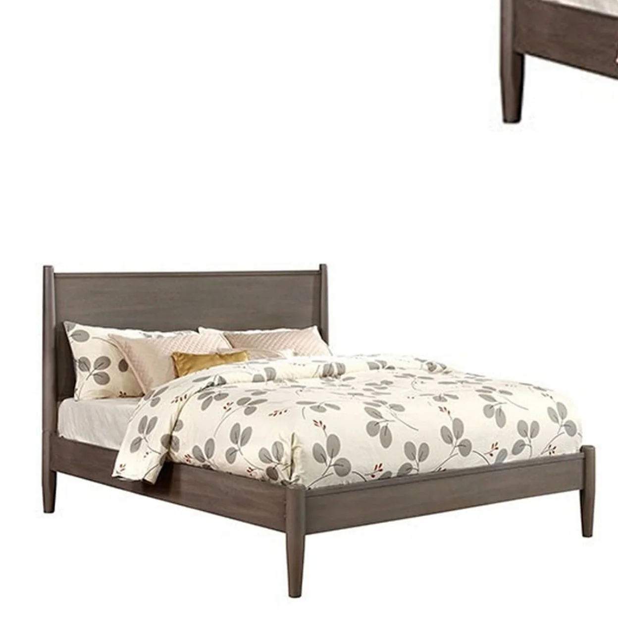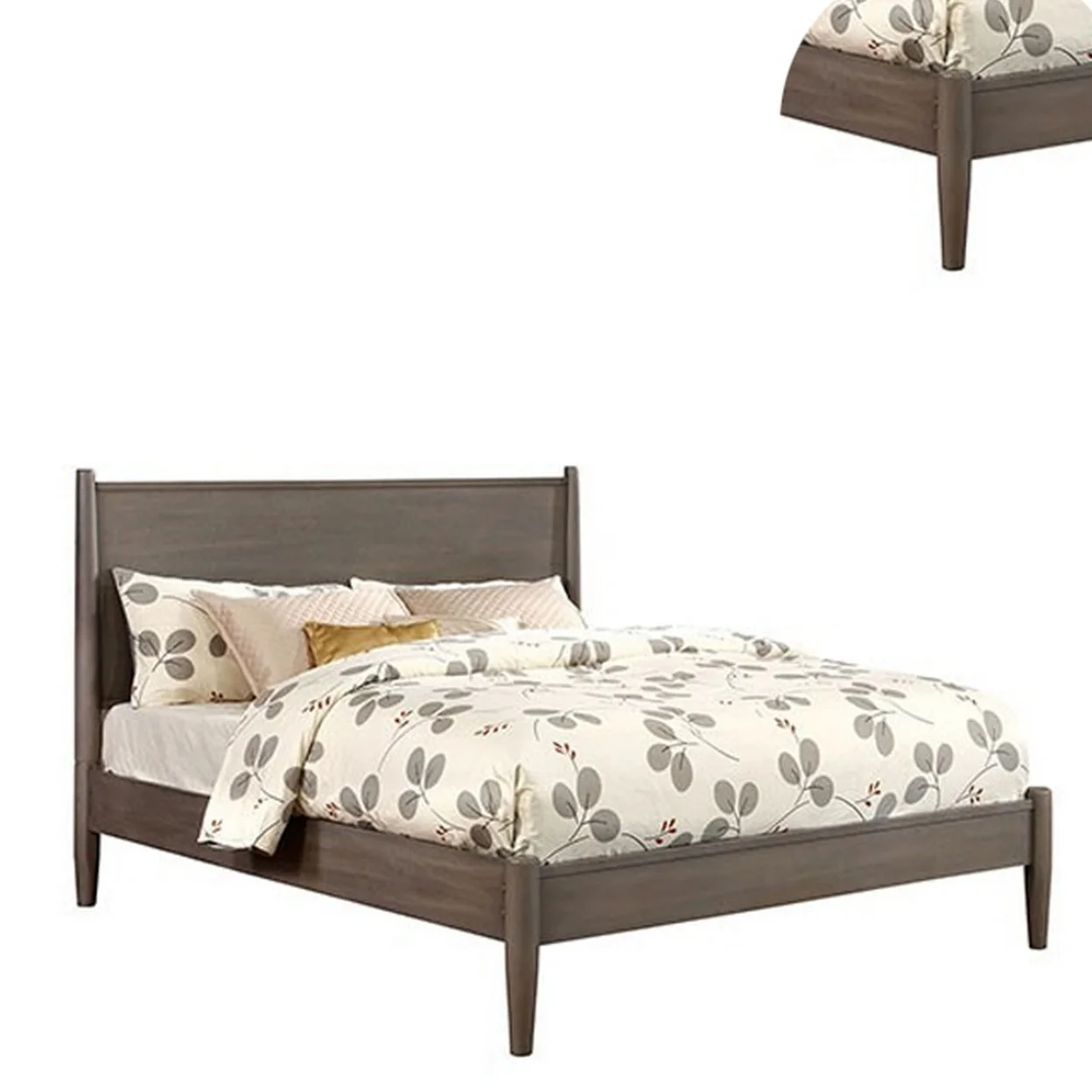 Wooden Eastern King Size Bed with Panel Headboard Gray- Saltoro Sherpi