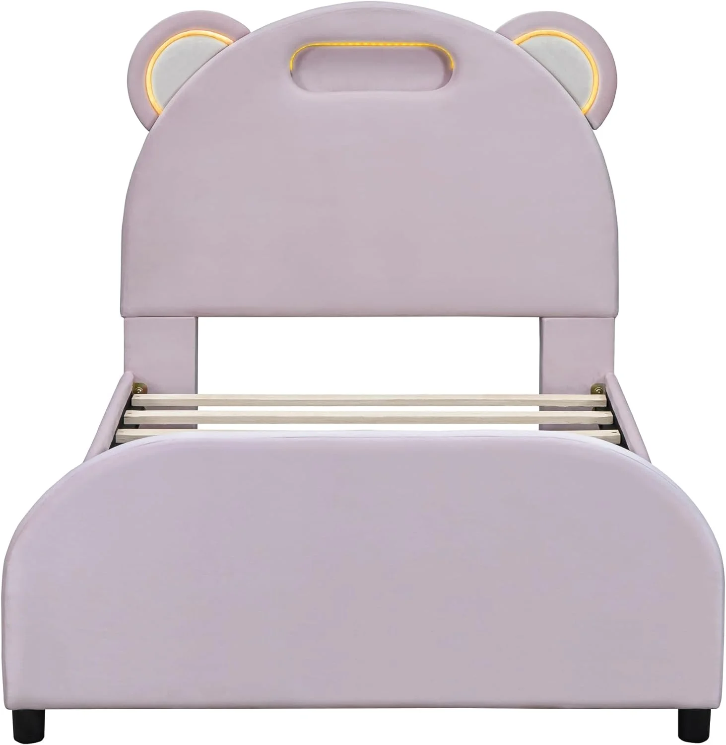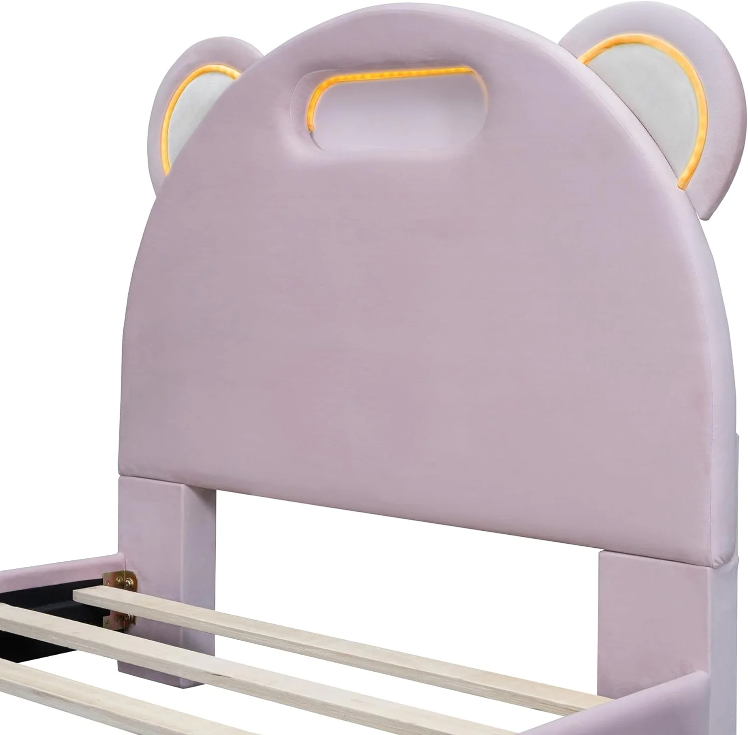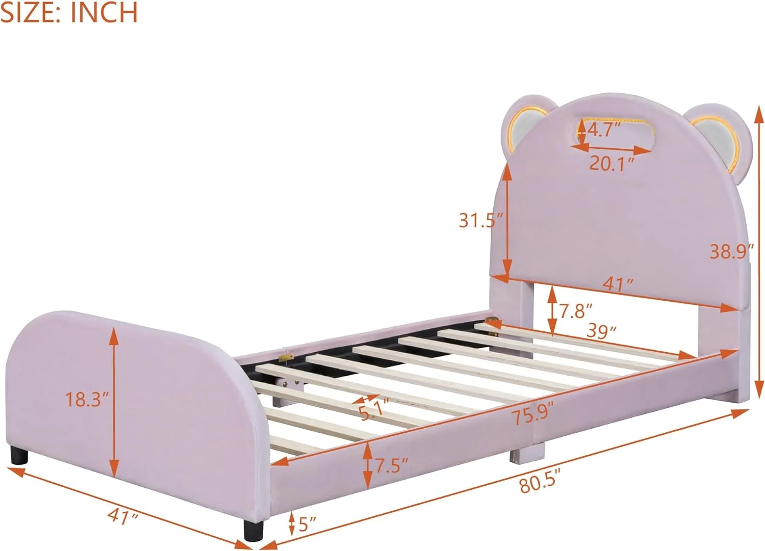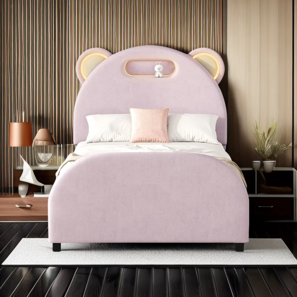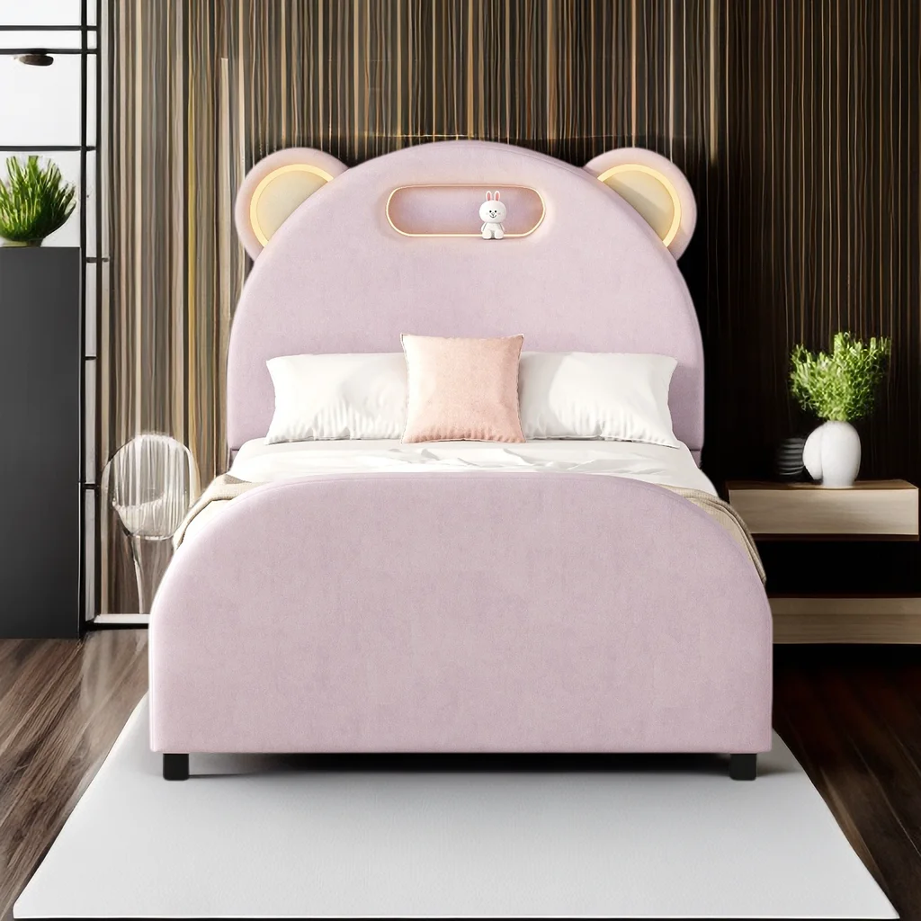 Full size Upholstered Rabbit-Shape Princess Bed ,Full Size Platform Bed with Headboard and Footboard,White+Pink