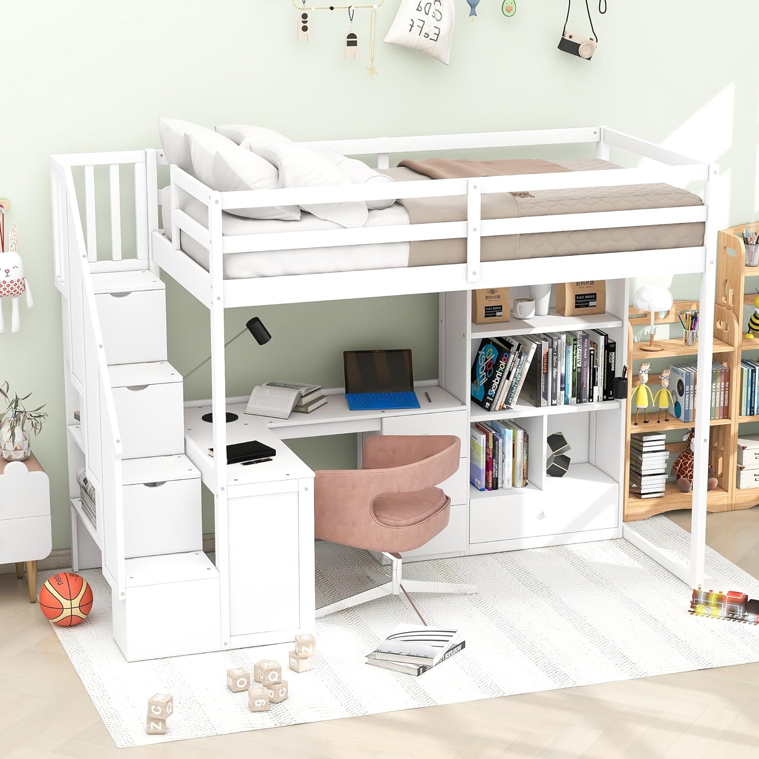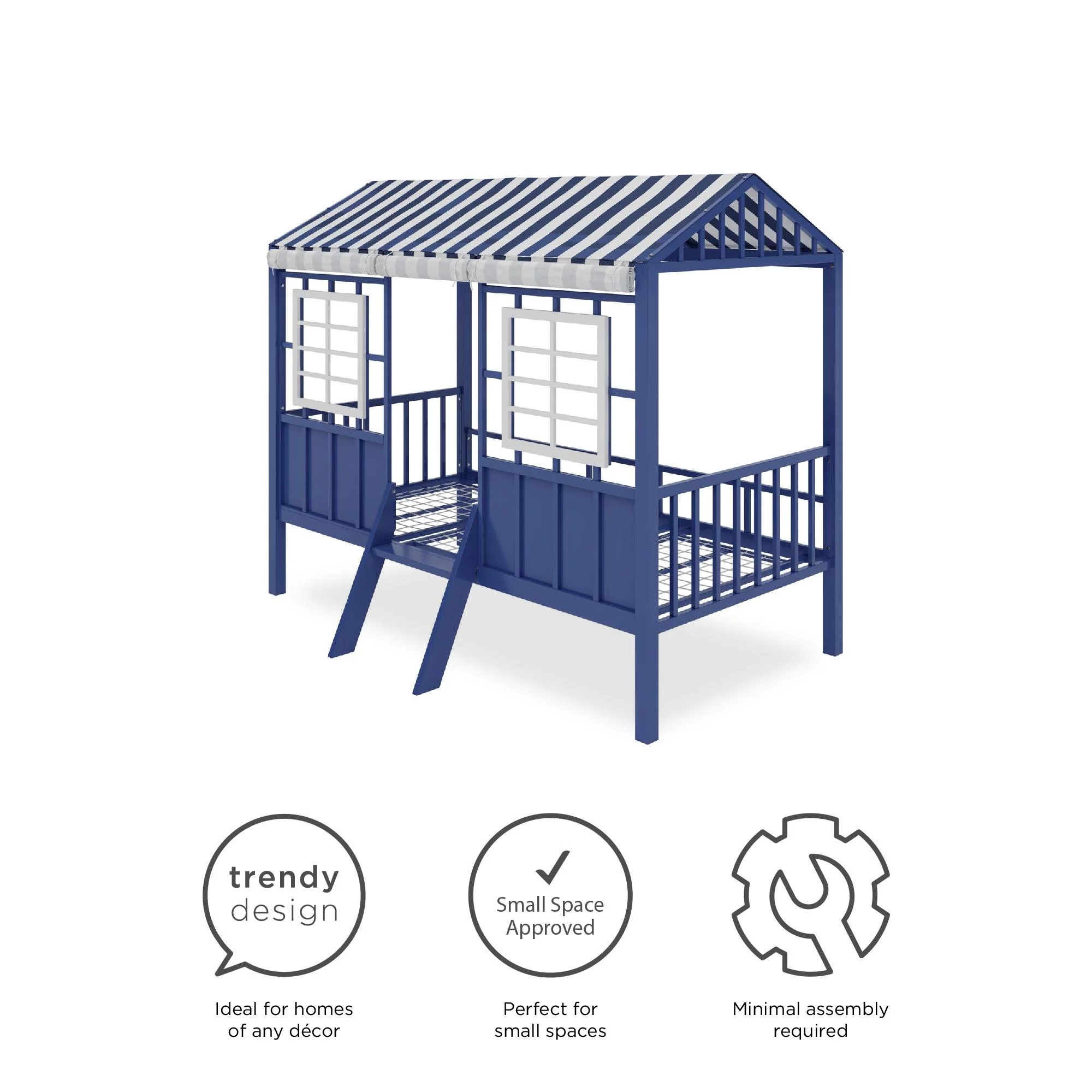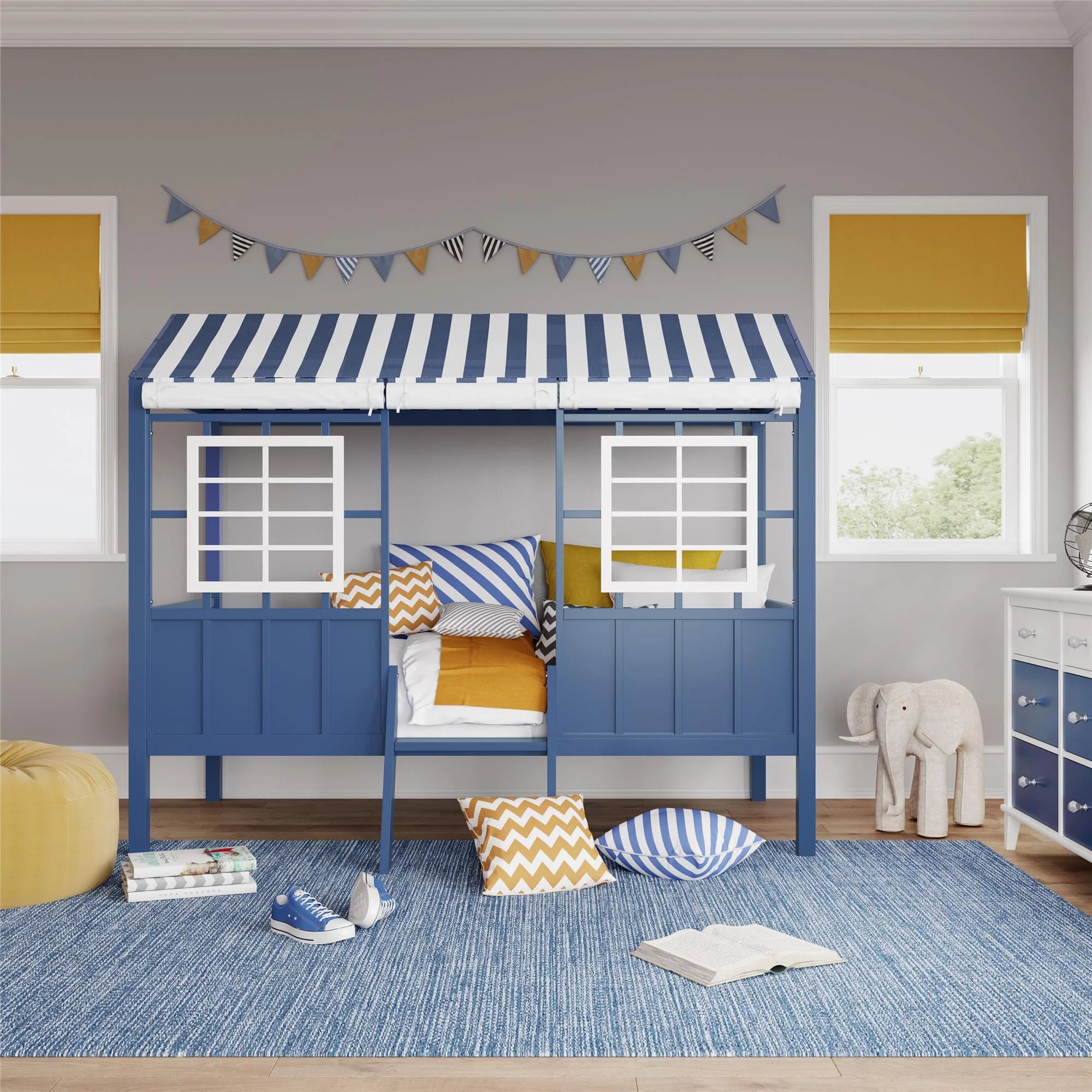Little Seeds Rowan Valley Forest Loft Bed, Twin Size Frame, White/Blue