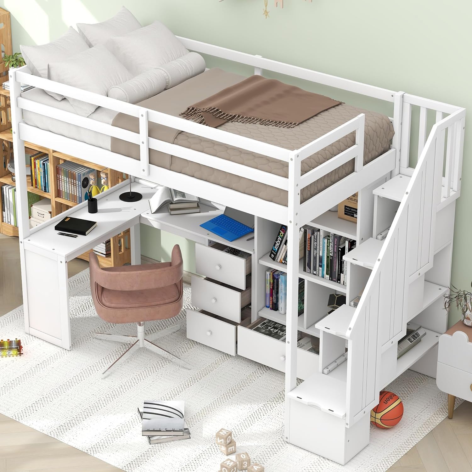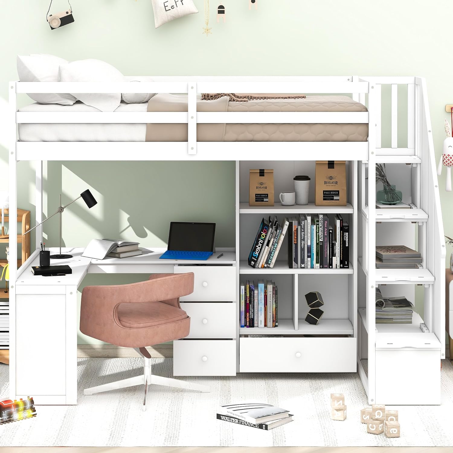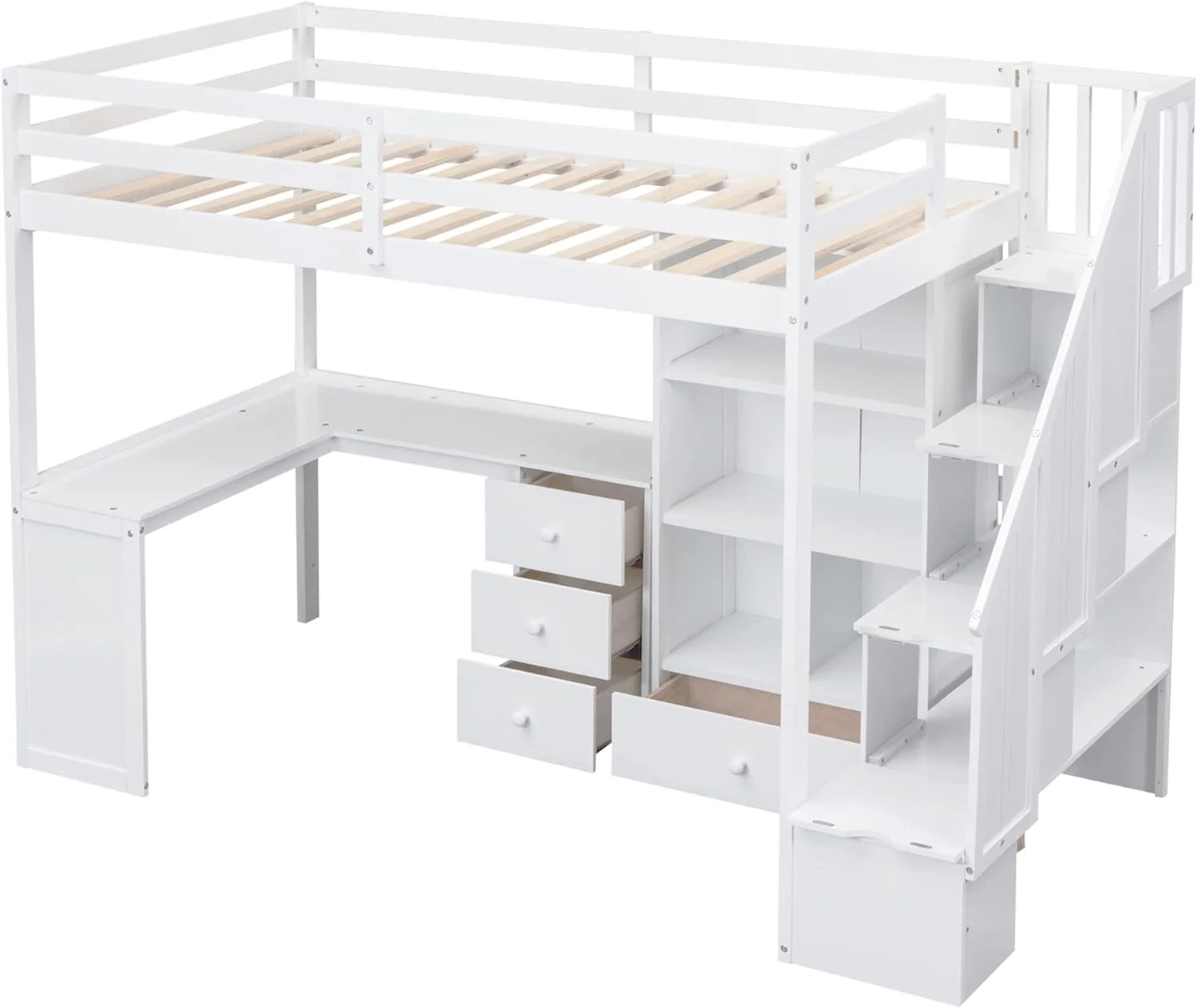 Little Seeds Rowan Valley Forest Loft Bed, Twin Size Frame, White/Blue