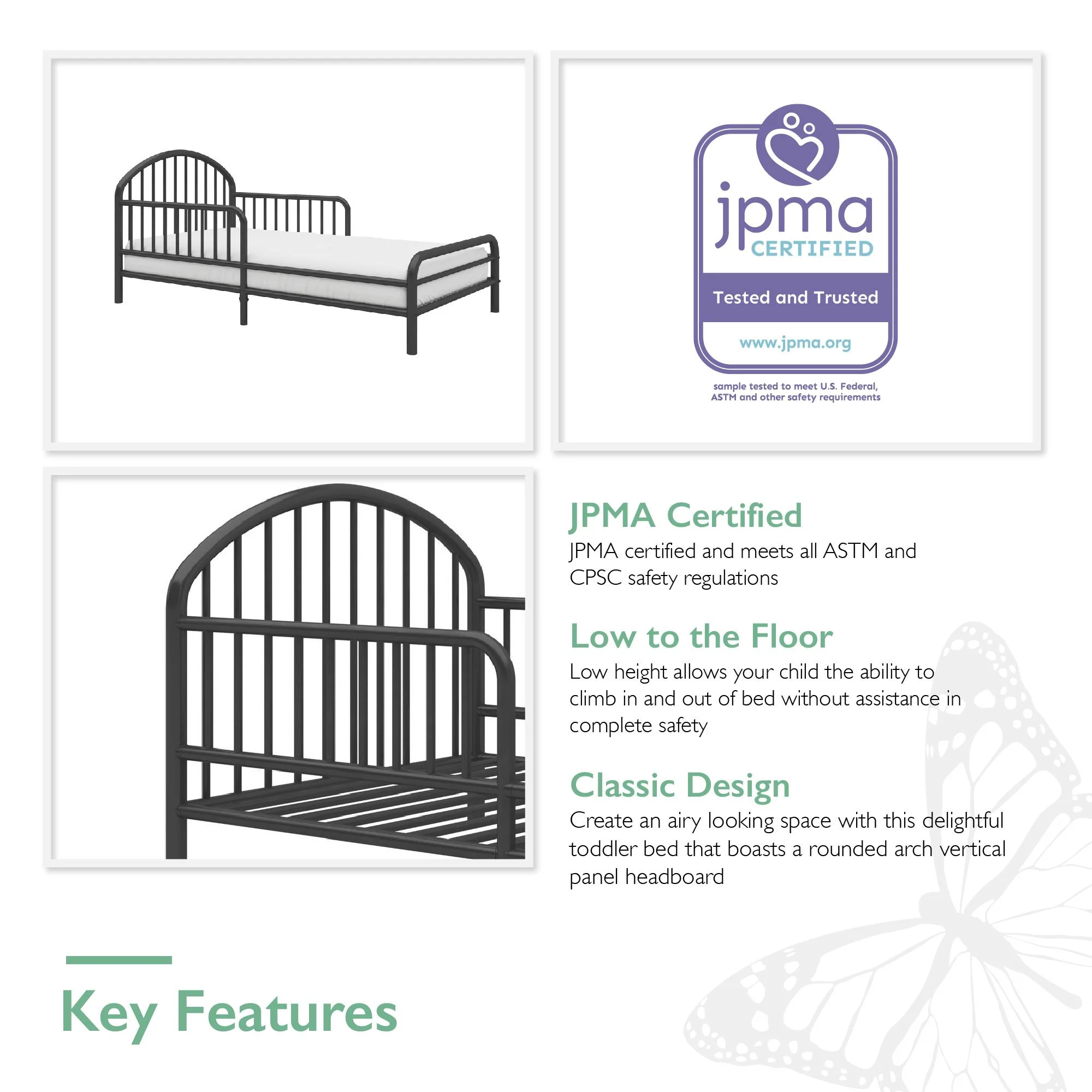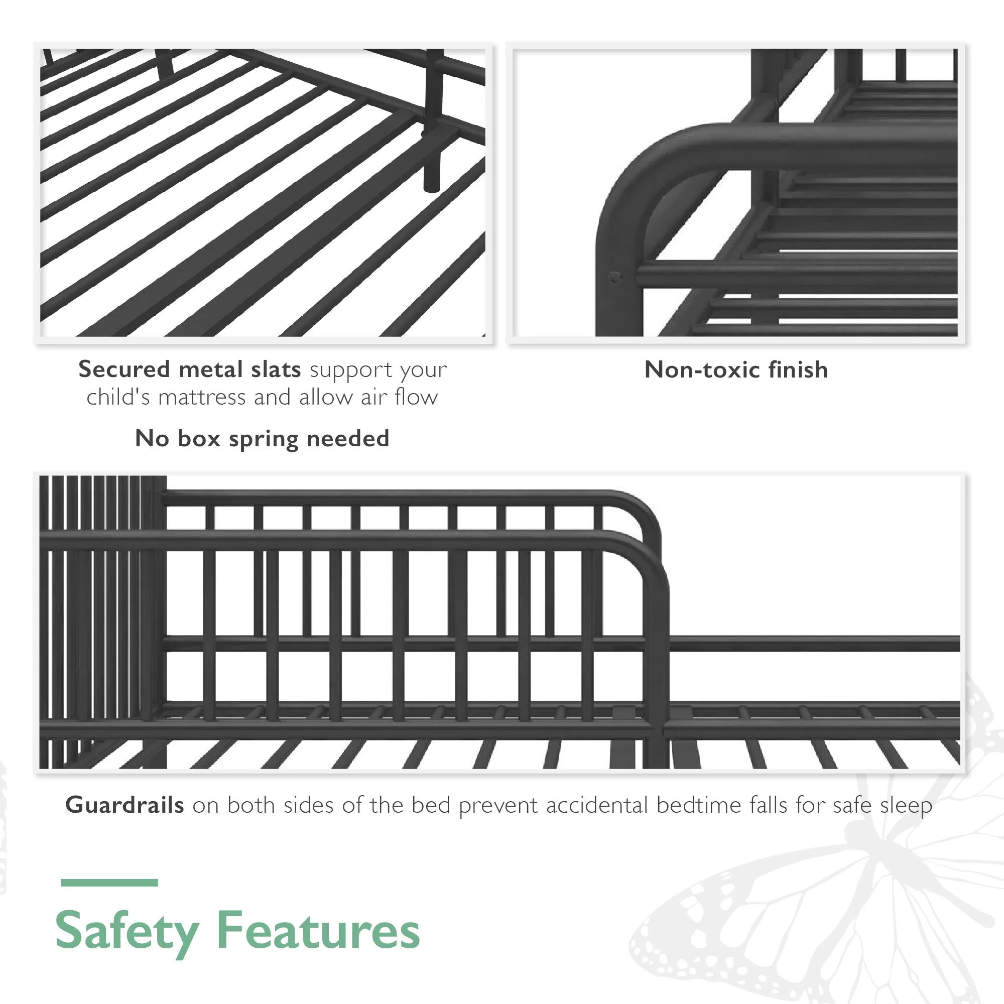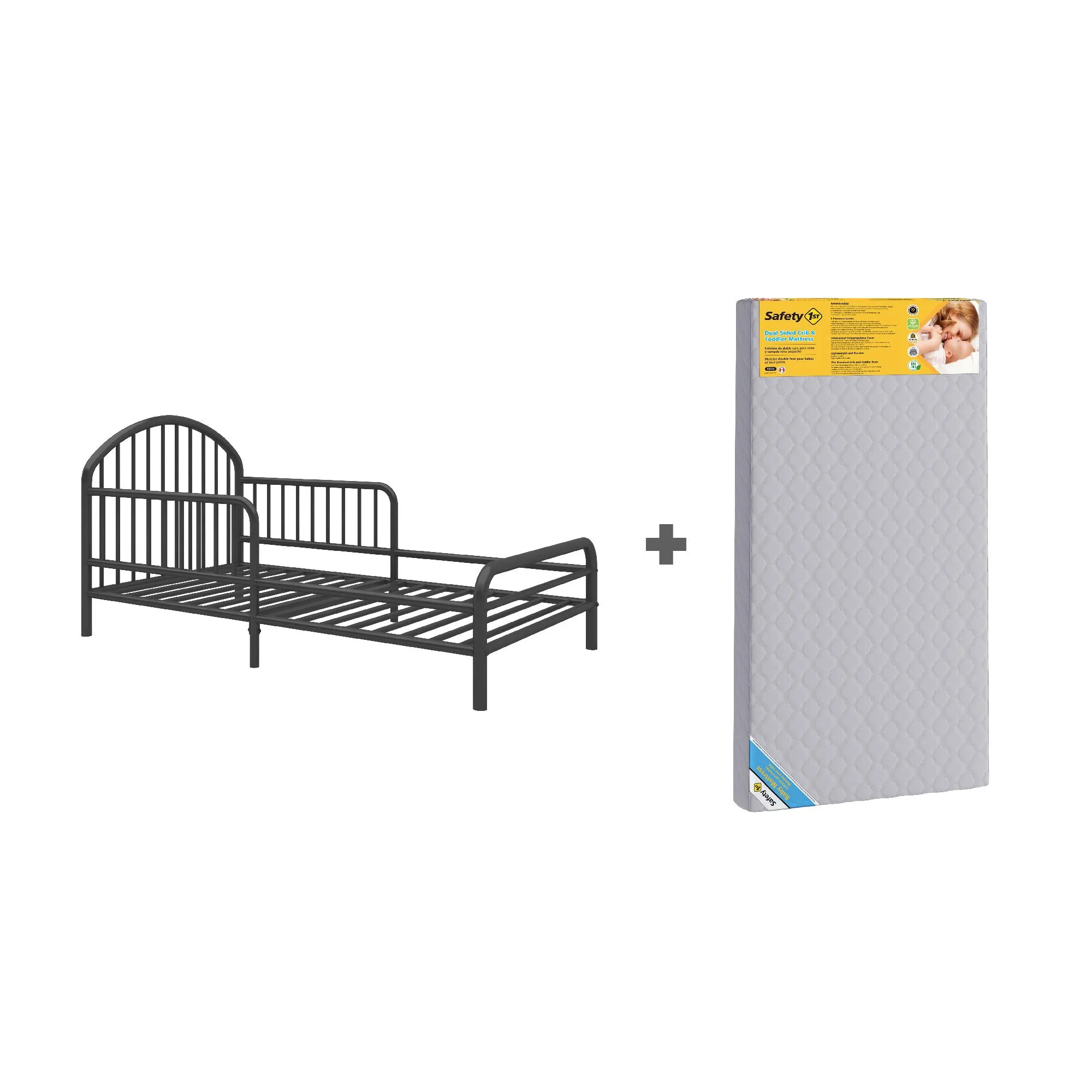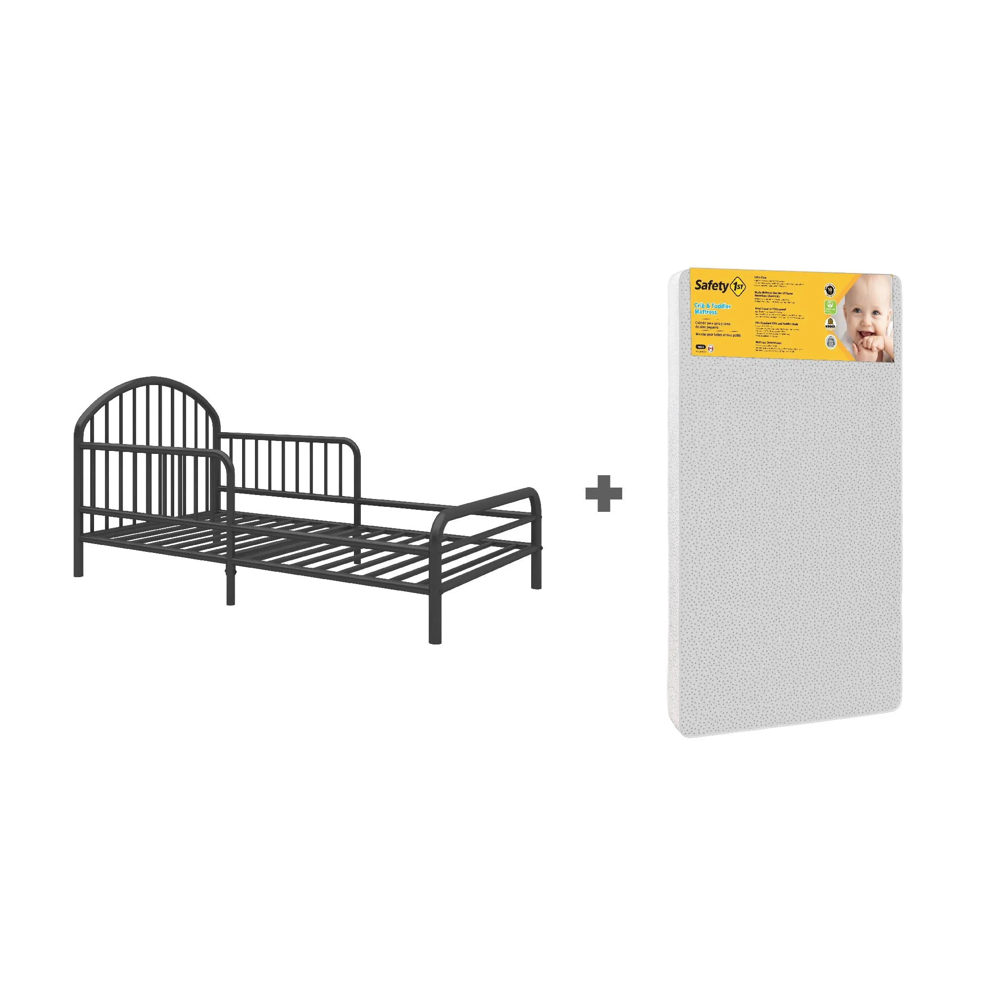 Little Seeds River Metal Toddler Bed with Safety 1st Sweet Dreams Baby & Toddler Mattress, Black