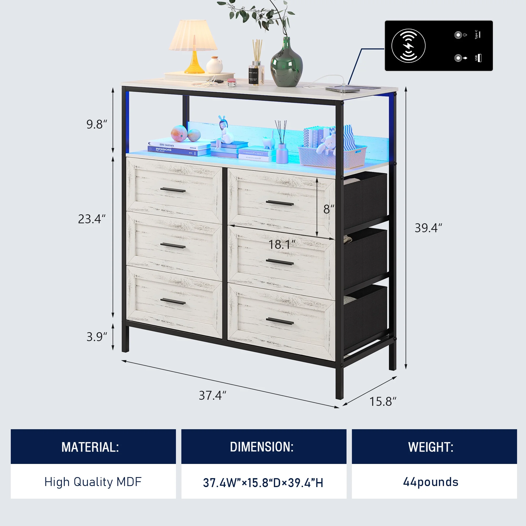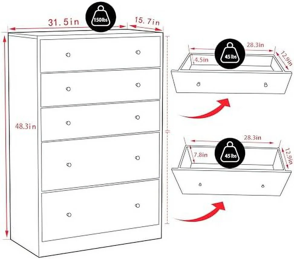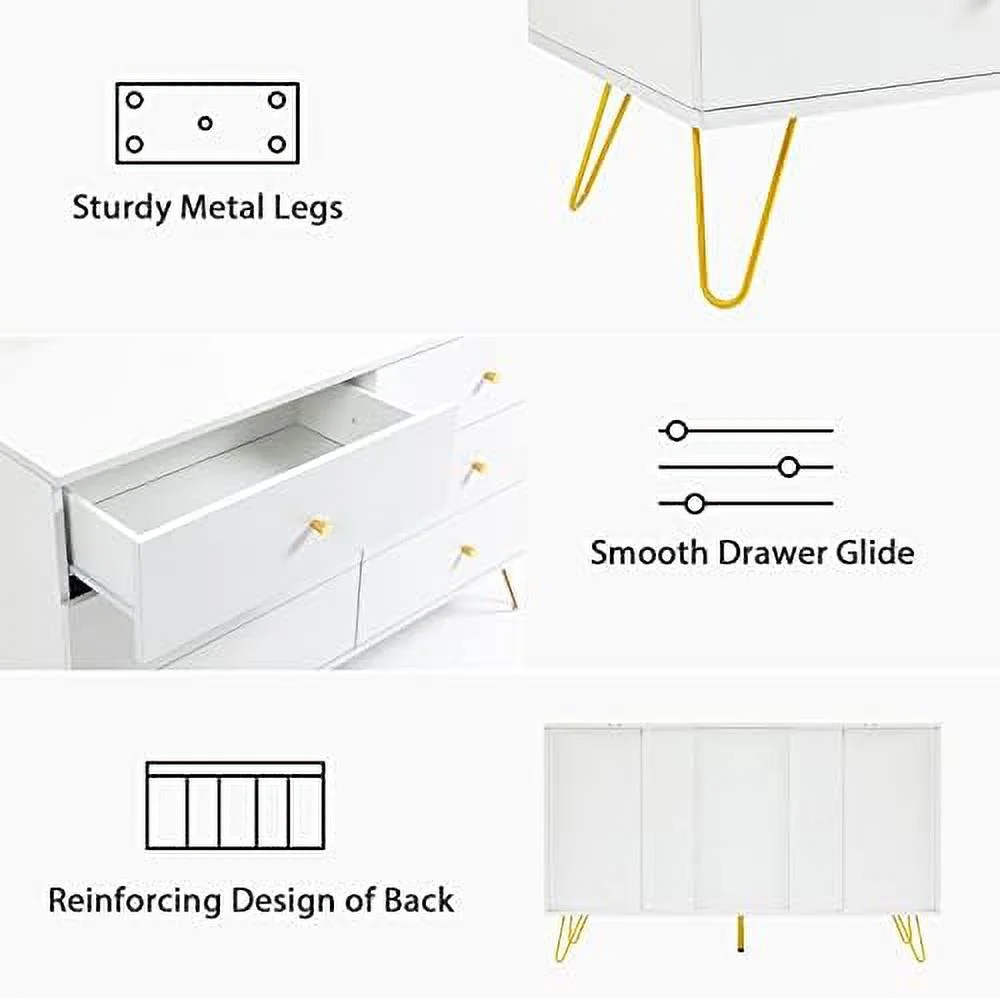 RUNFAYBIU 5-Drawer Dresser for Bedroom Oversized Dresser Organizer Unit for Closet Living Room Hallway Nursery White
