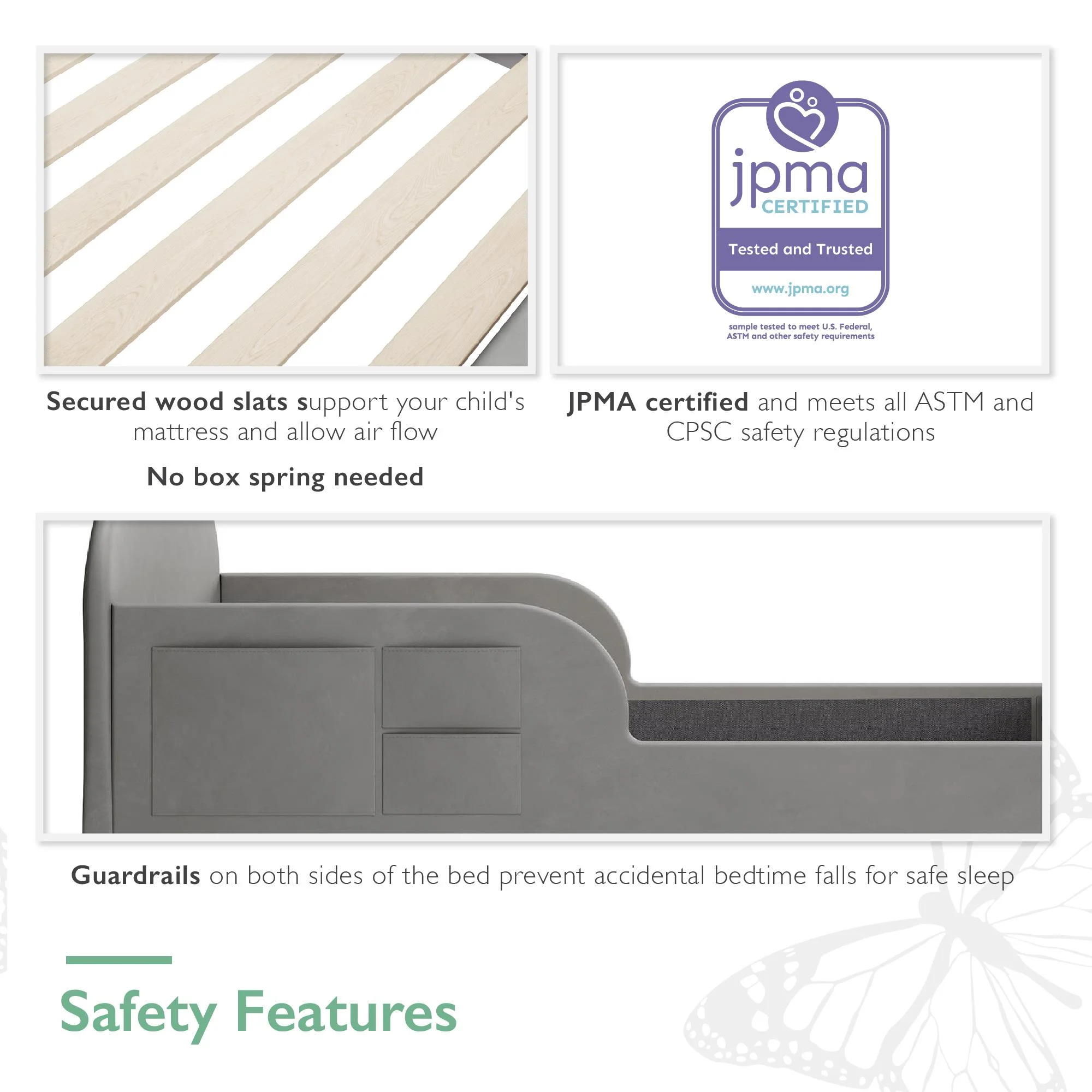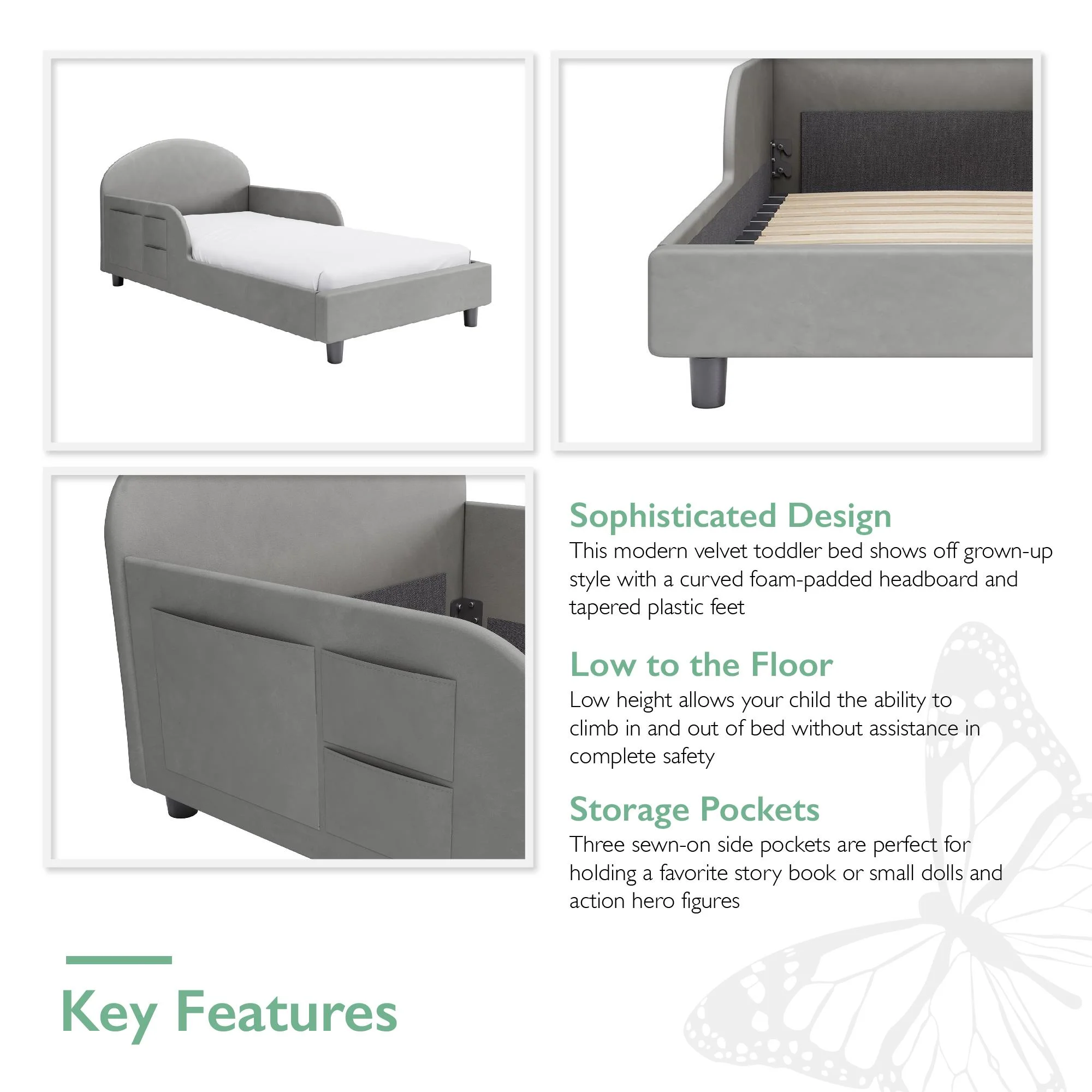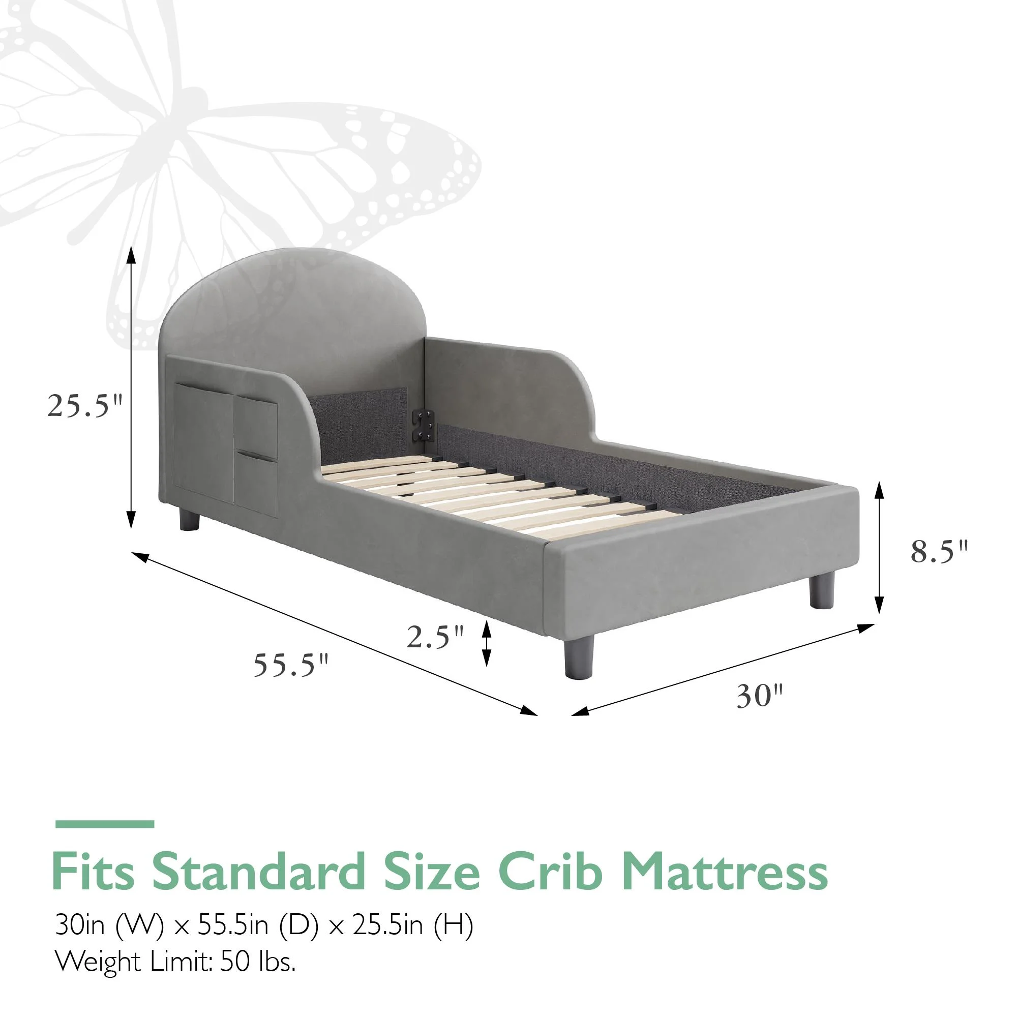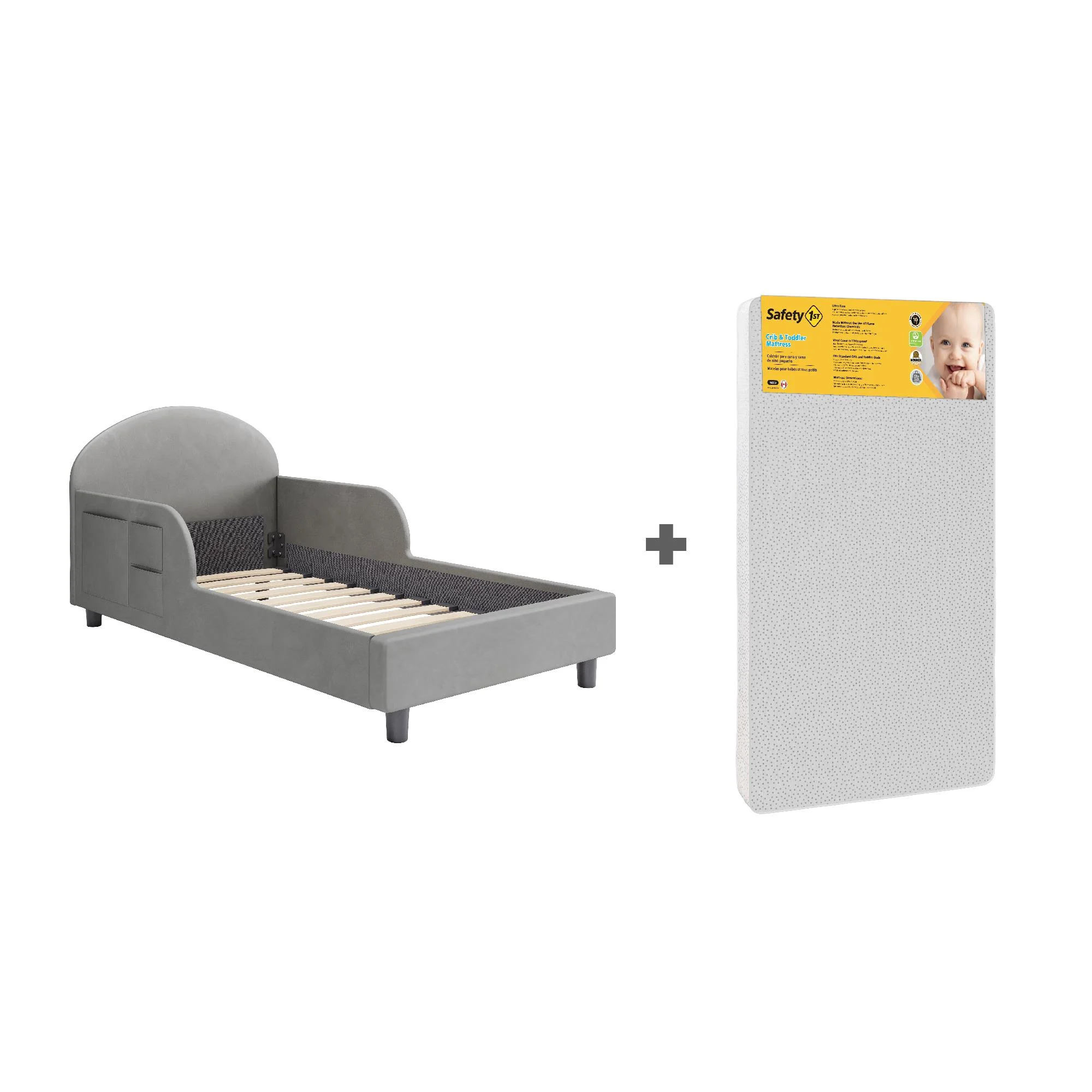Little Seeds Oliver Upholstered Toddler Bed with Safety 1st Sweet Dreams Baby & Toddler Mattress, Gray
