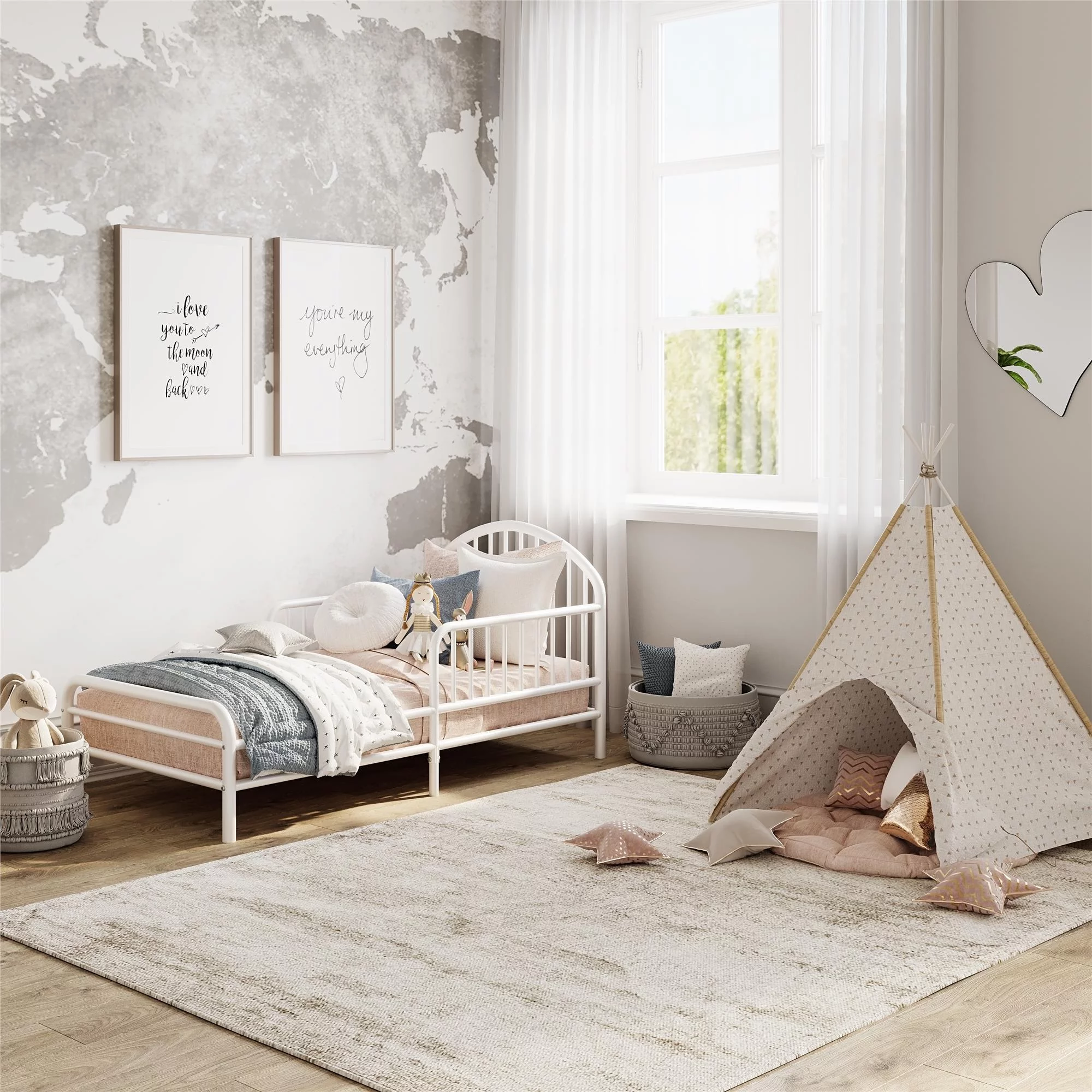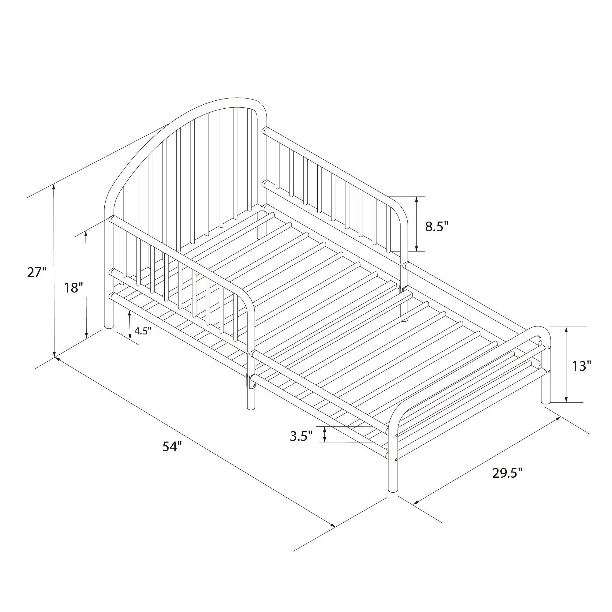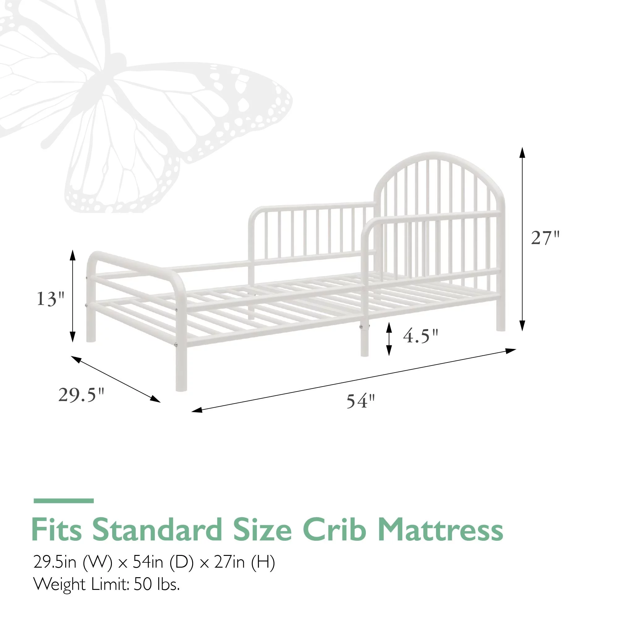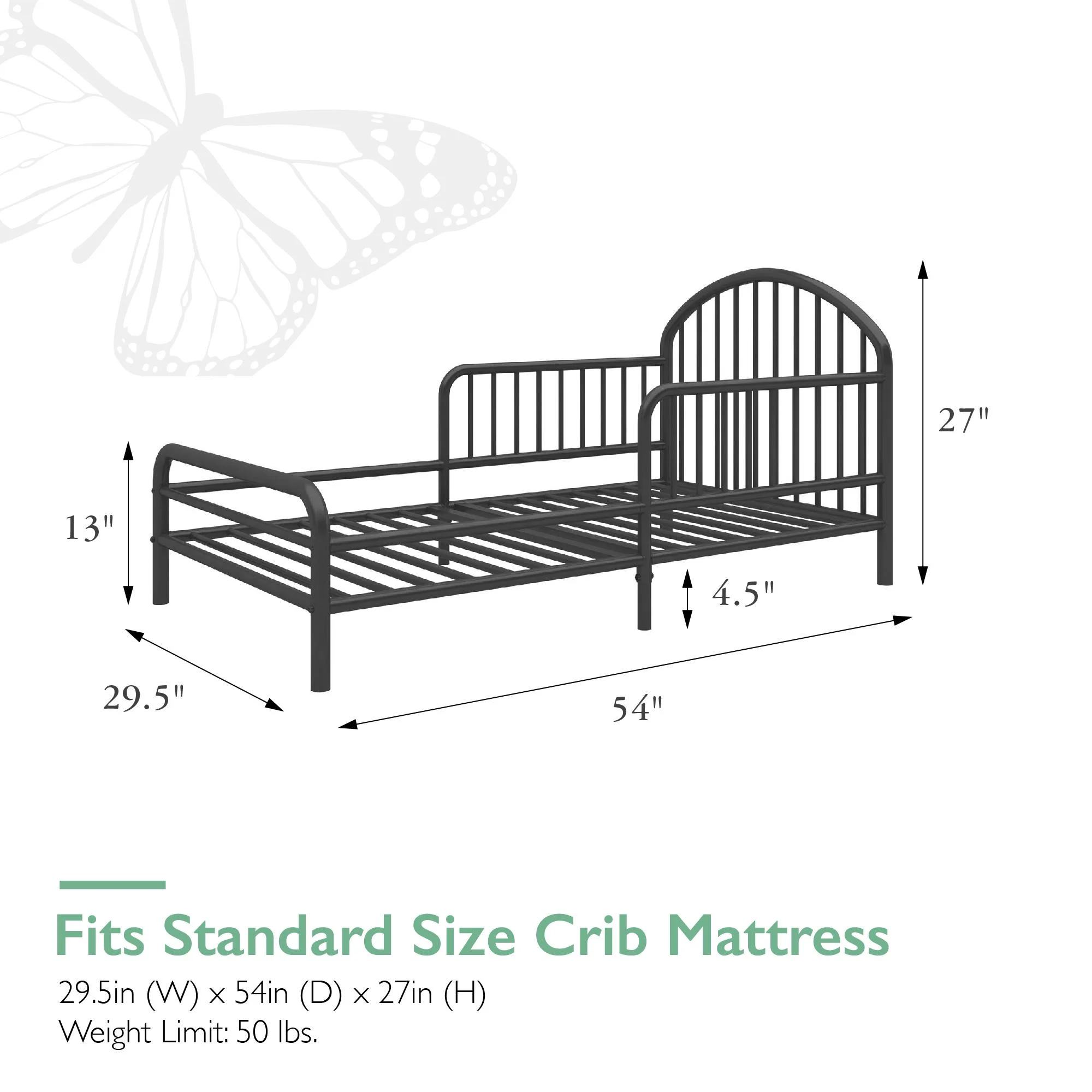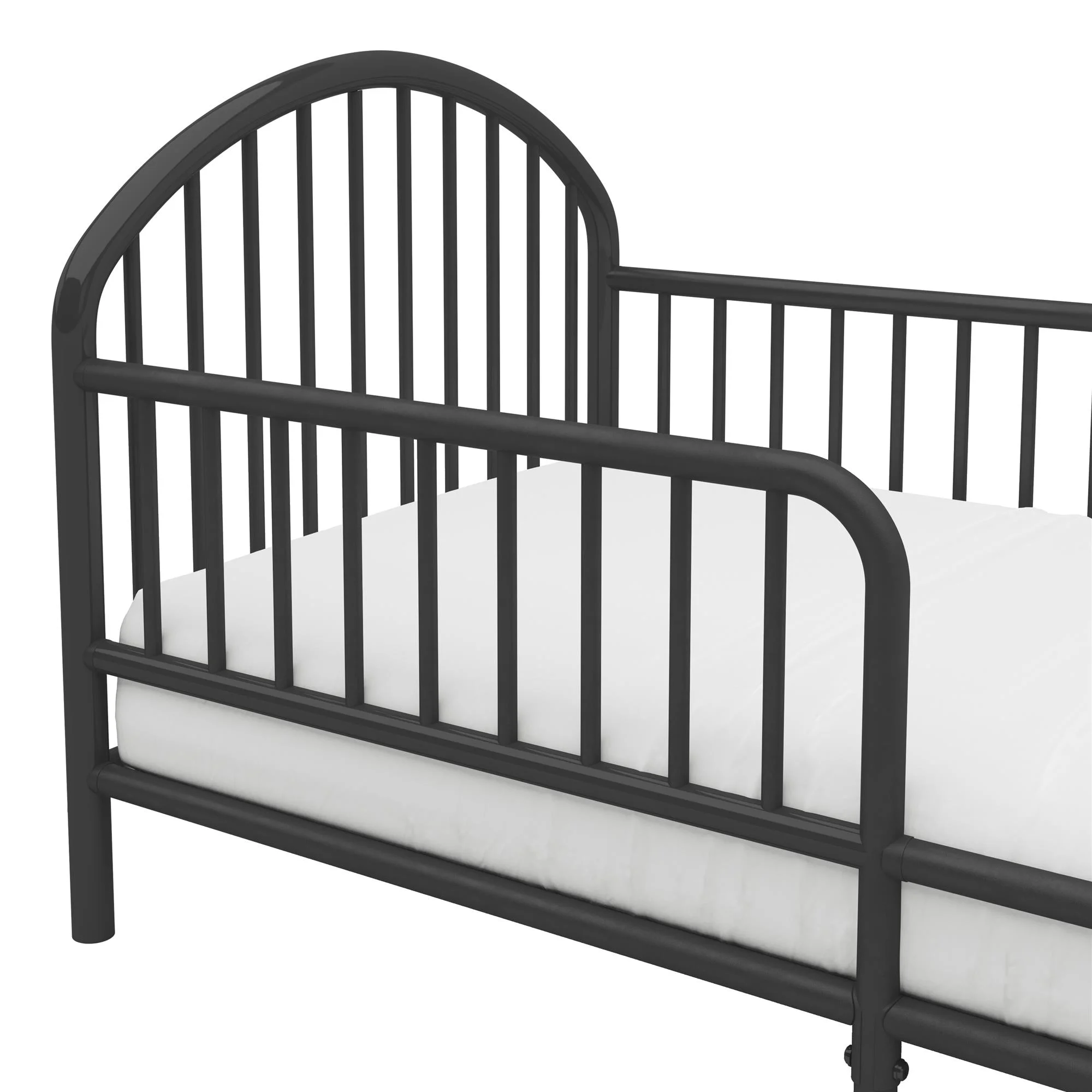 Little Seeds River Metal Toddler Bed with Safety 1st Grow with Me 2-in-1 Baby & Toddler Mattress, Black
