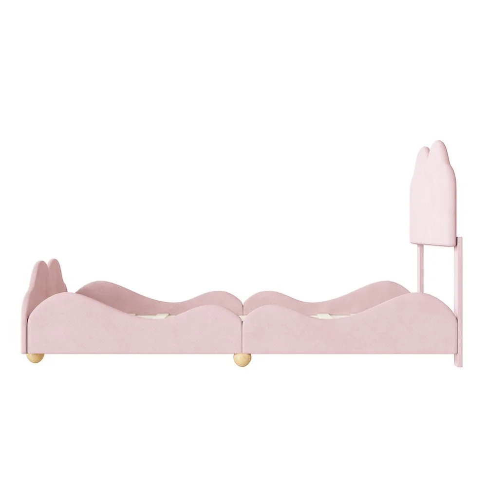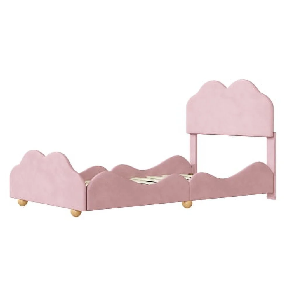 Motent Twin Size Upholstered Platform Bed with Cloud Shaped bed board, Light Pink, 78.1"L x 41.3"W x 39.4"H