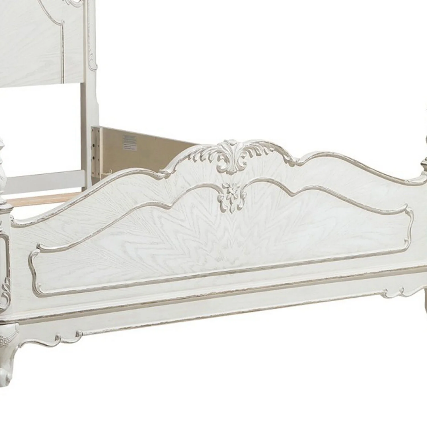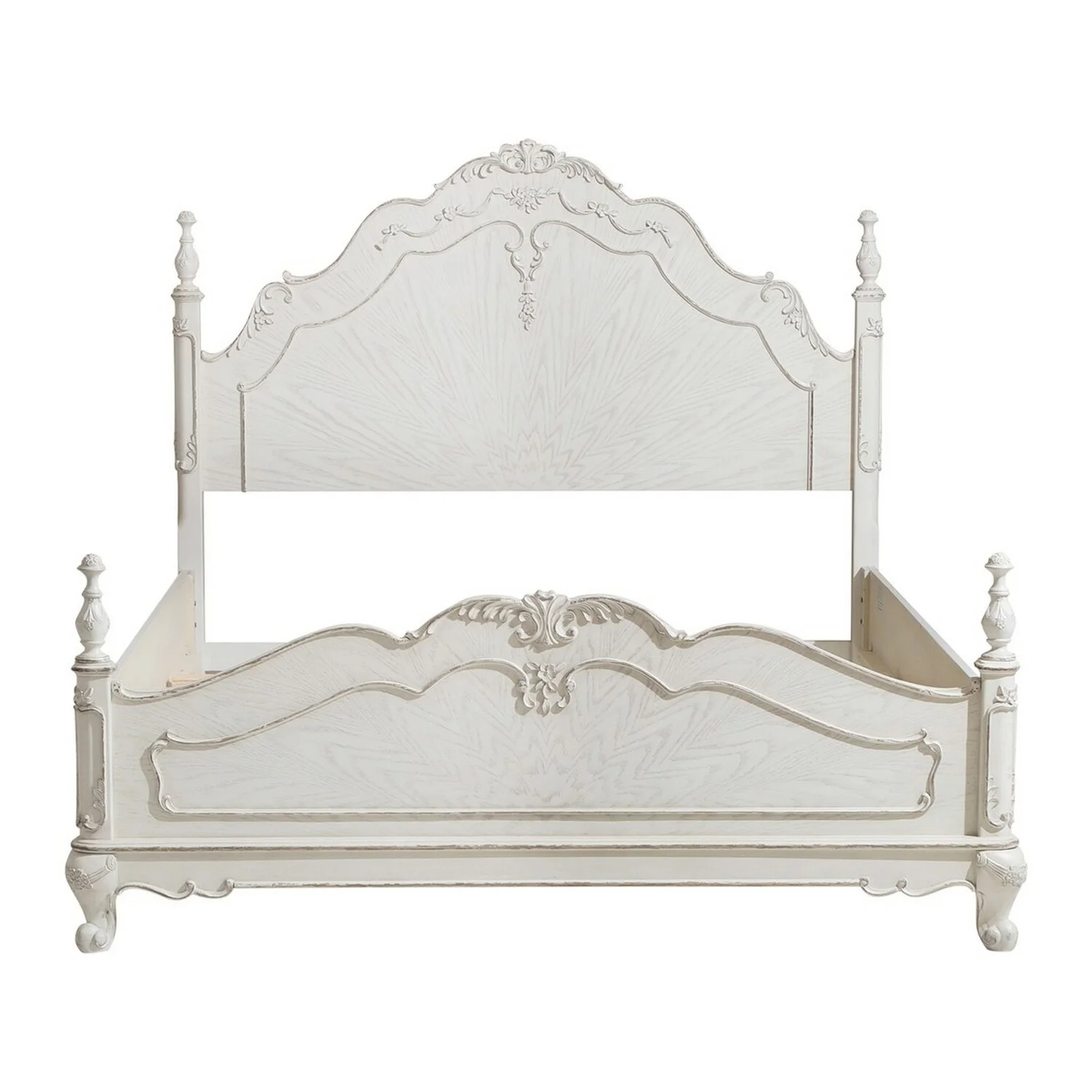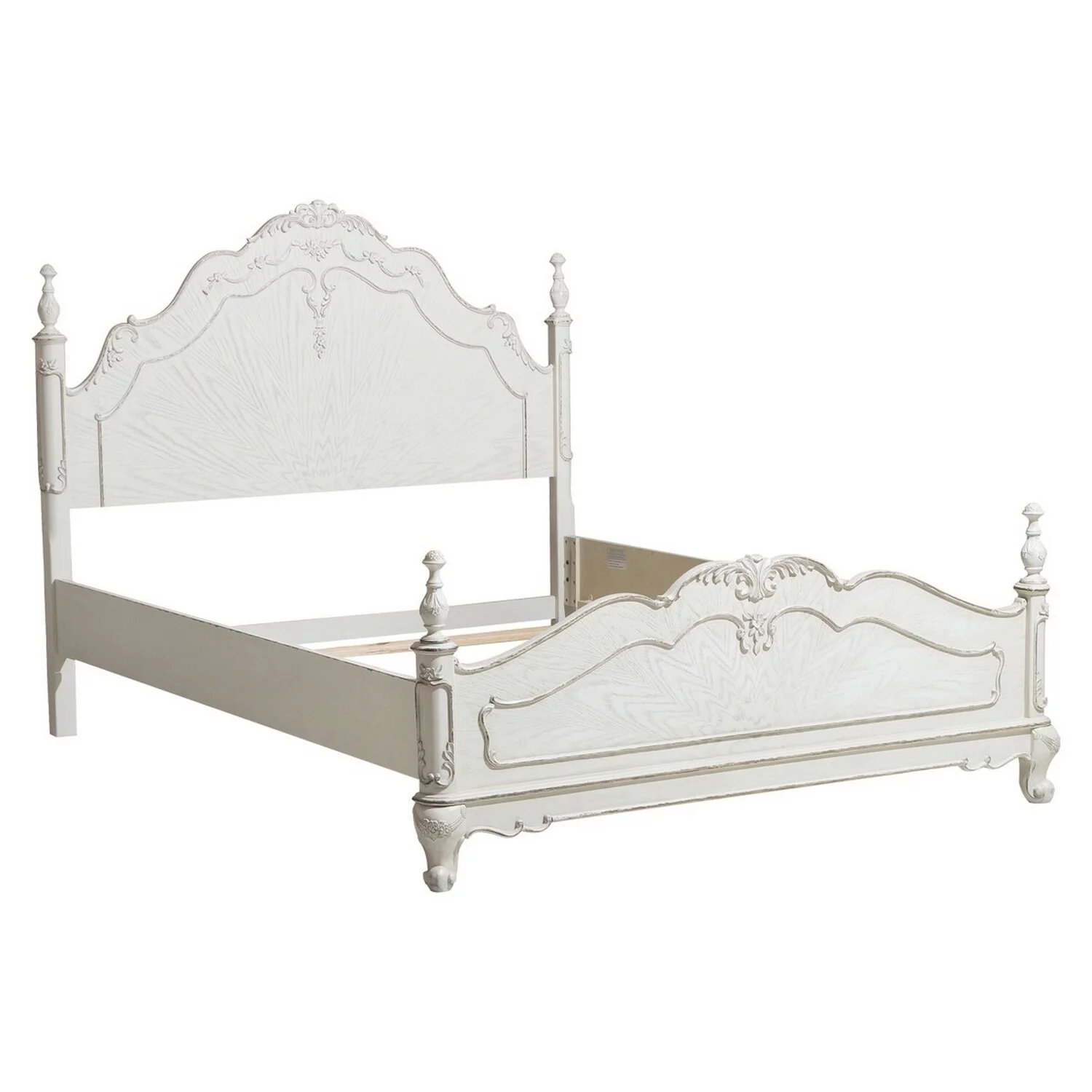 Princess Full Size Bed Floral Motif Carvings Finial Accents Antique White