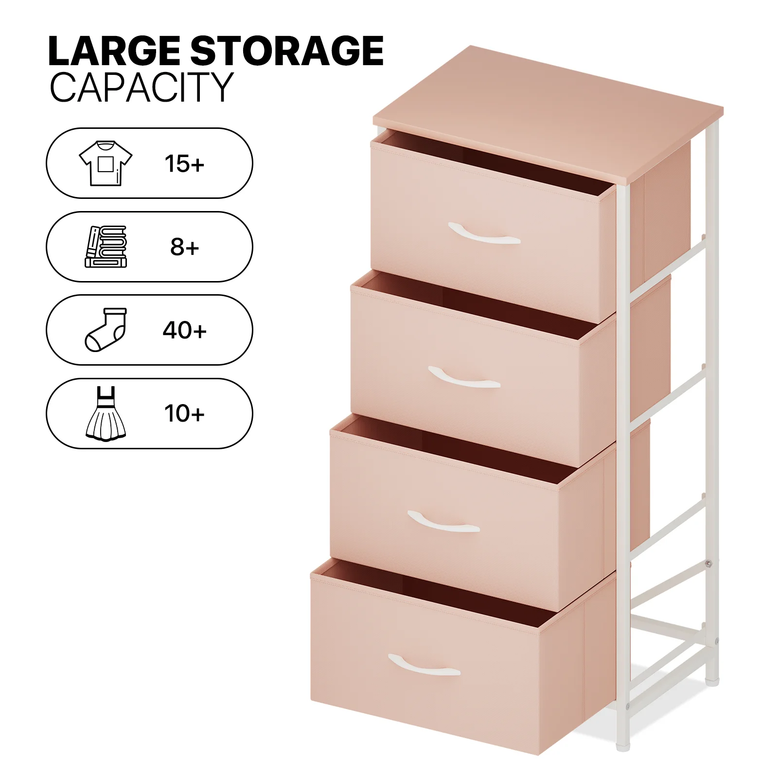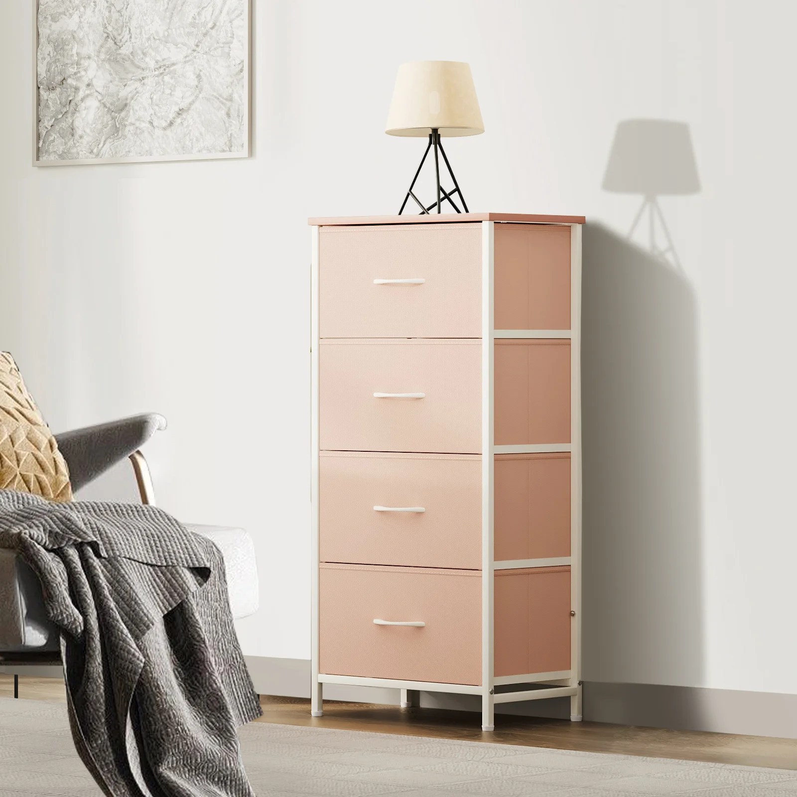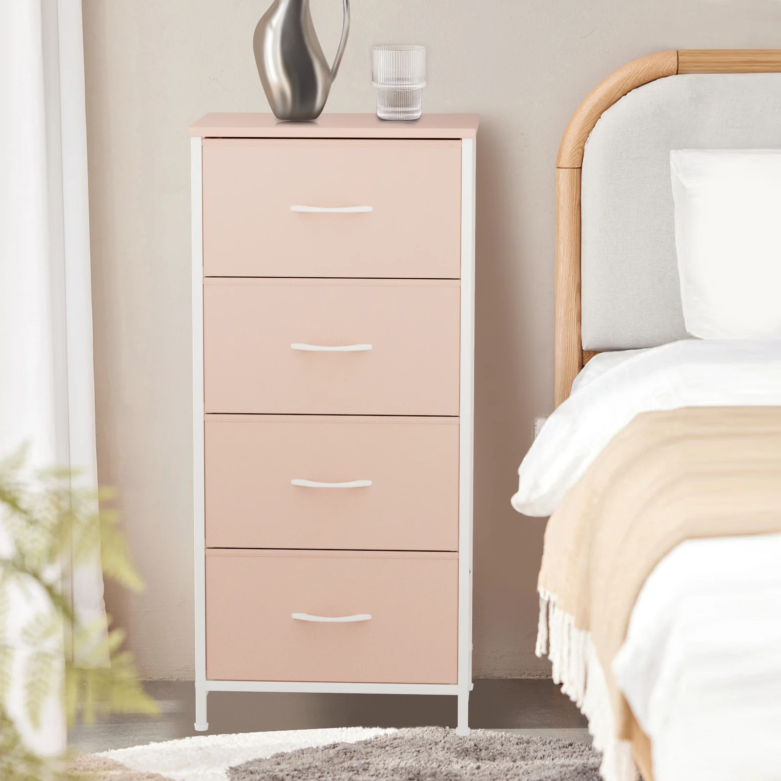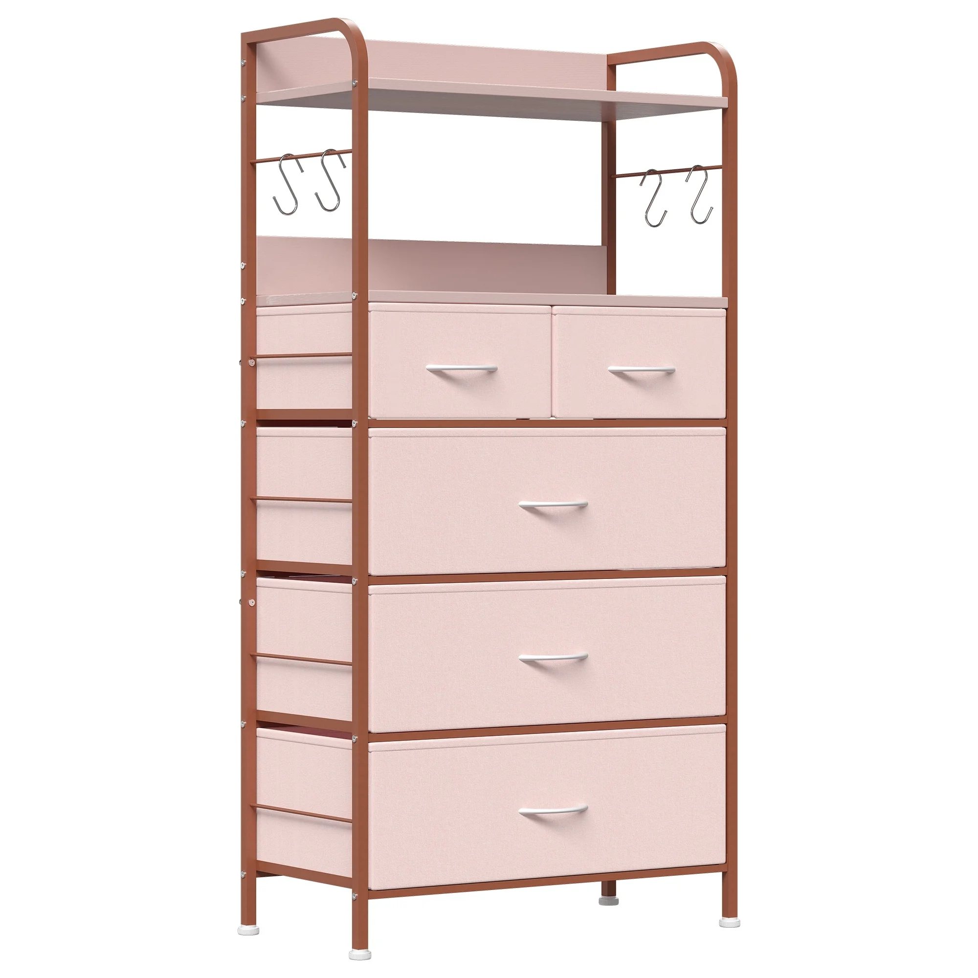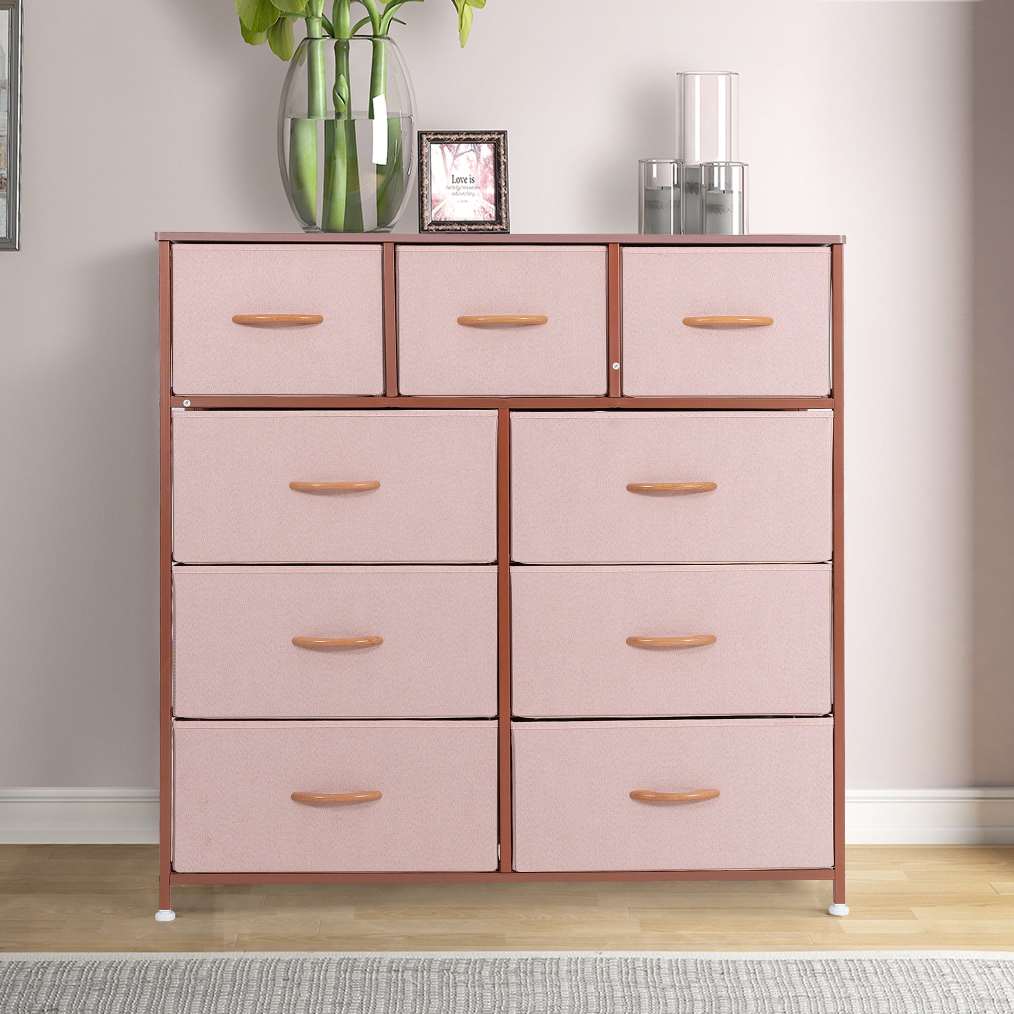 Bedroom Storage Dresser with 9 Drawers Bins Steel Frame Organizer Non-woven Fabric Chest Rose Pink