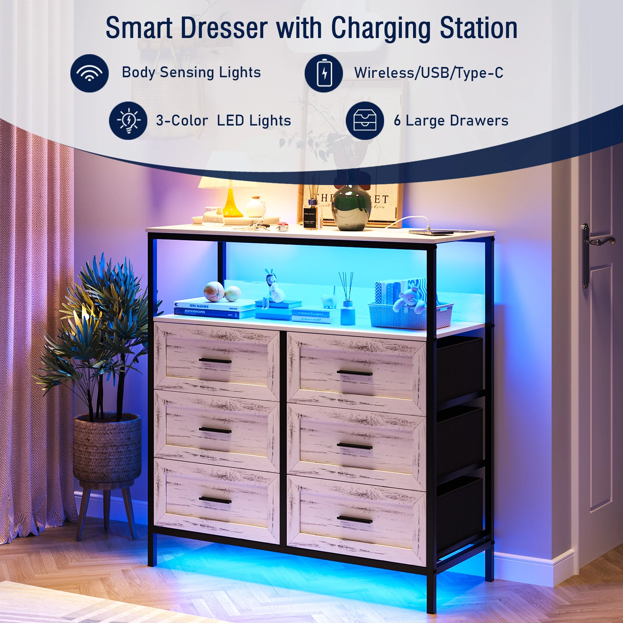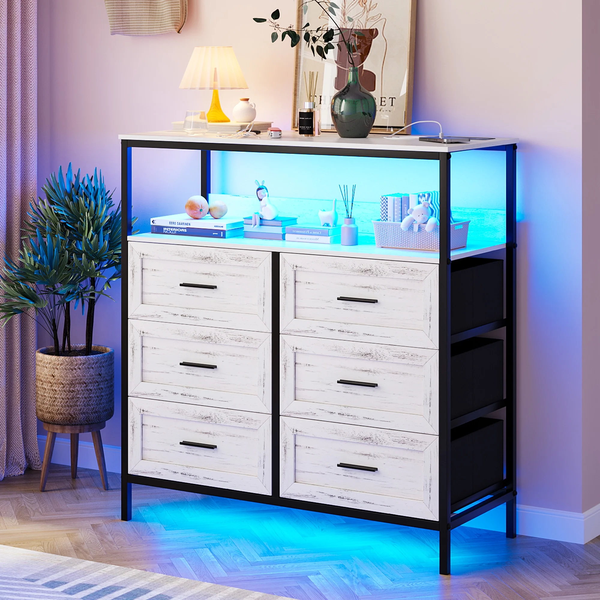 6-Drawer Chest Dresser Storage Tower Closet Organizer Bedroom Plastic White