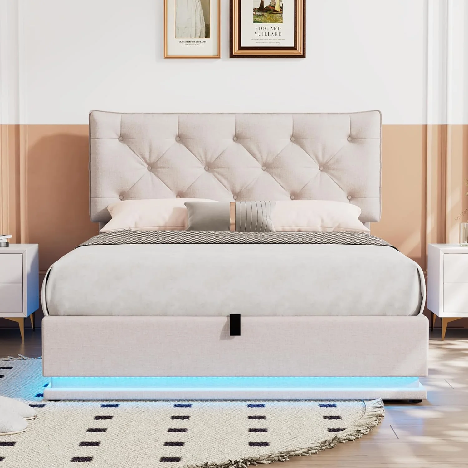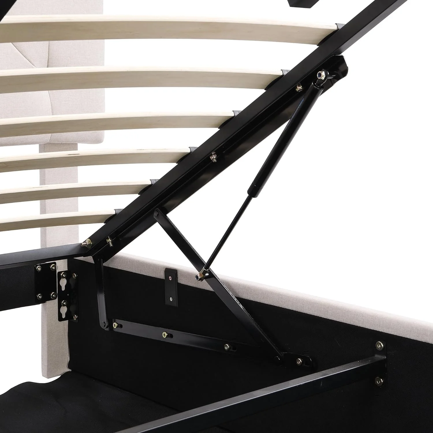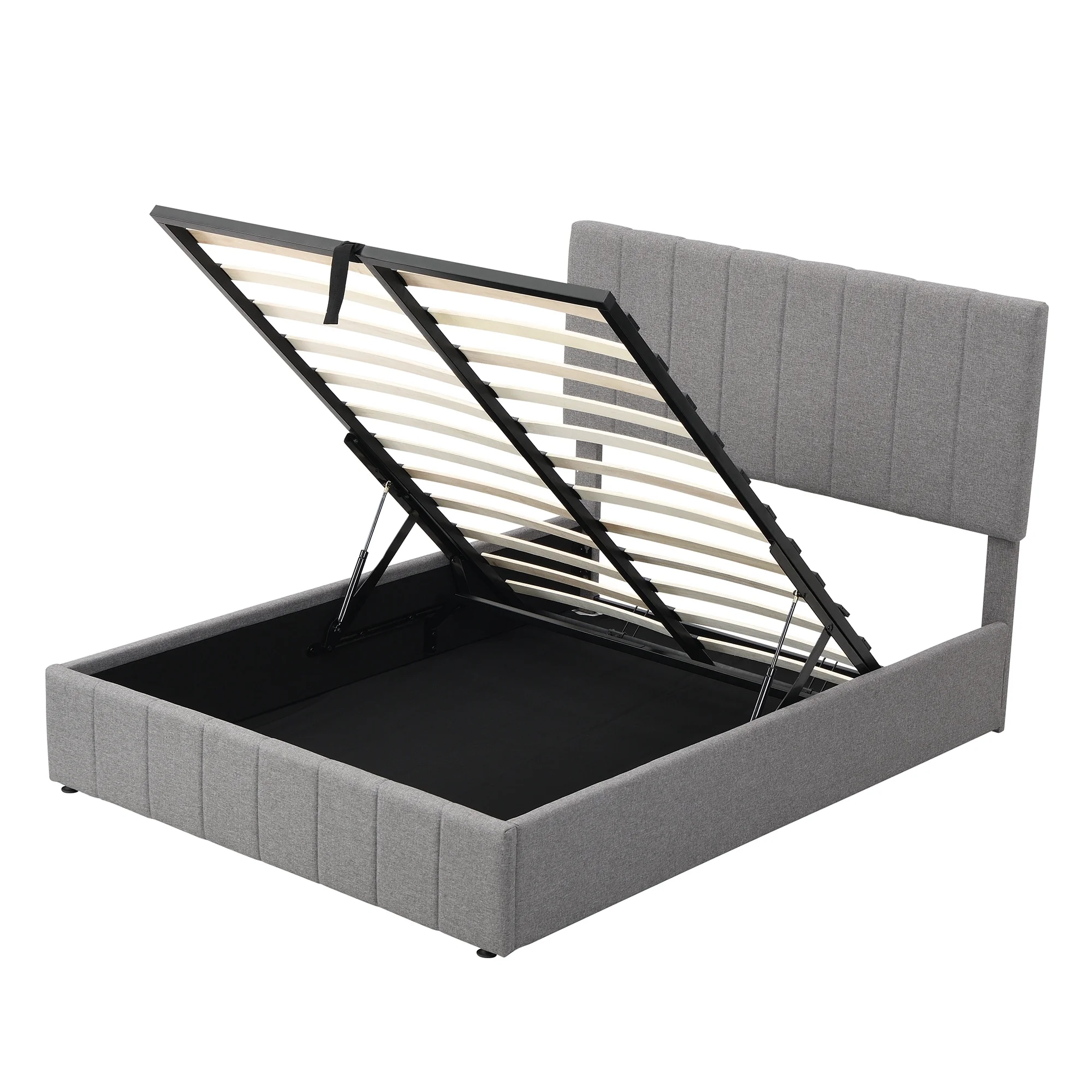 Upholstered Platform Bed with Hydraulic Storage System & Tufted Headboard Grey - Full