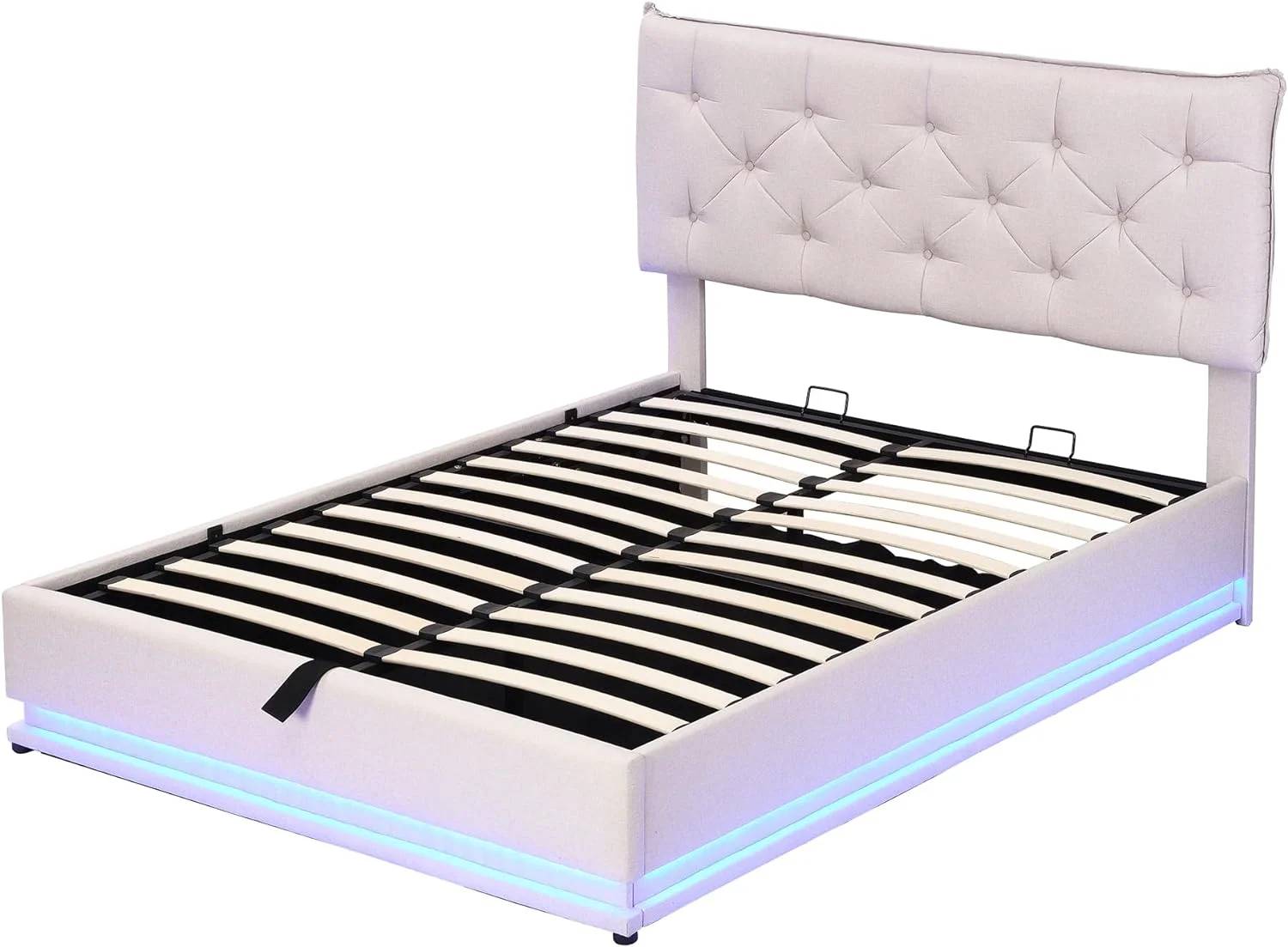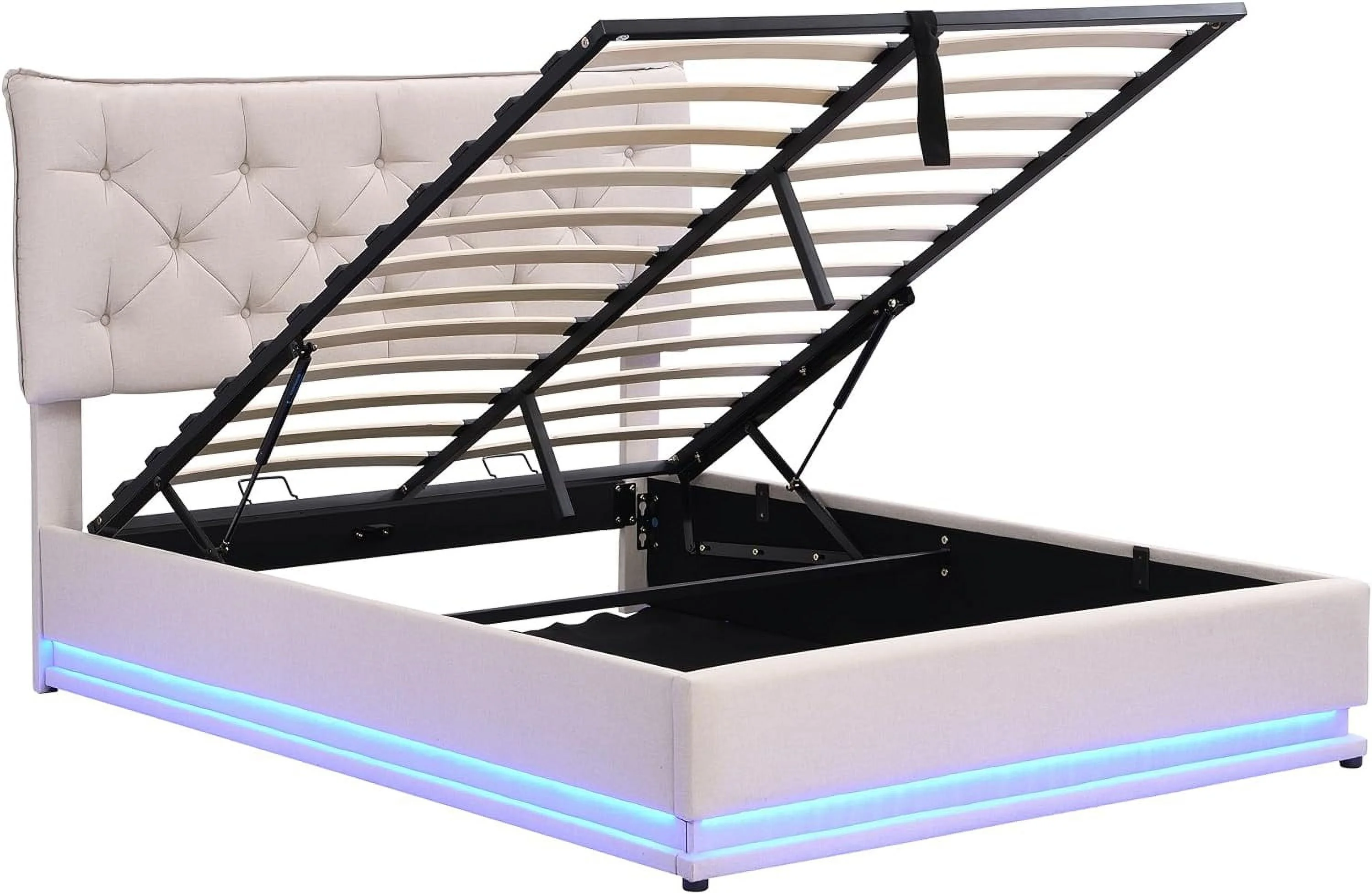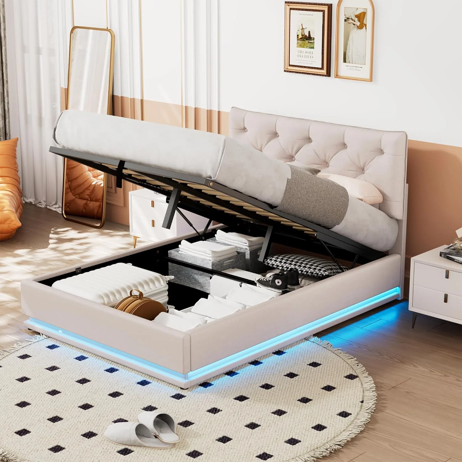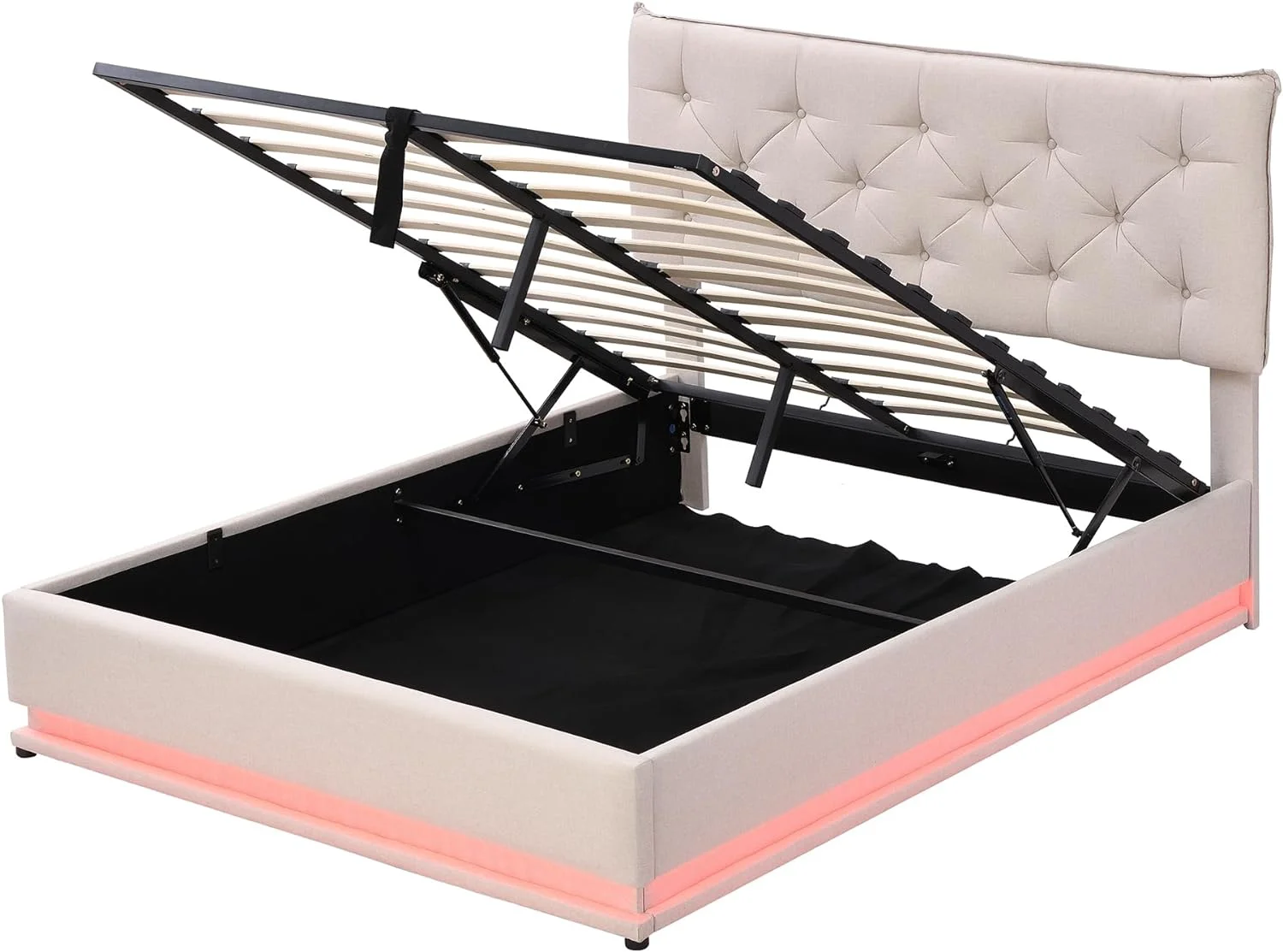 Upholstered Platform Bed with Hydraulic Storage System & Tufted Headboard Grey - Full