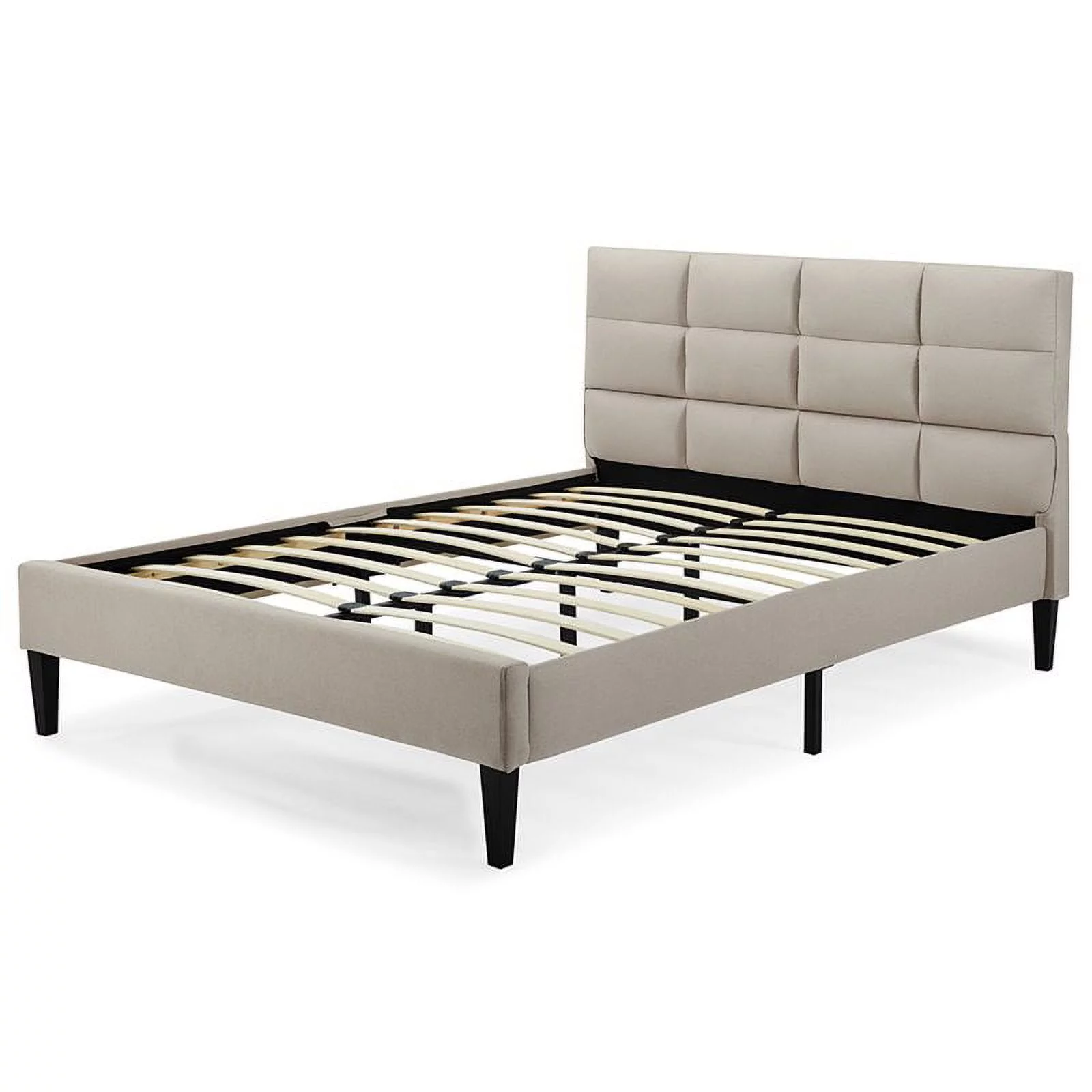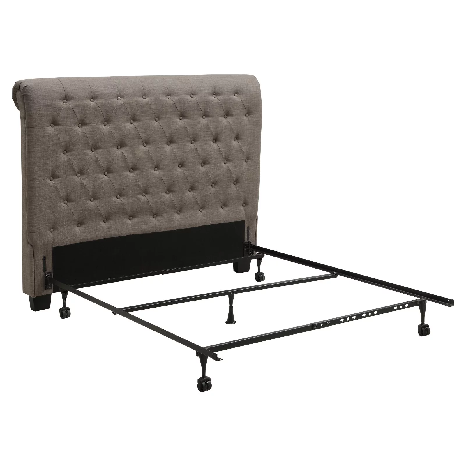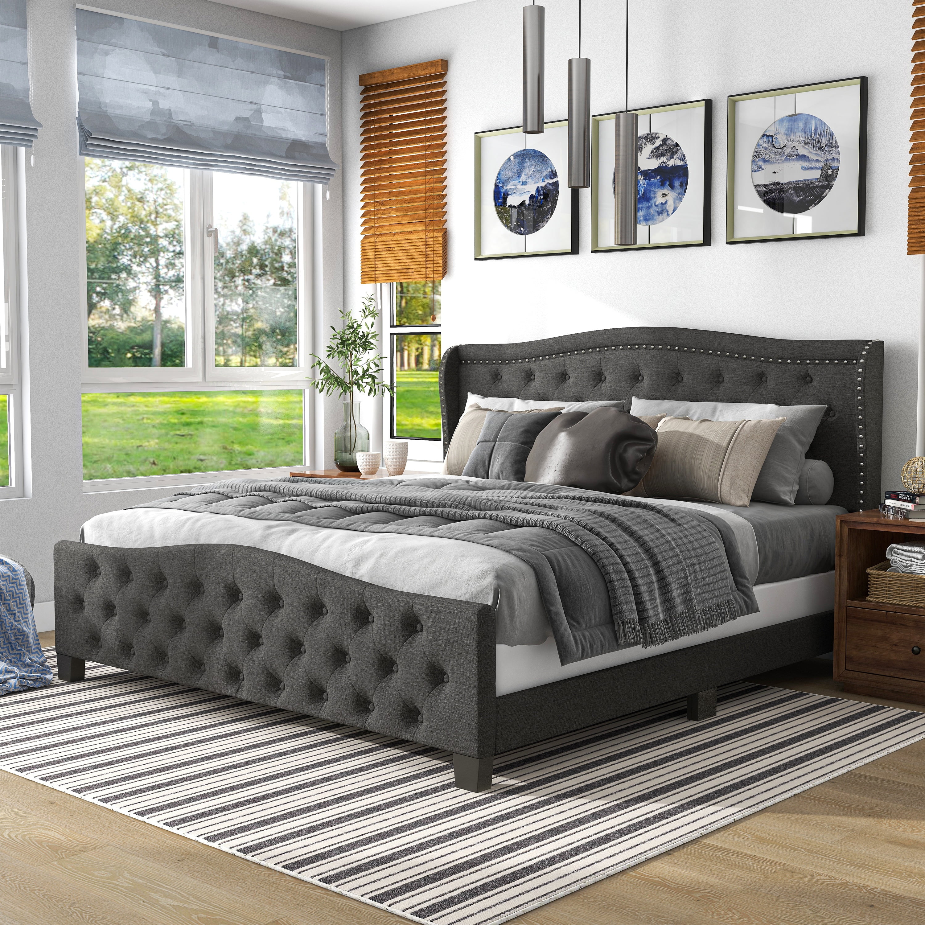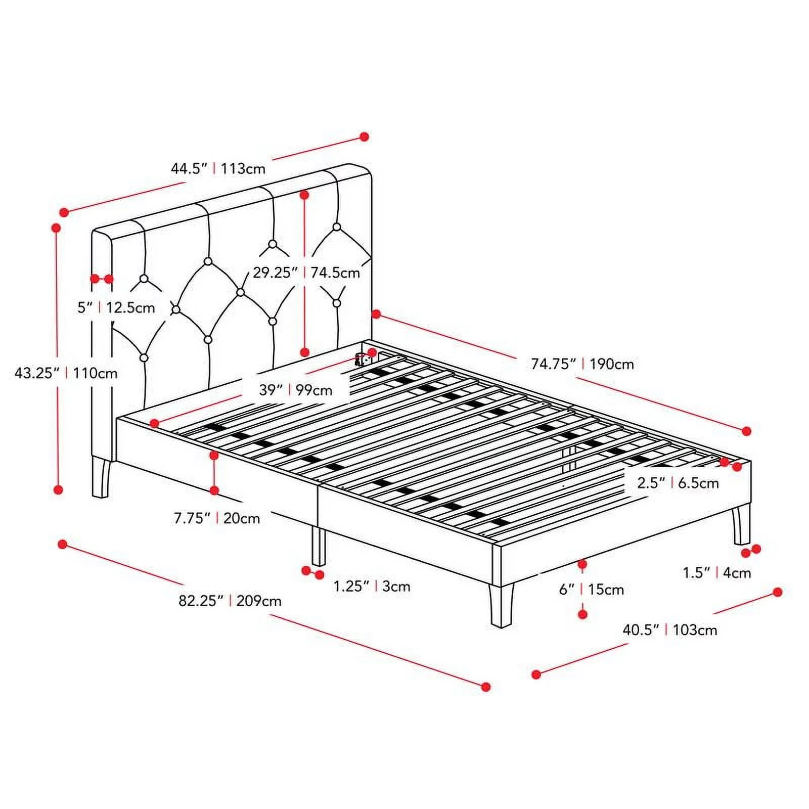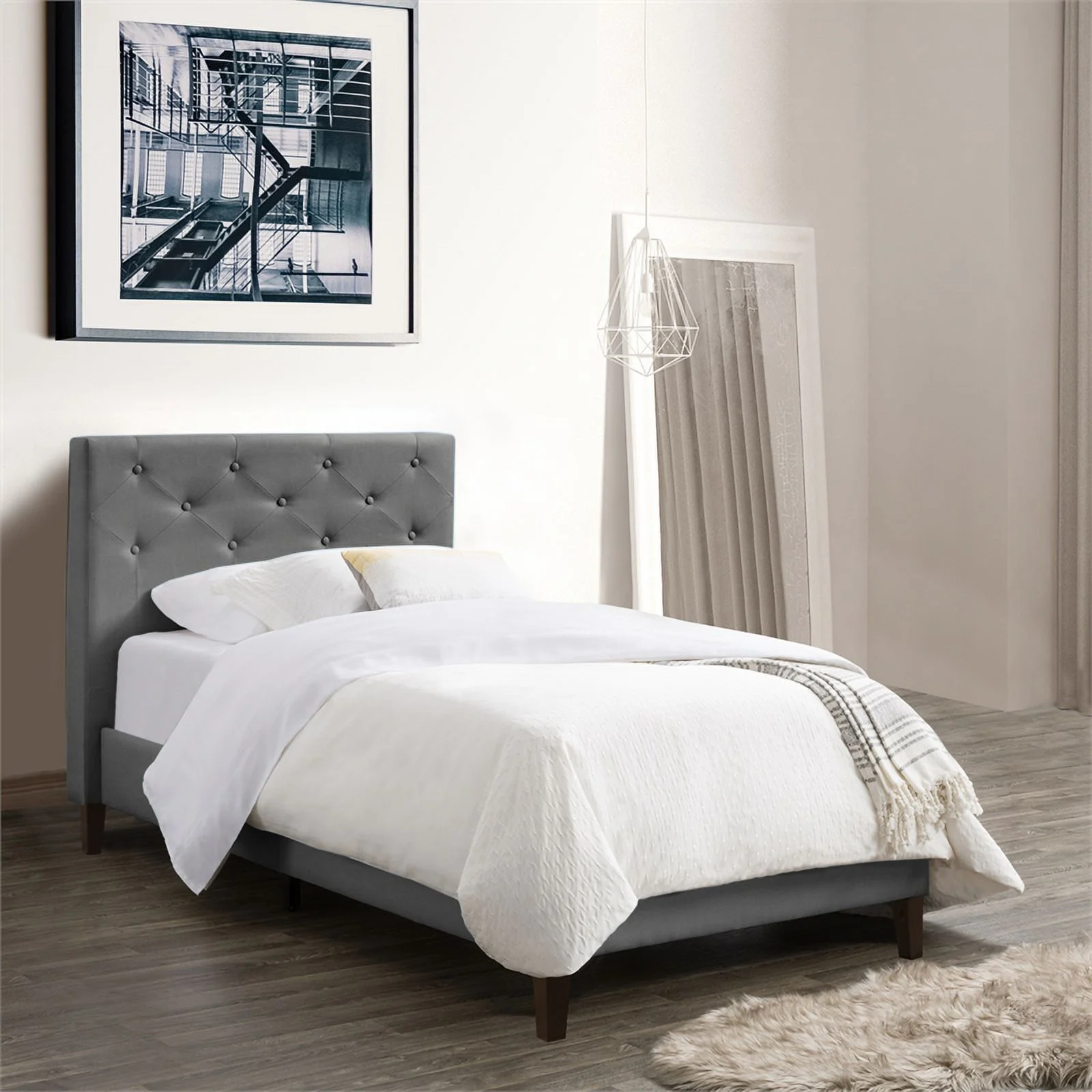 Full Metal Platform Bed Frame with Gray Button Tufted Upholstered Headboard