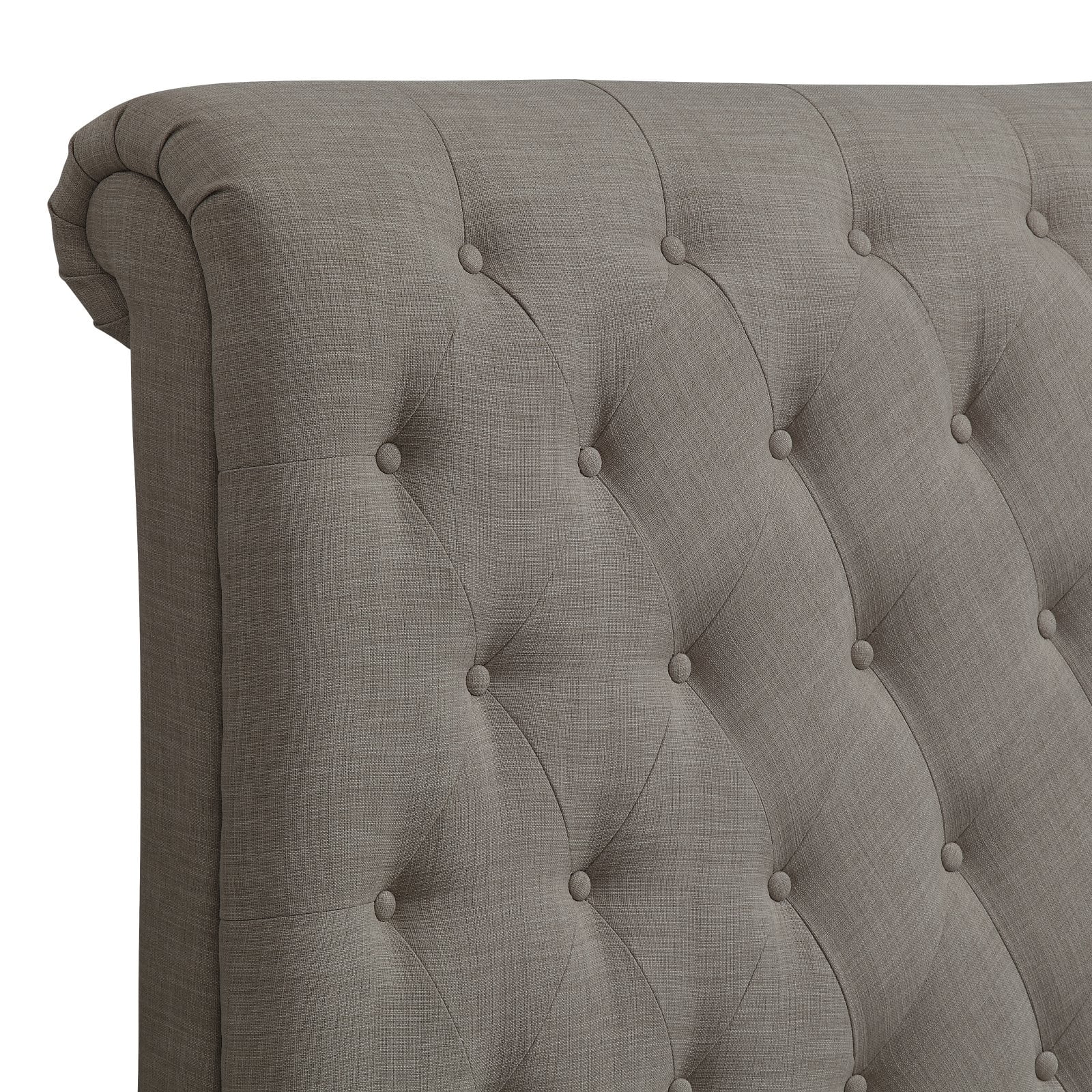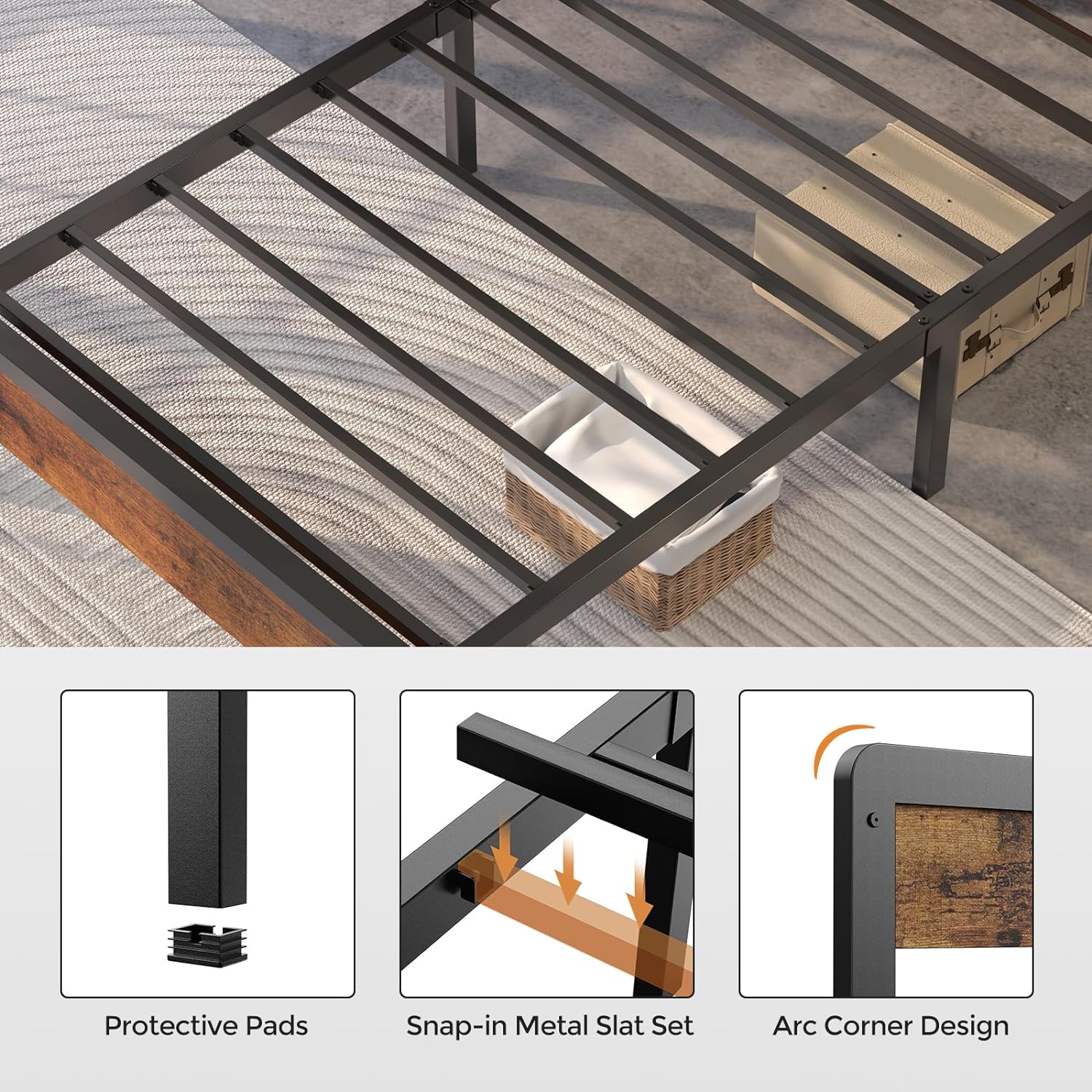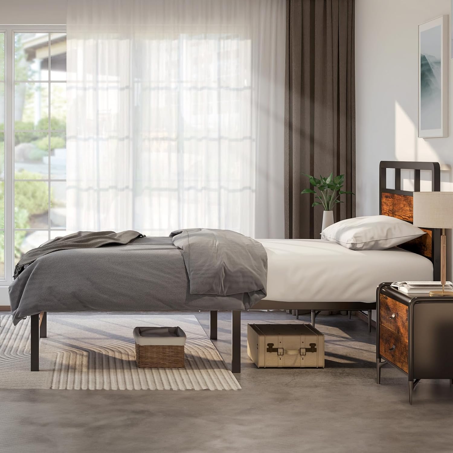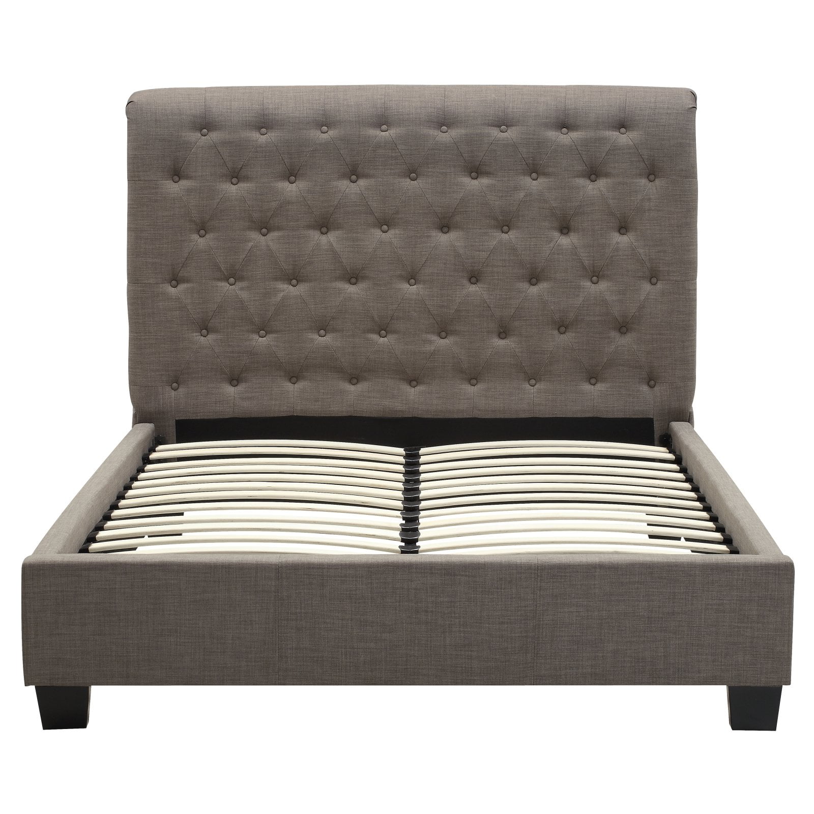 Full Metal Platform Bed Frame with Gray Button Tufted Upholstered Headboard