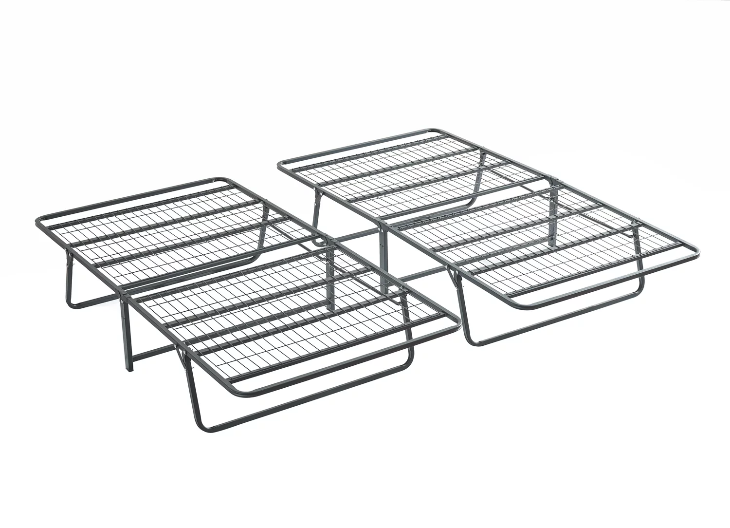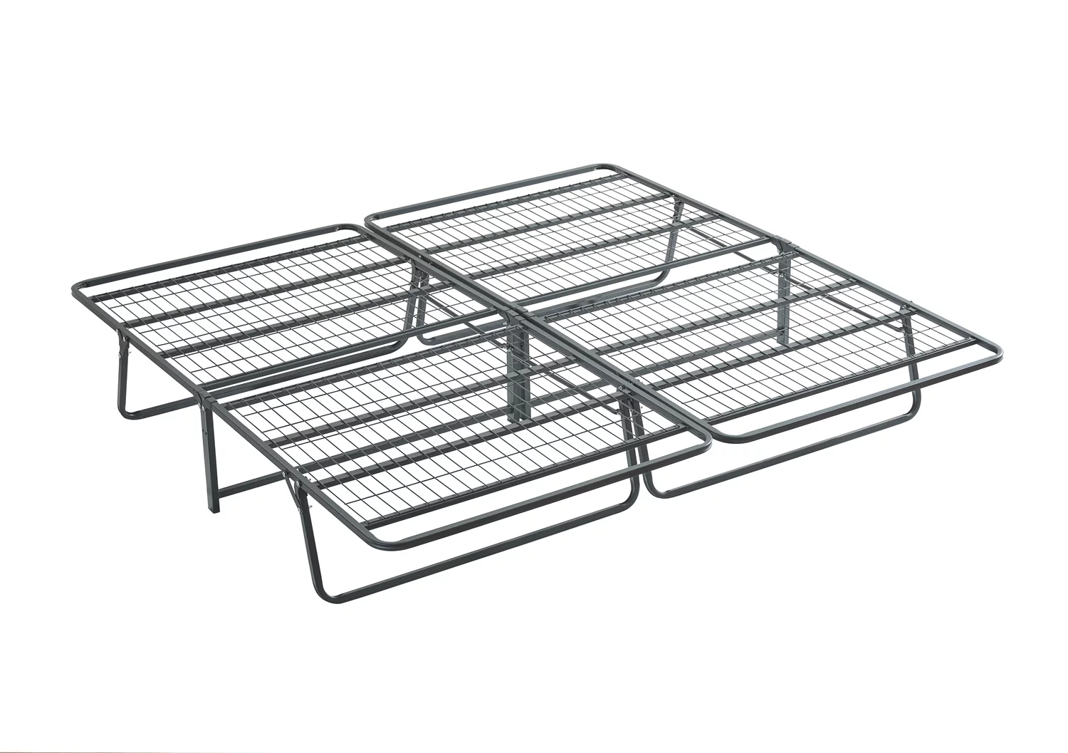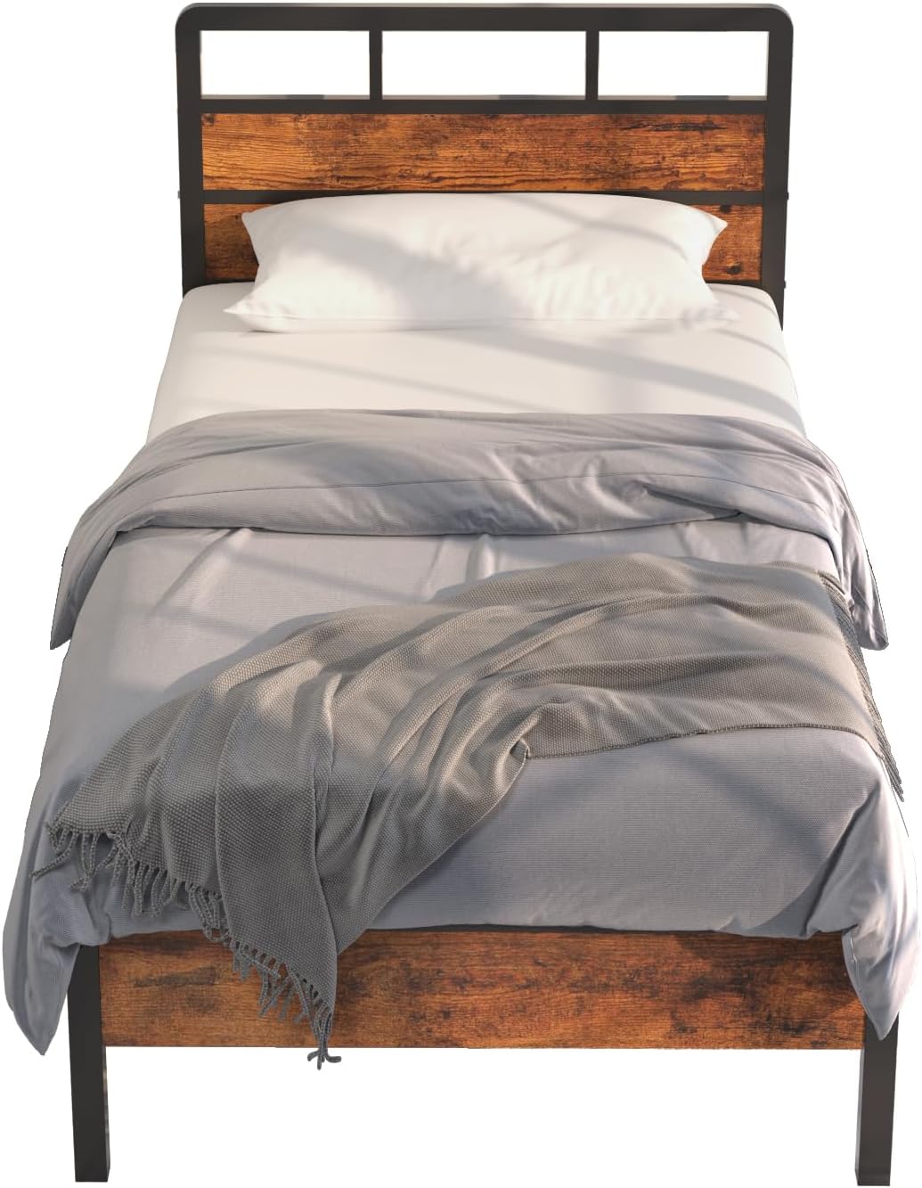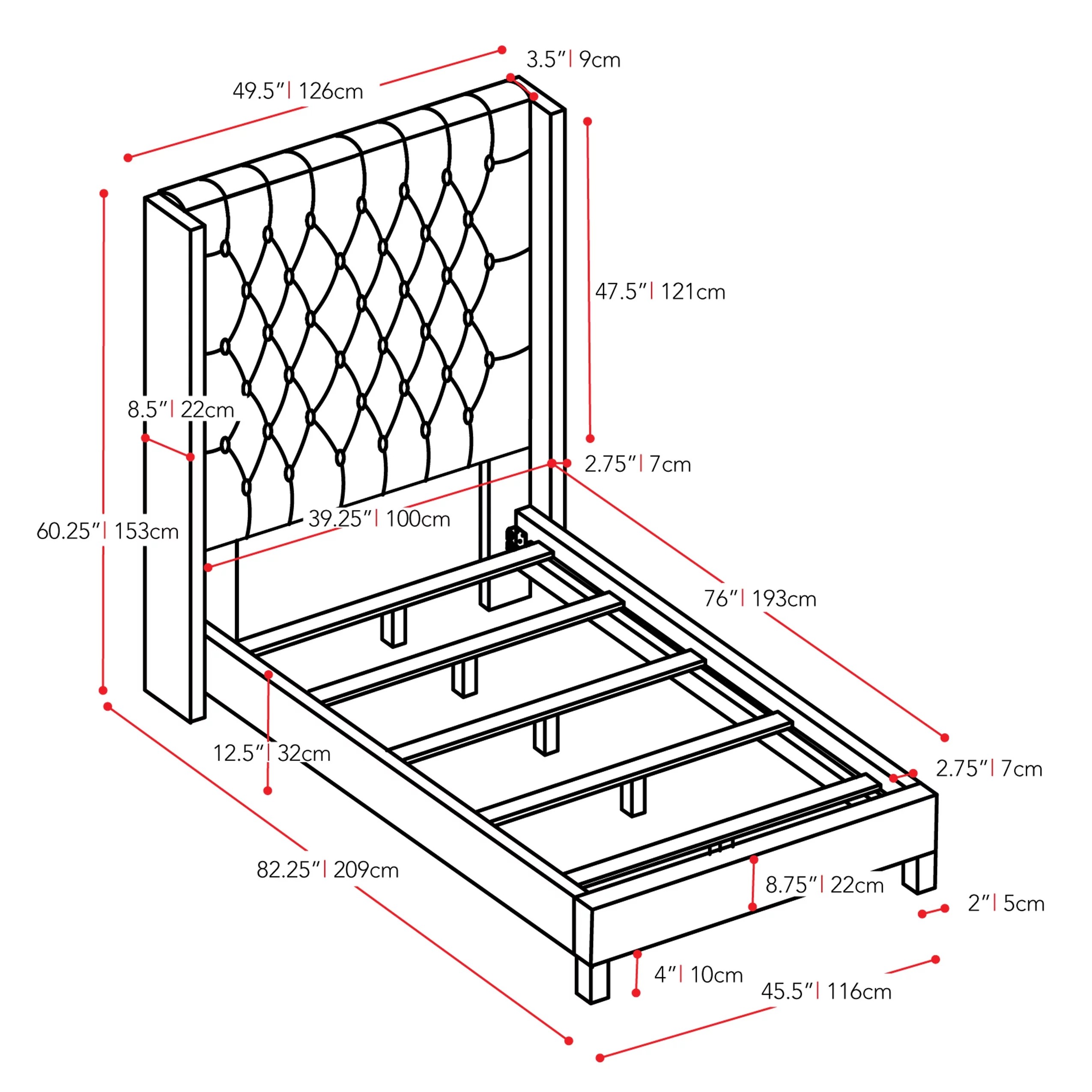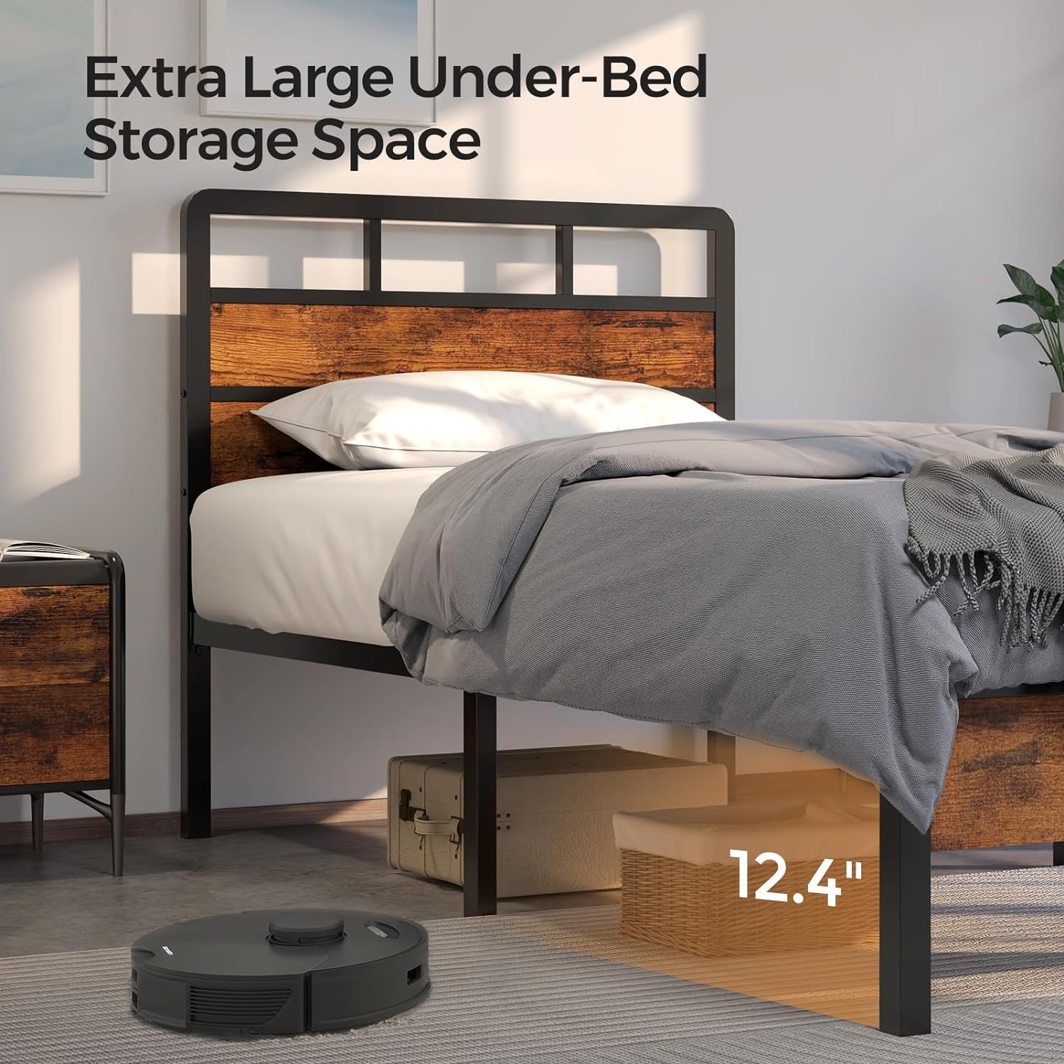 Full Metal Platform Bed Frame with Gray Button Tufted Upholstered Headboard