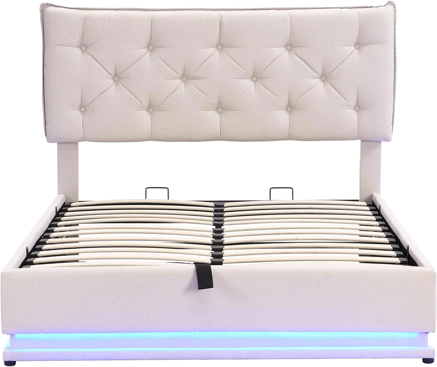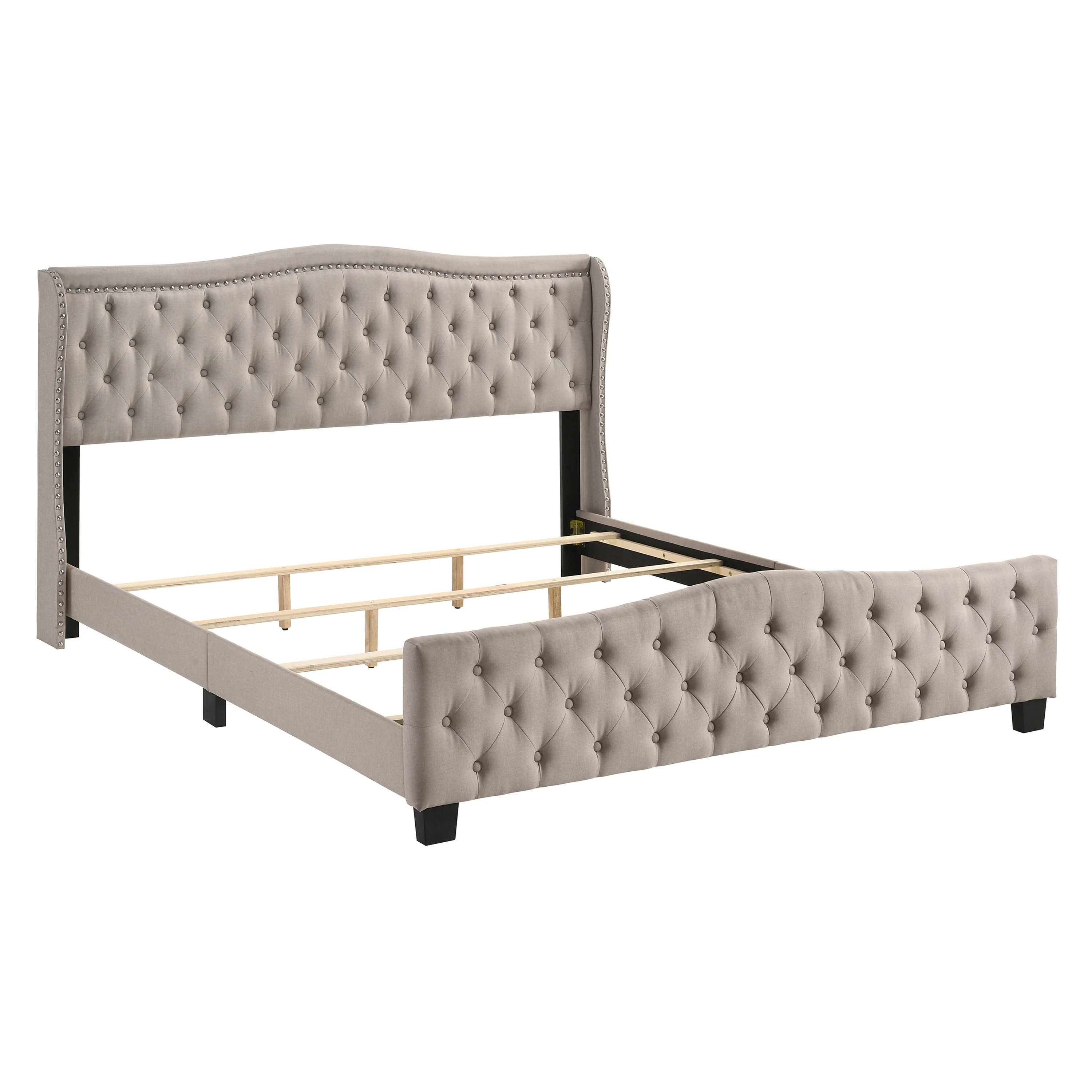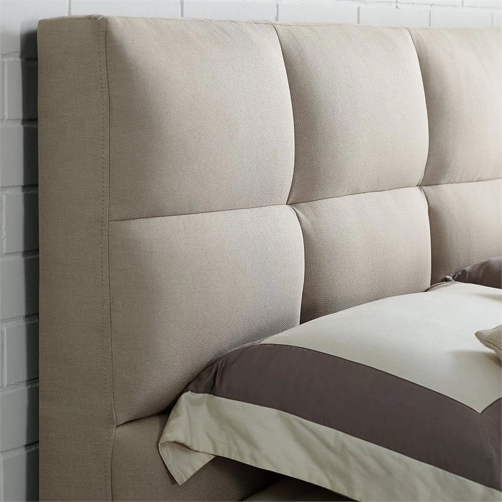 Upholstered Platform Bed Frame with 4 Drawers, Button Tufted Headboard & Footboard Beige - Queen