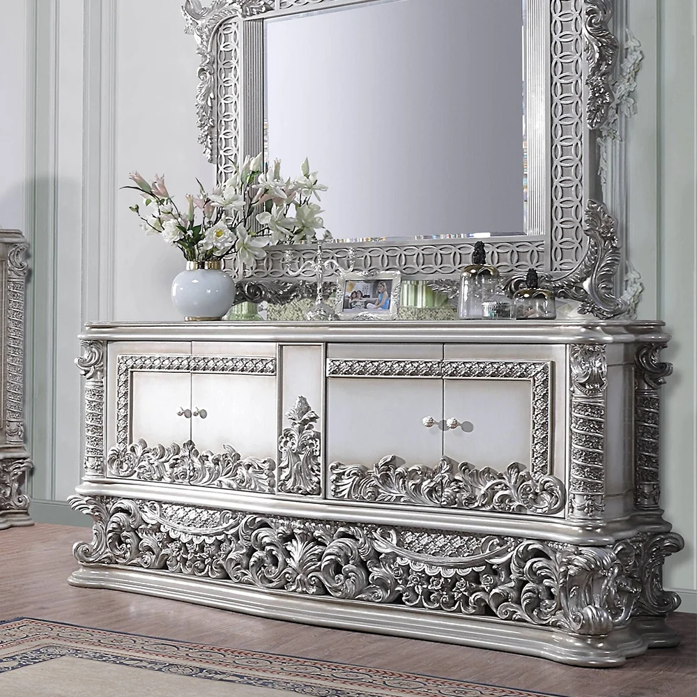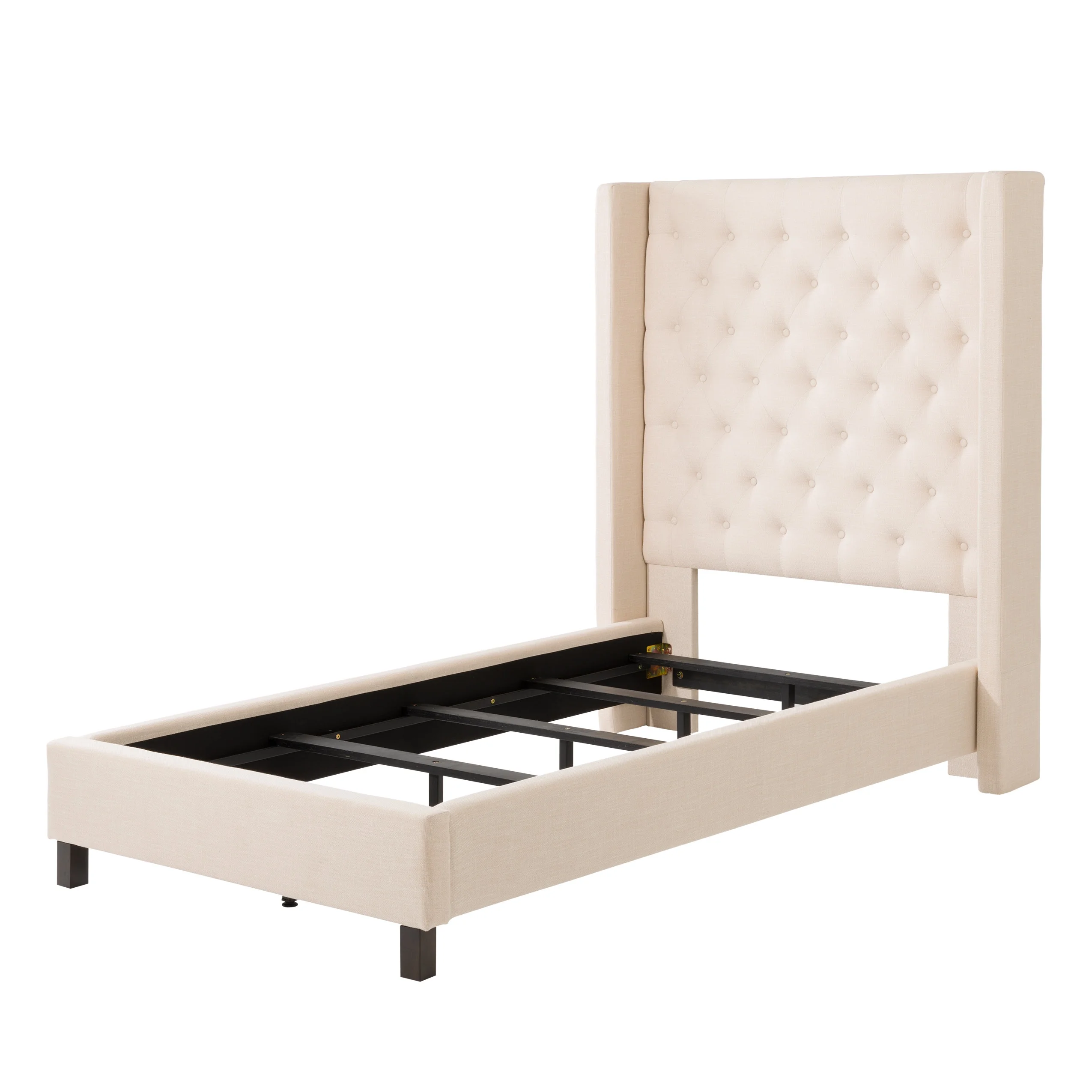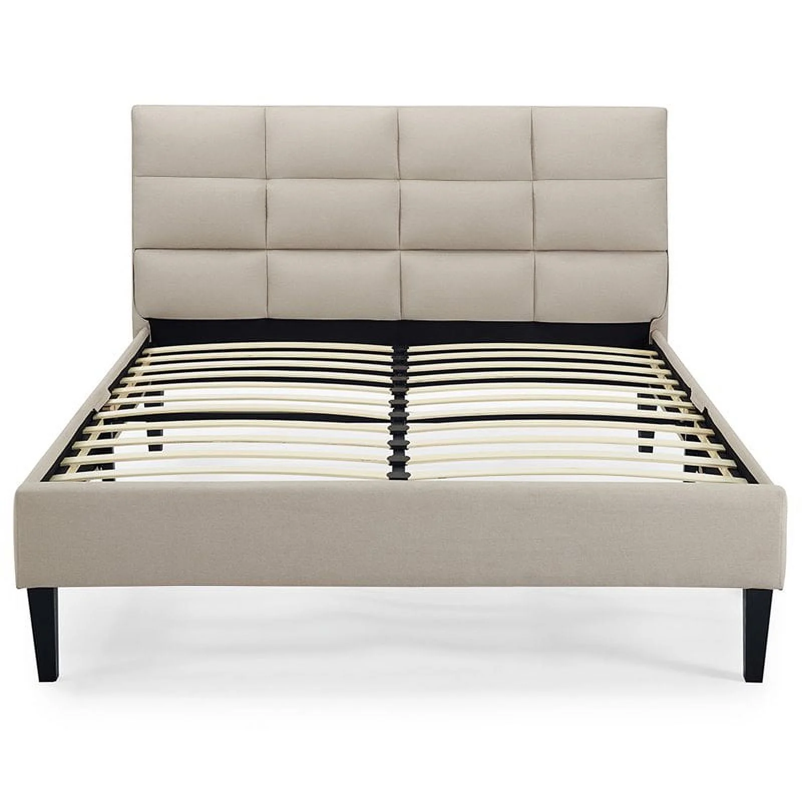 Upholstered Platform Bed Frame with 4 Drawers, Button Tufted Headboard & Footboard Beige - Queen