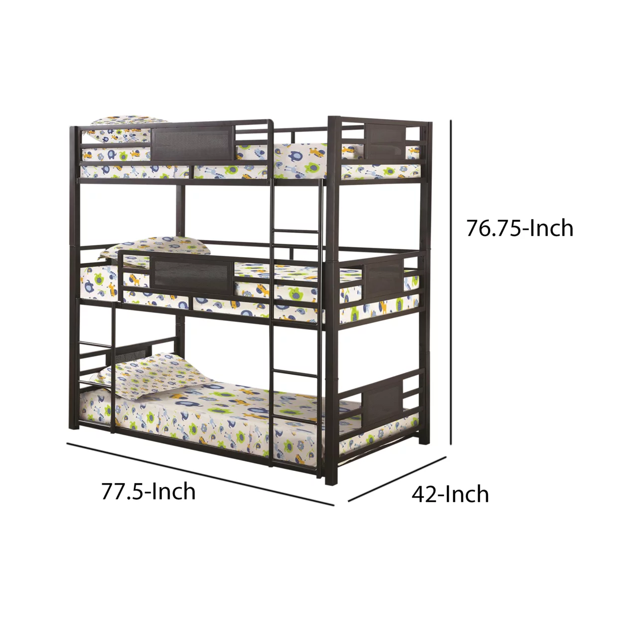 Triple Bunk Bed, Split into 3 Single Beds, 91.73"L x 77.95"W x 72.05"H
