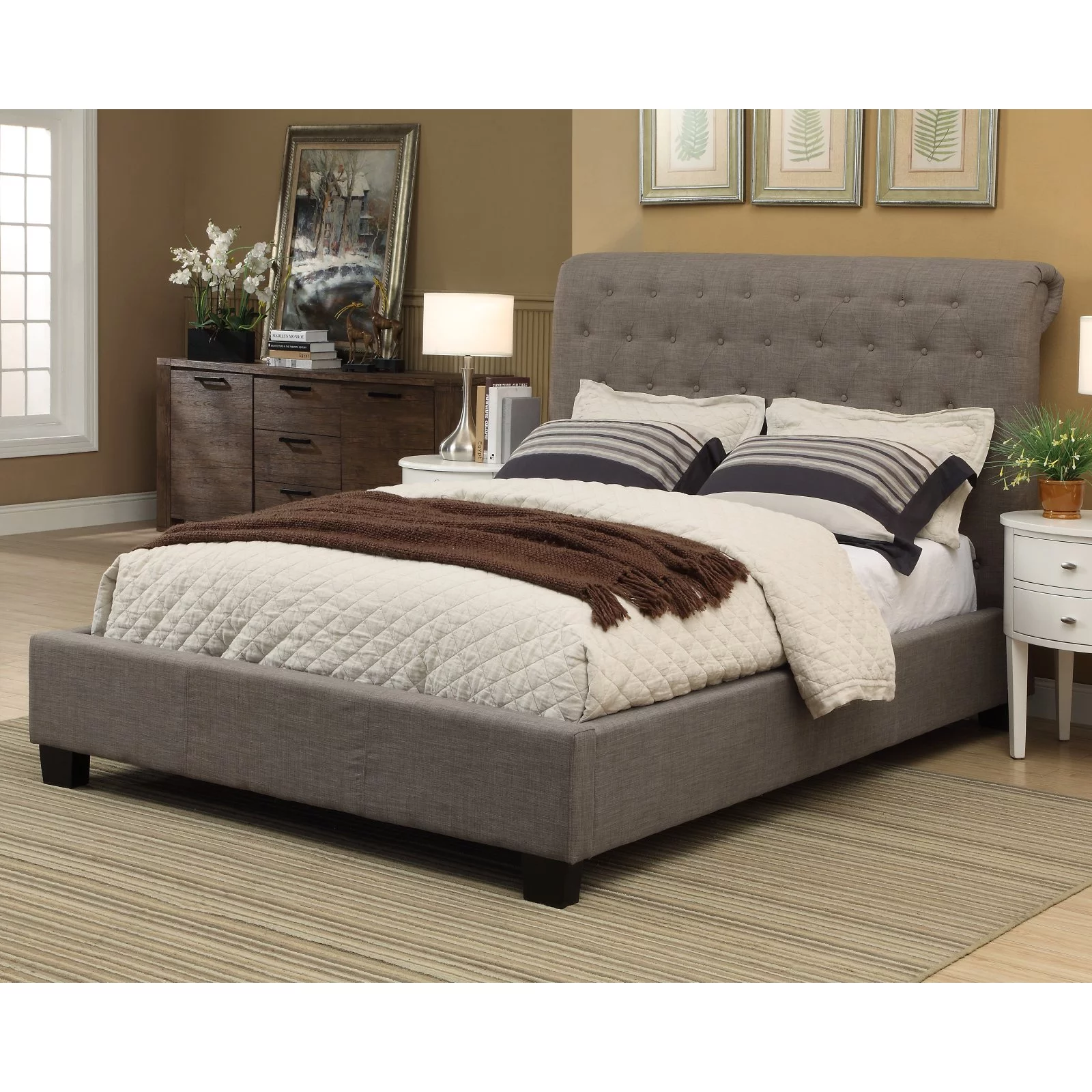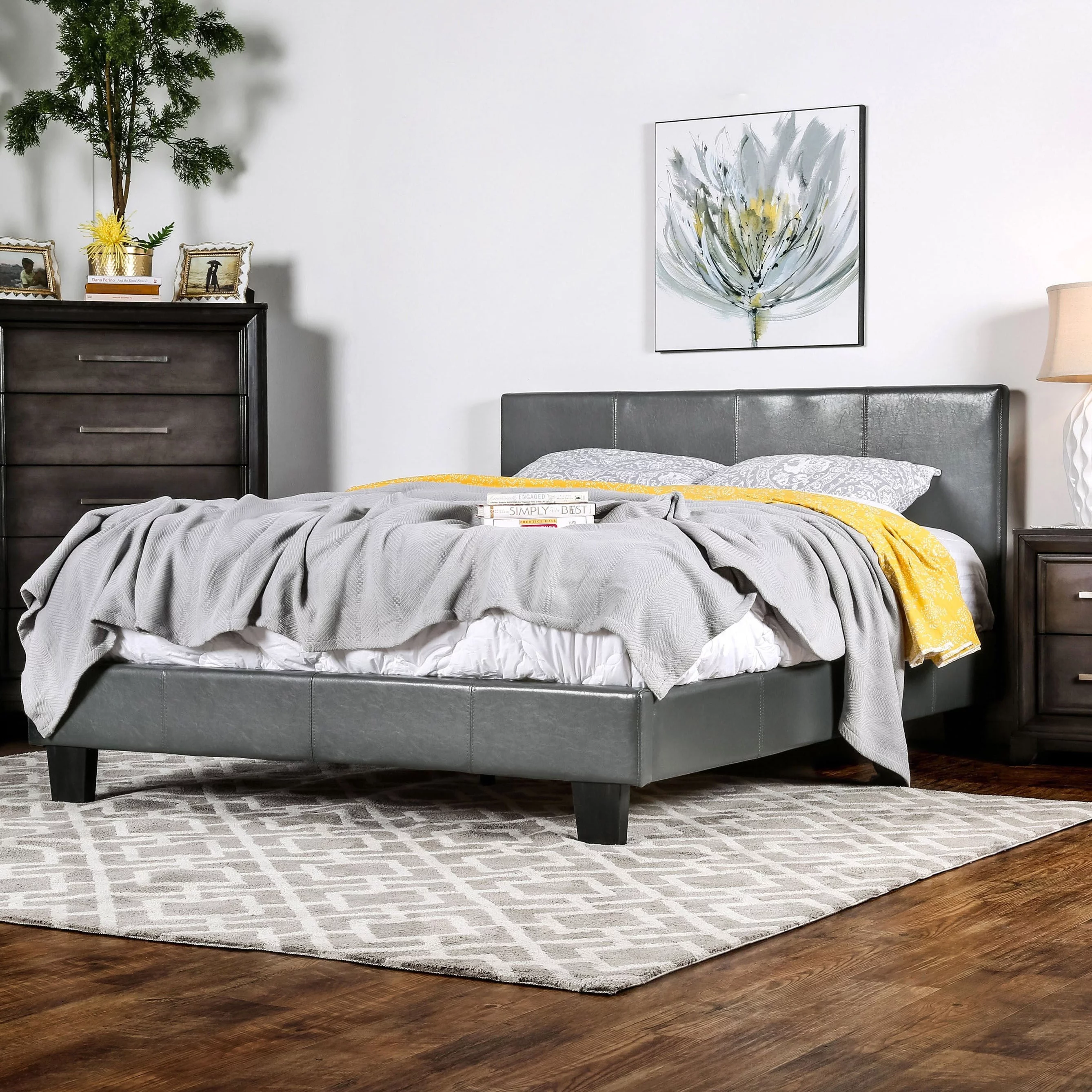 Furniture of America Frohm Fabric Button Tufted Full Platform Bed in Gray