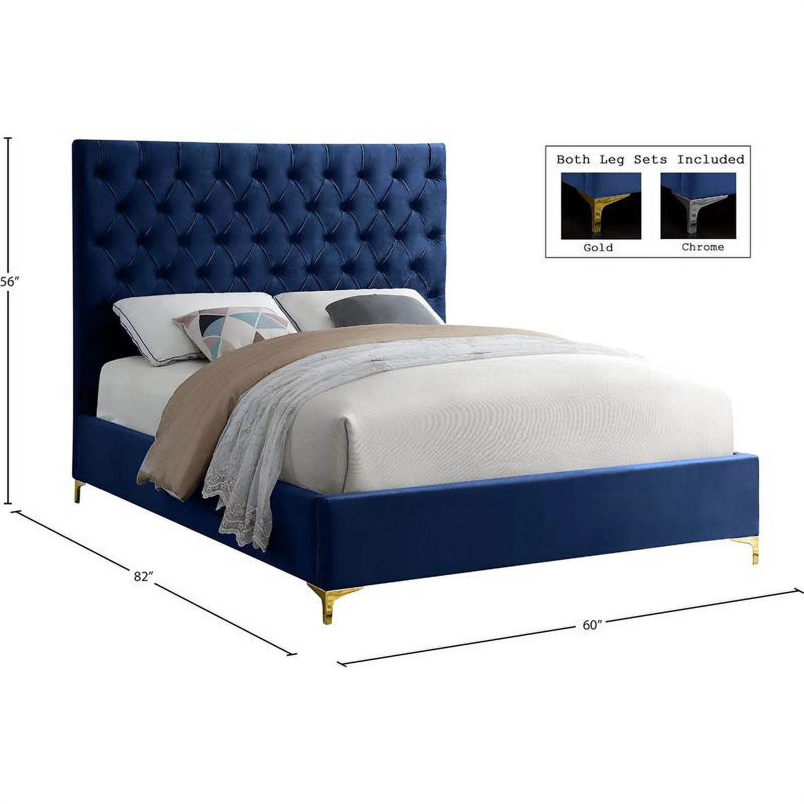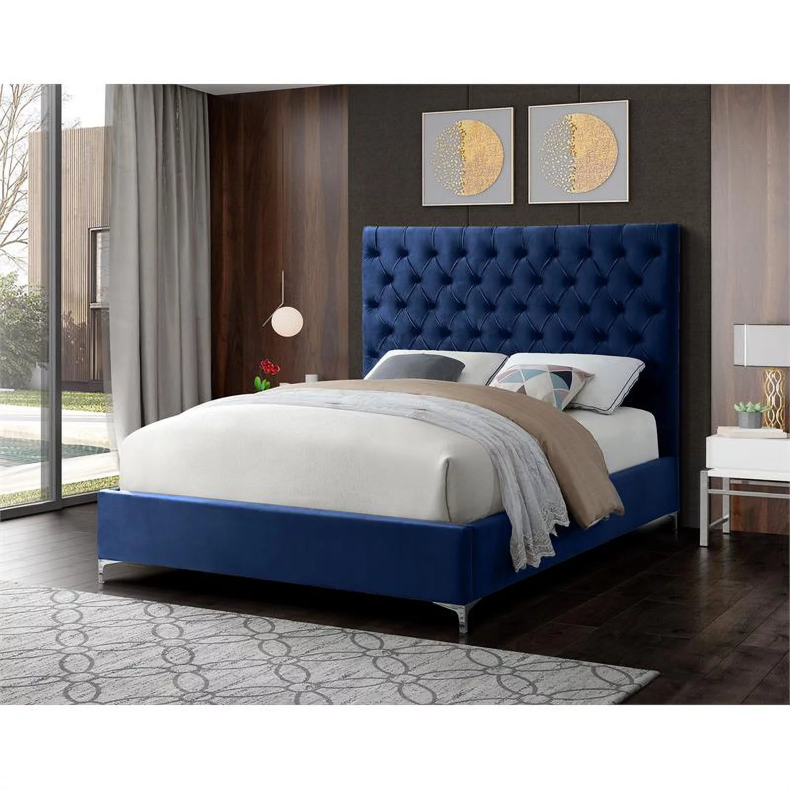 Furniture of America Frohm Fabric Button Tufted Queen Platform Bed in Blue