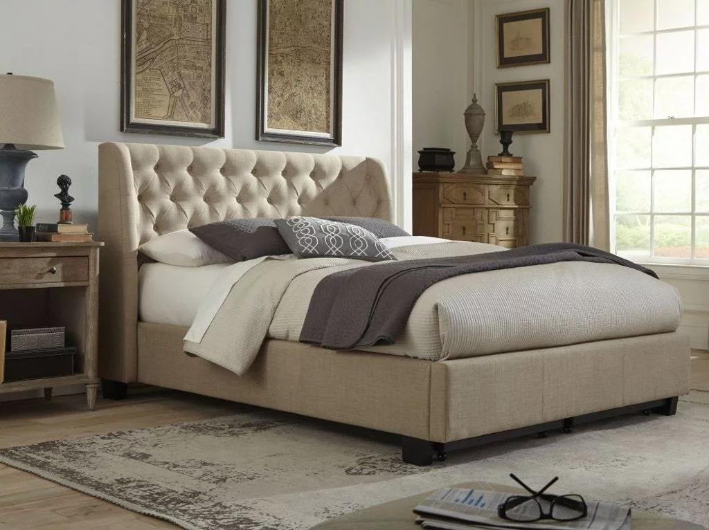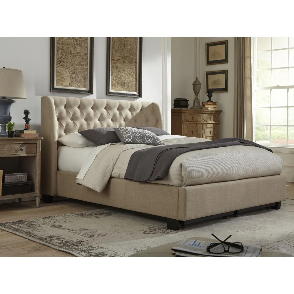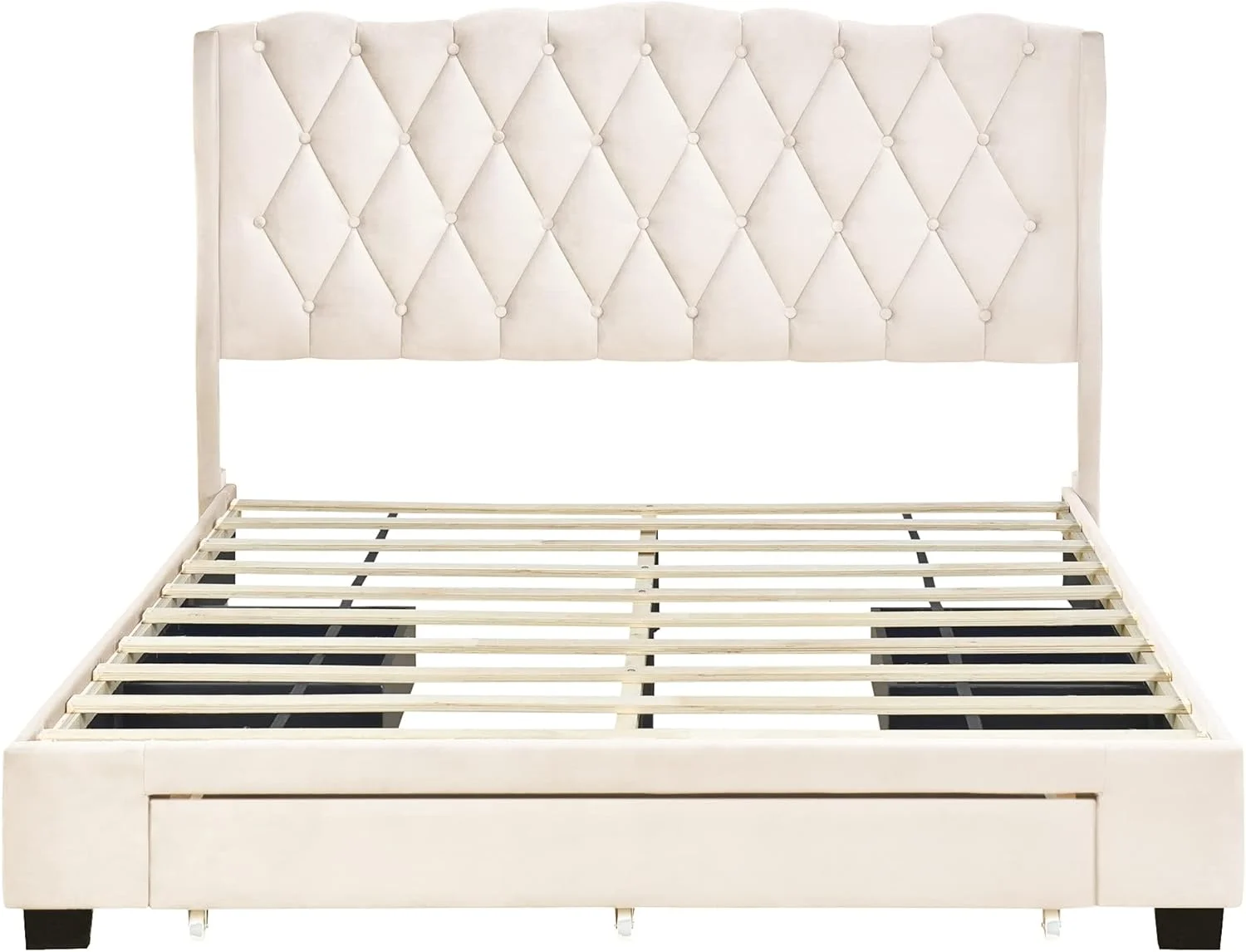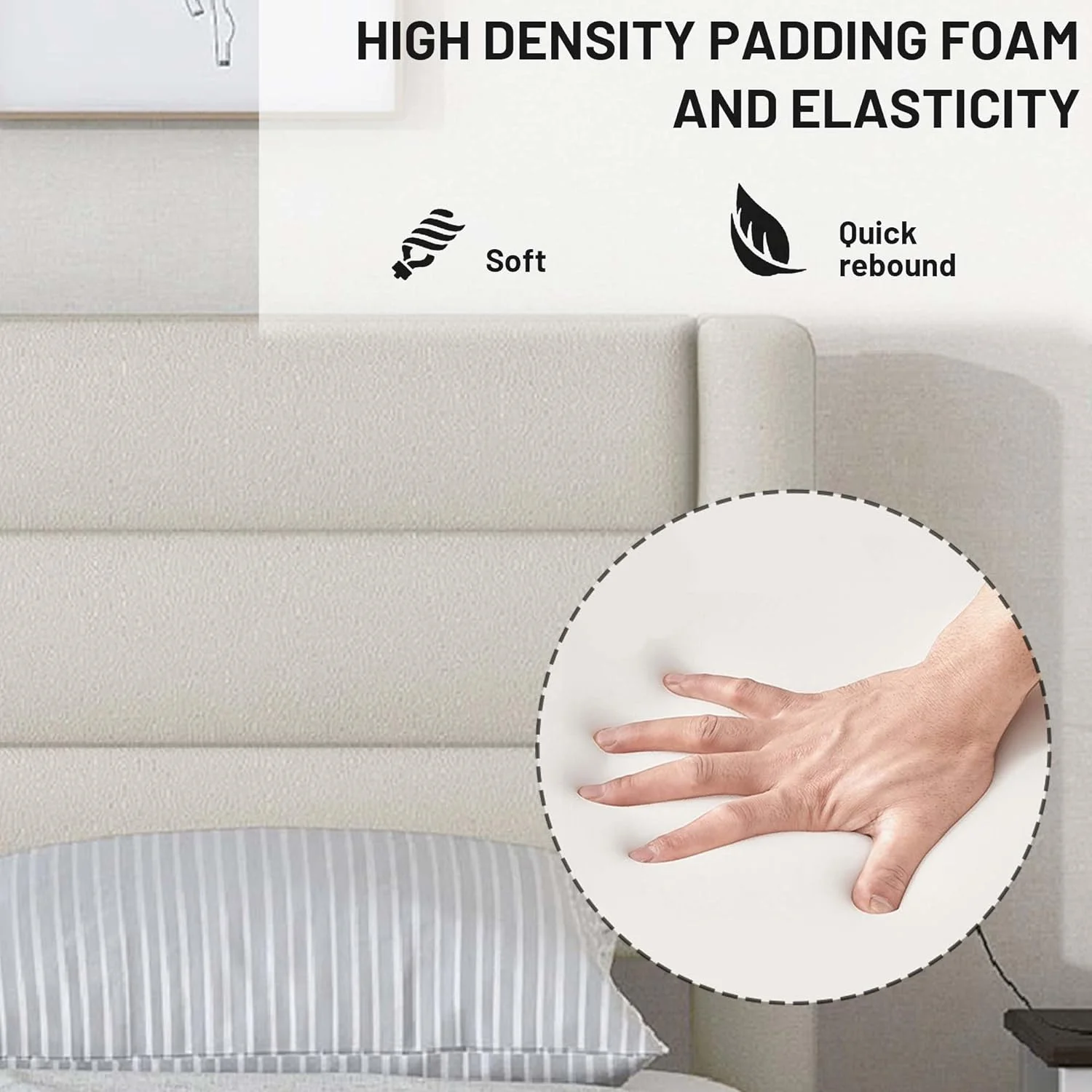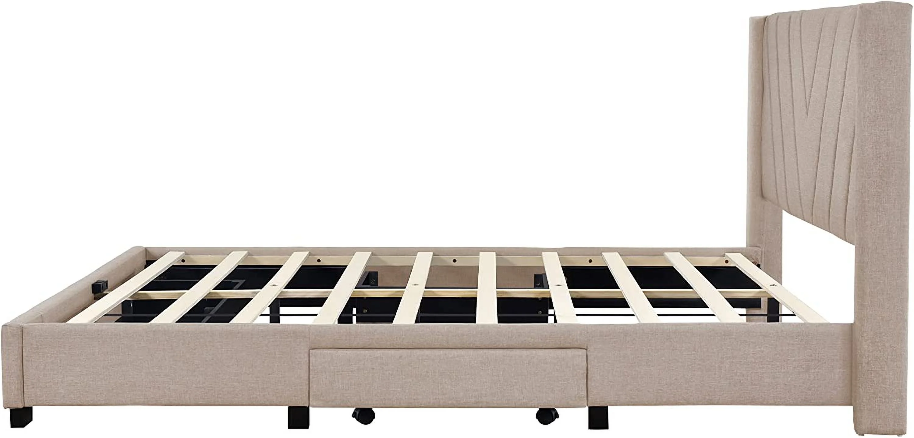 Quee Size Bed Frame Wih Sorage Headboard Ad Chargig Saio, Upholsered Plaform Bed Wih 3 Drawers, o Box Sprig eeded, Beige