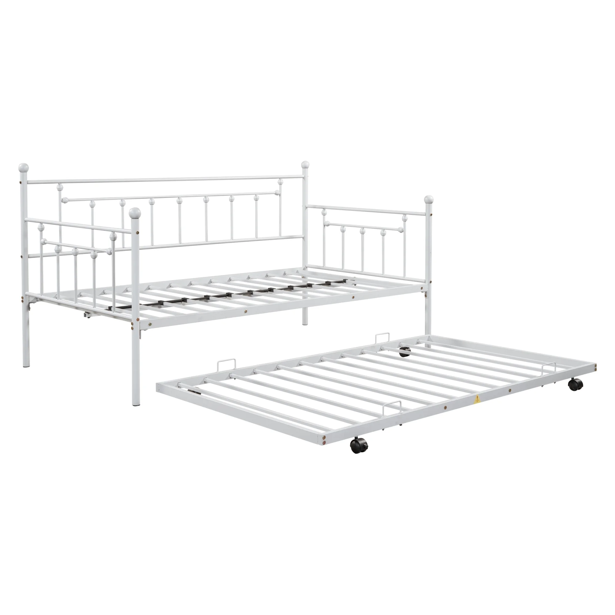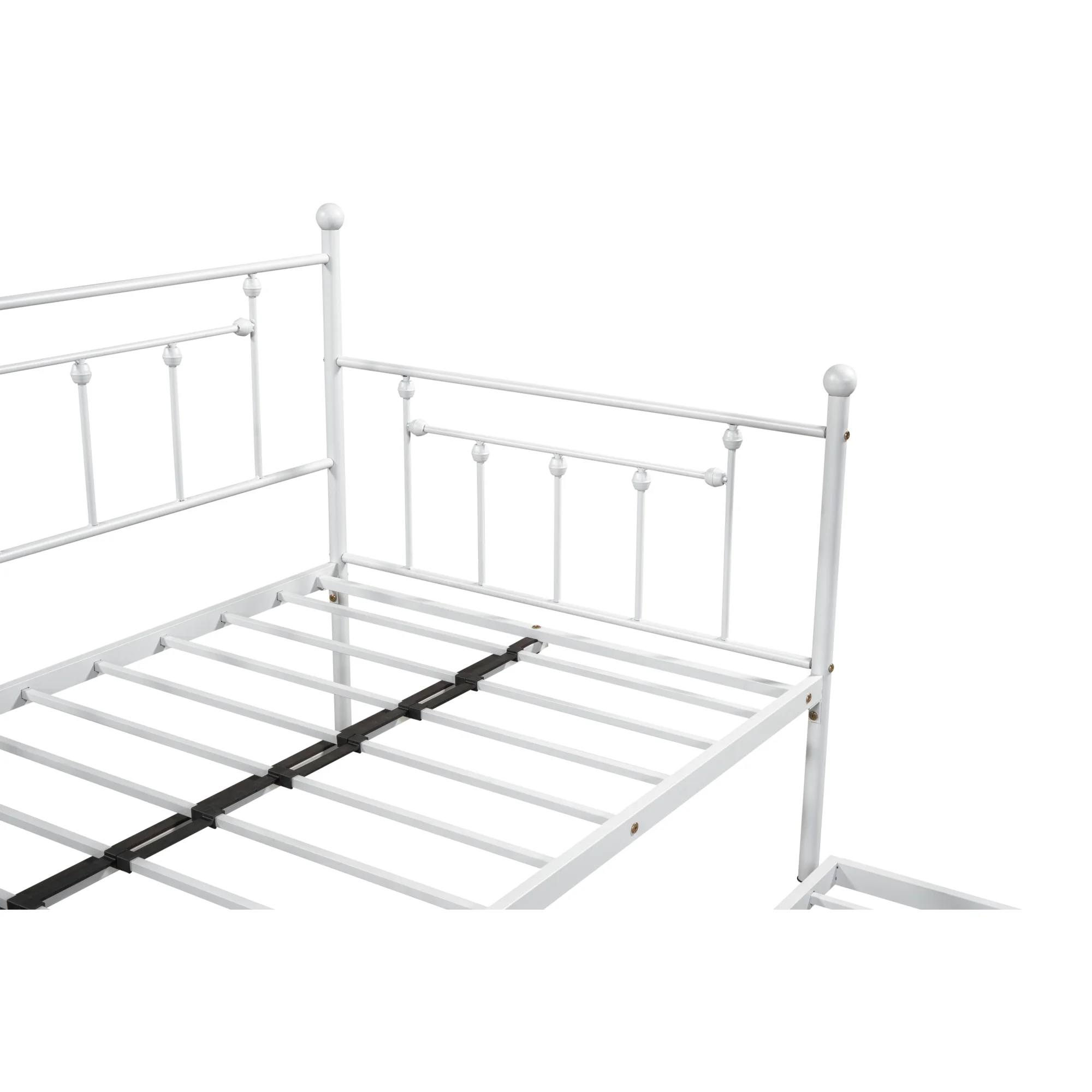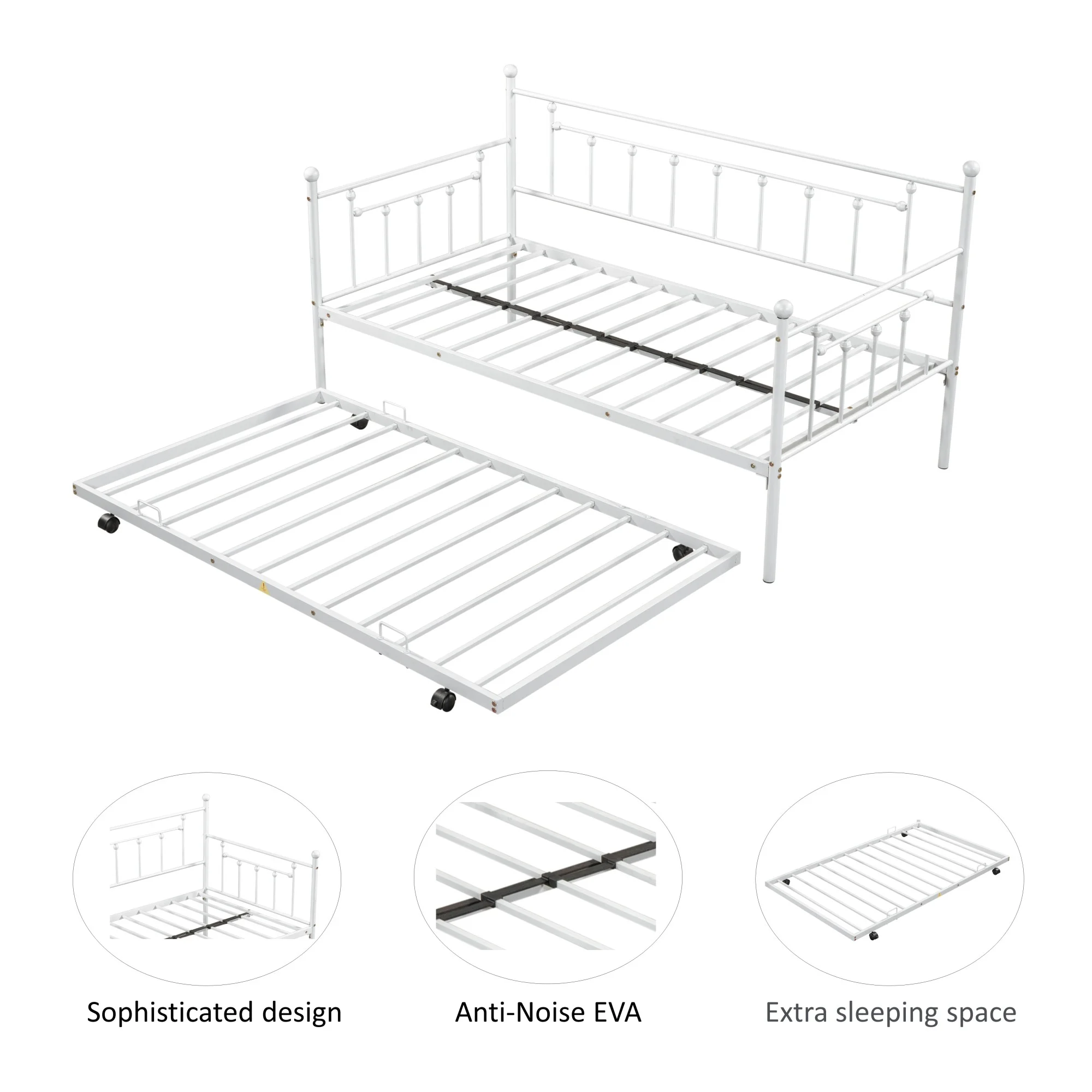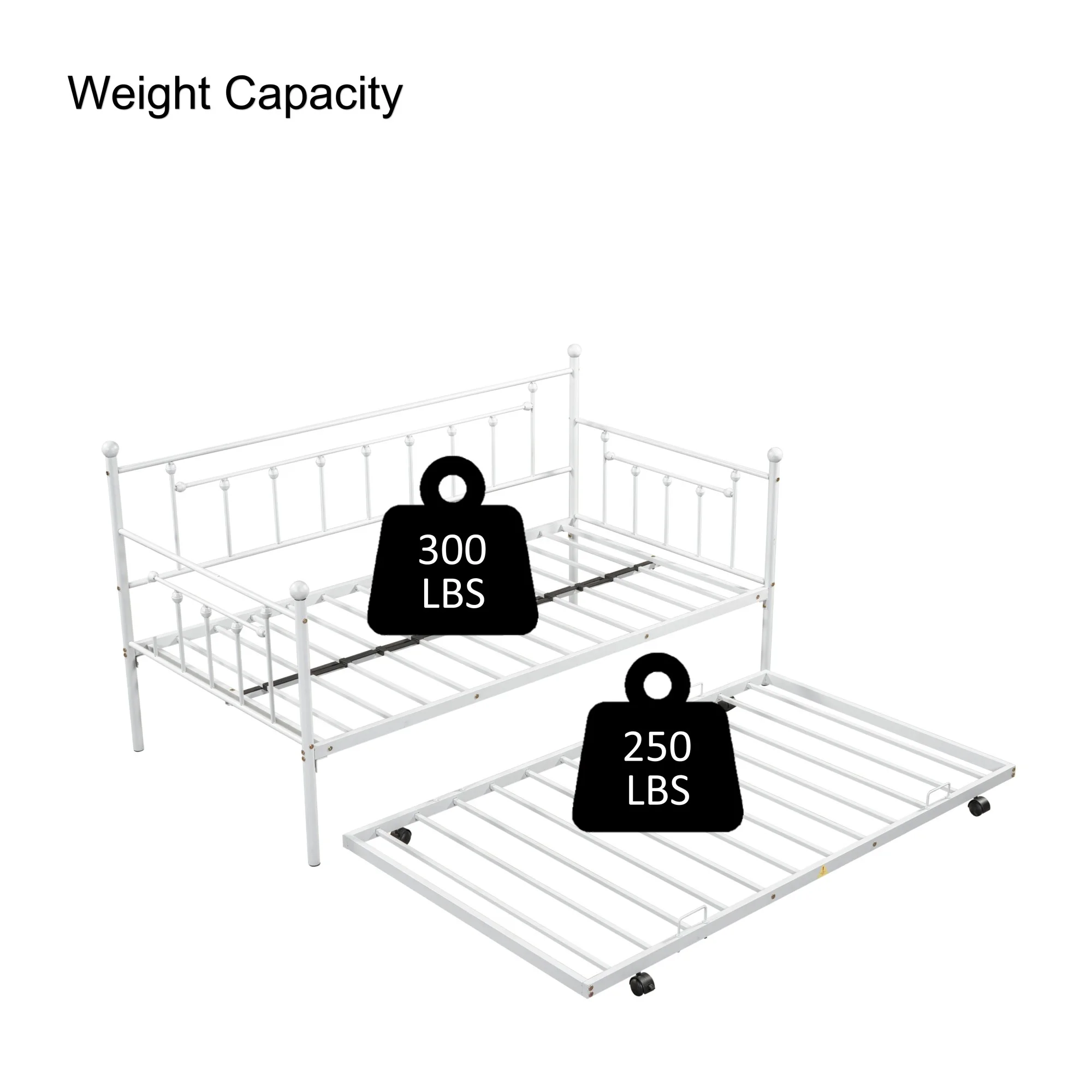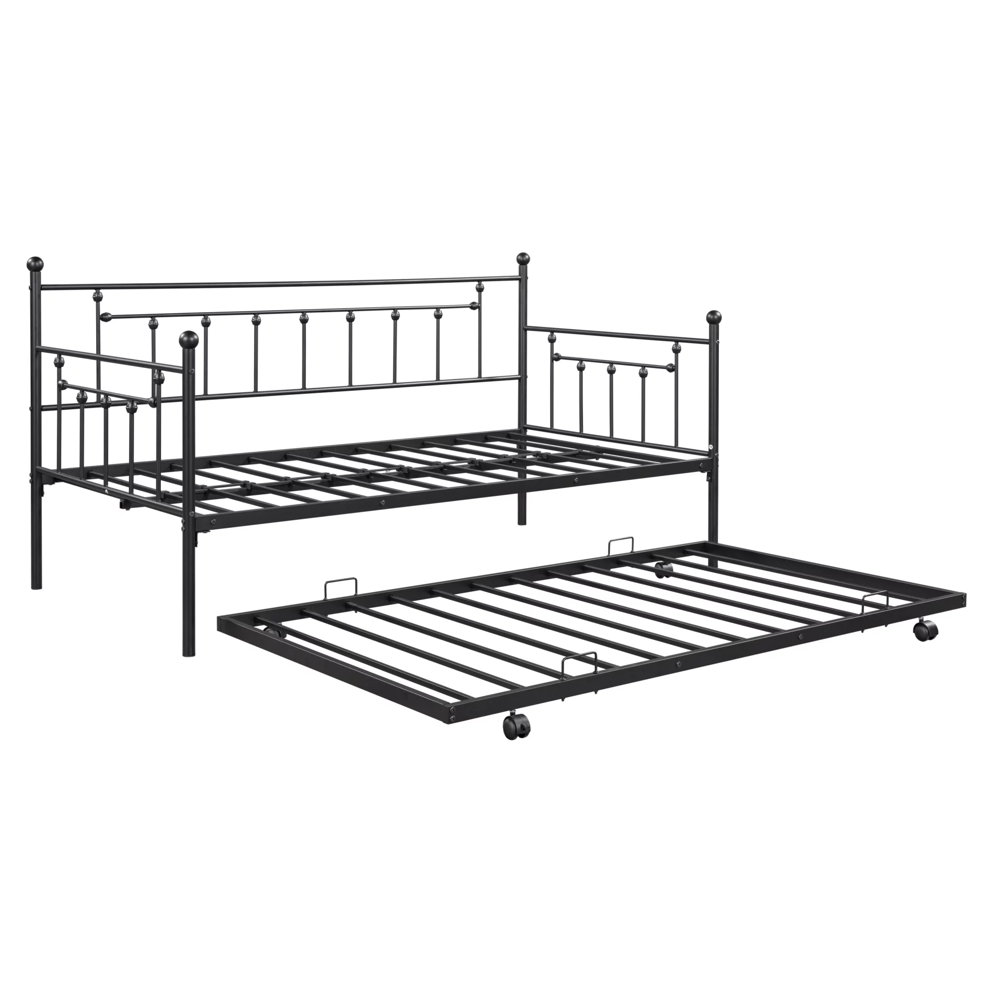 "Heavy-Duty Twin-Size Metal Daybed Frame with Trundle, Steel Slat Support, Headboard, No Box Spring Required, Black"
