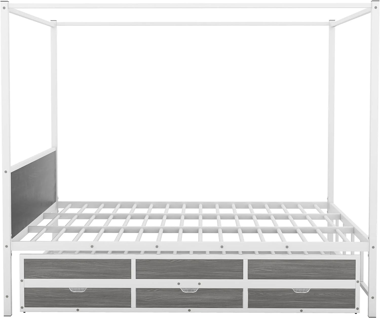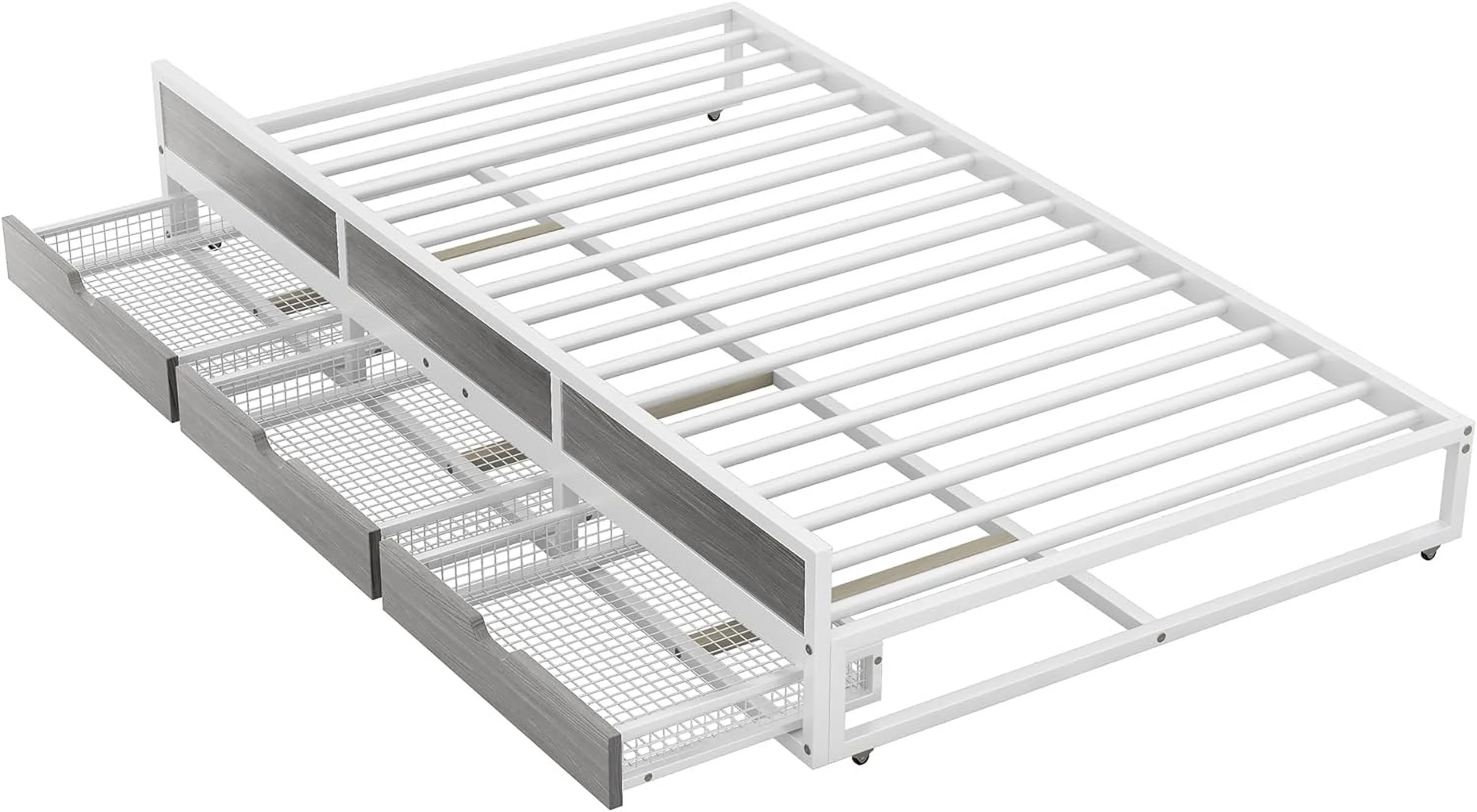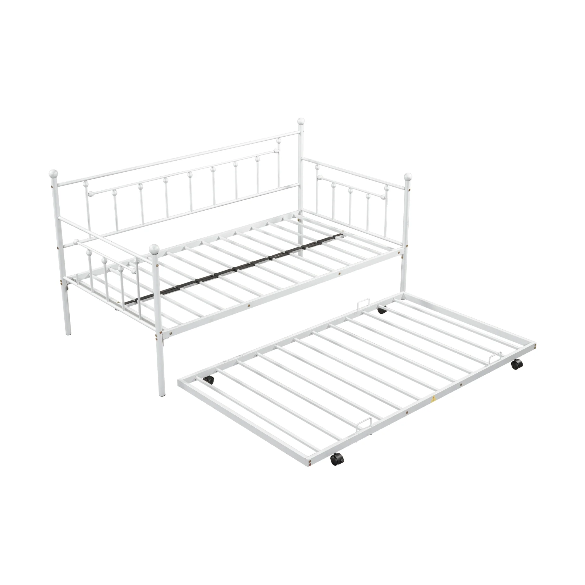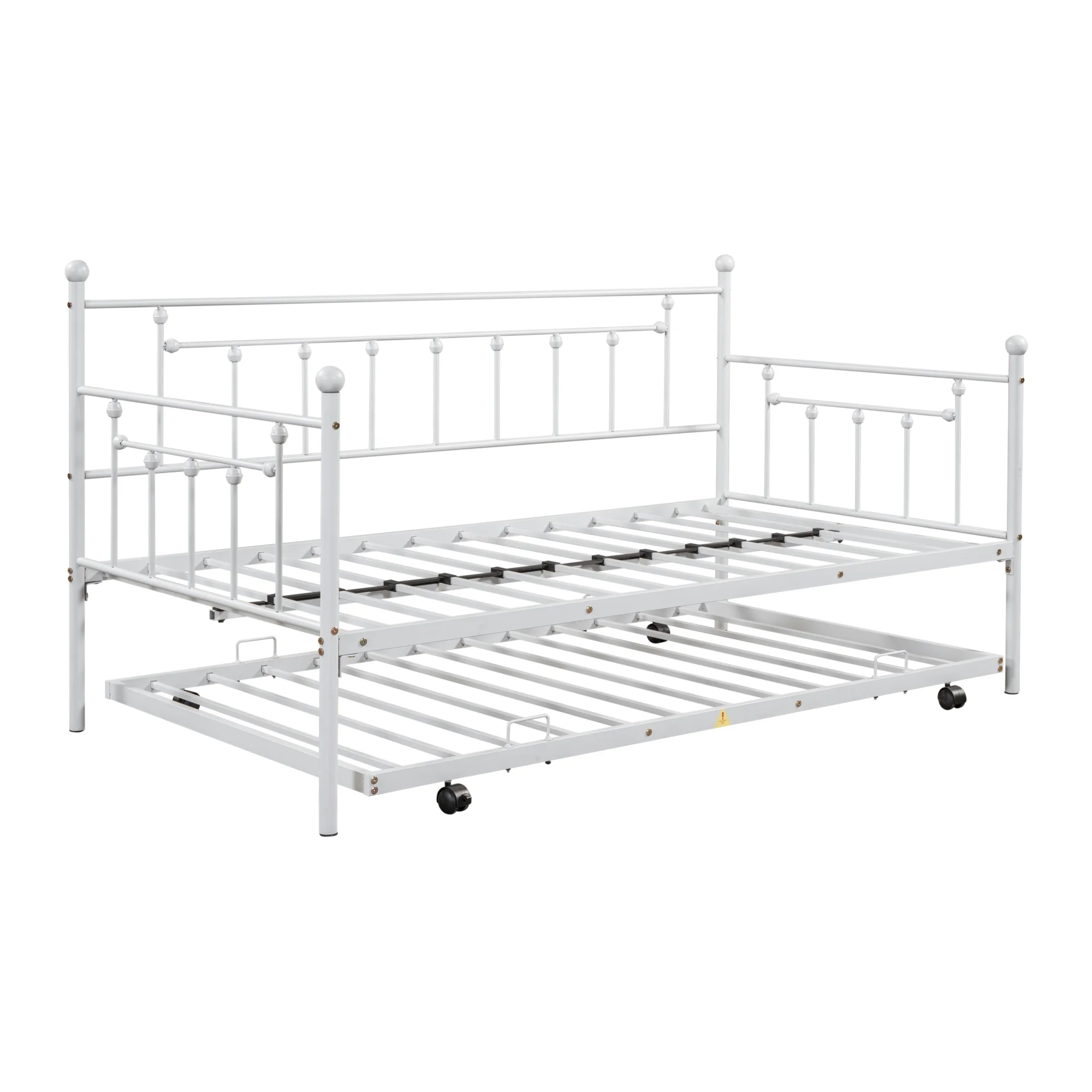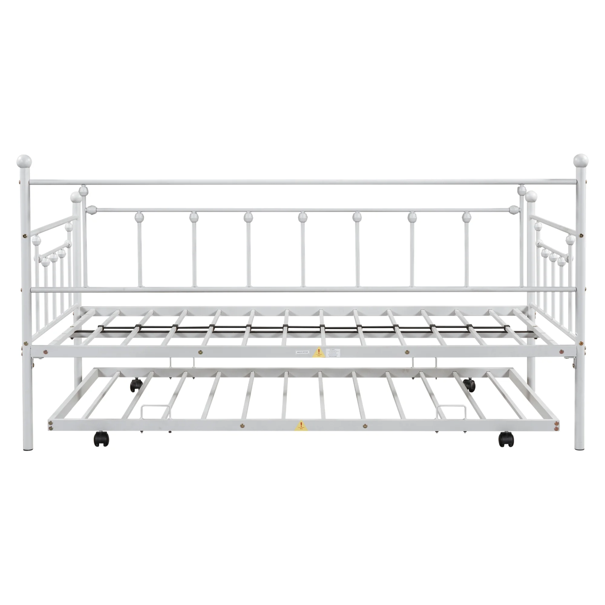 "Heavy-Duty Twin-Size Metal Daybed Frame with Trundle, Steel Slat Support, Headboard, No Box Spring Required, Black"