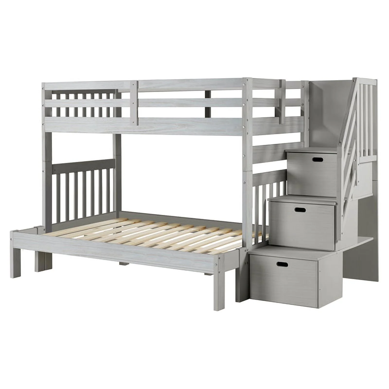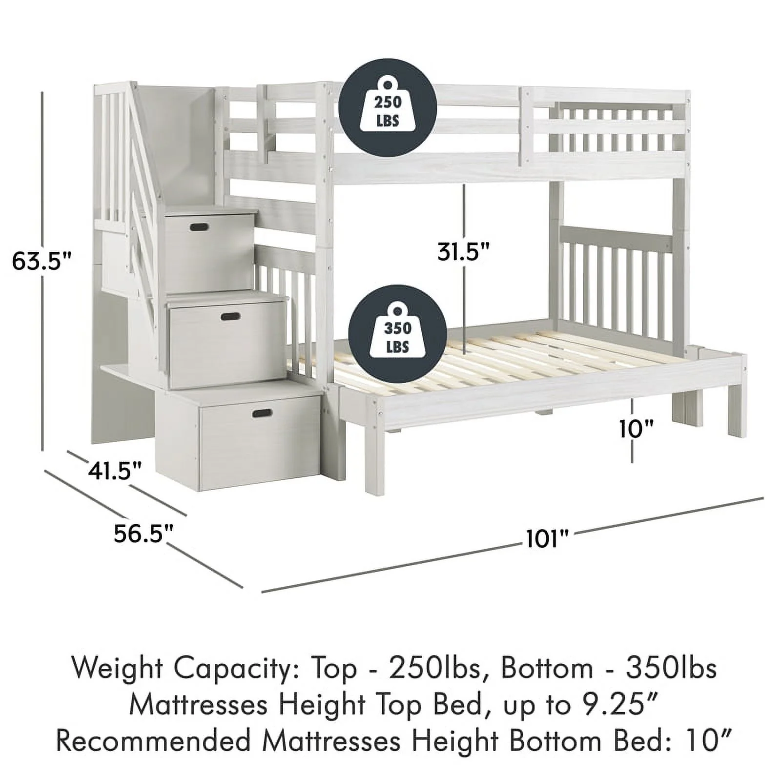 My Bed Now Olympus Twin-over-Full Solid Wood Bunk Bed with Staircase in White