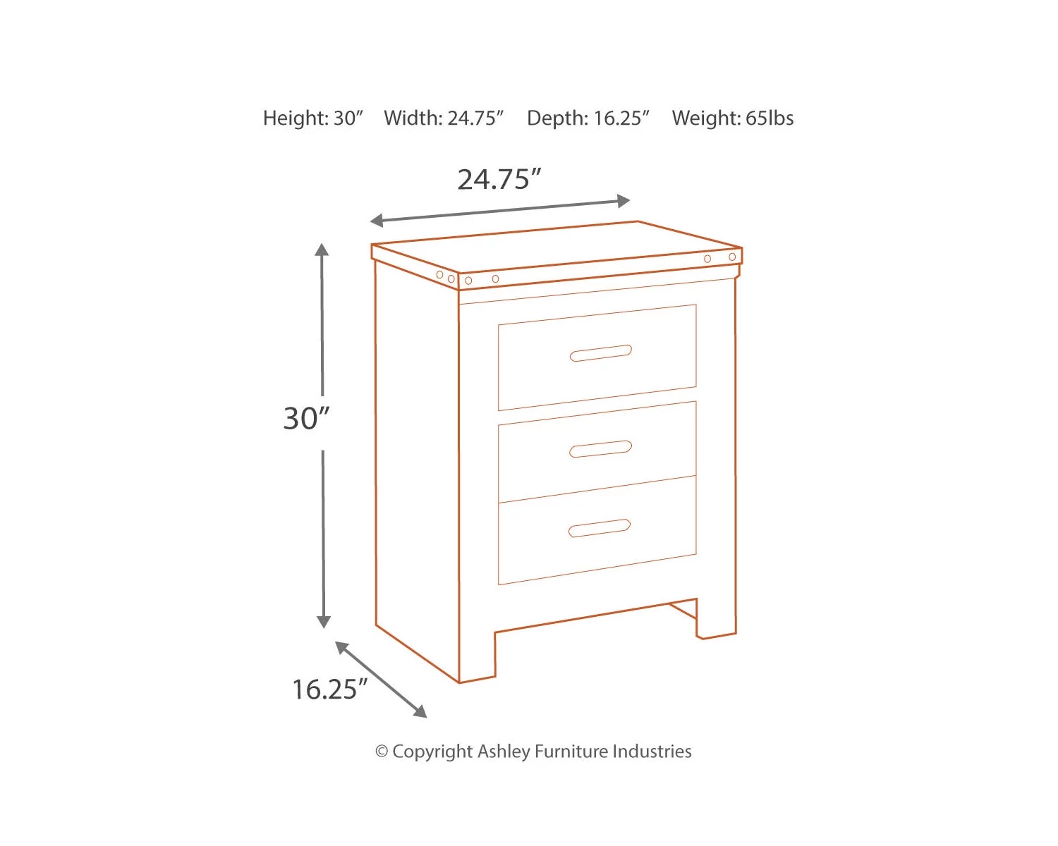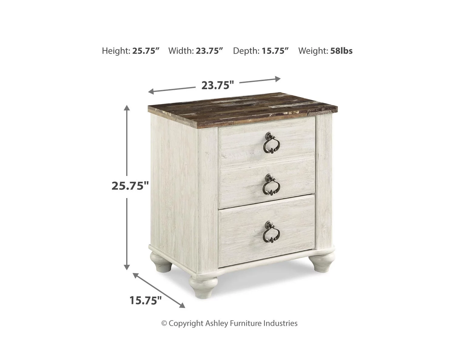 Signature Design by Ashley Willowton Farmhouse 2 Drawer Nightstand with USB Charging Ports, Whitewash