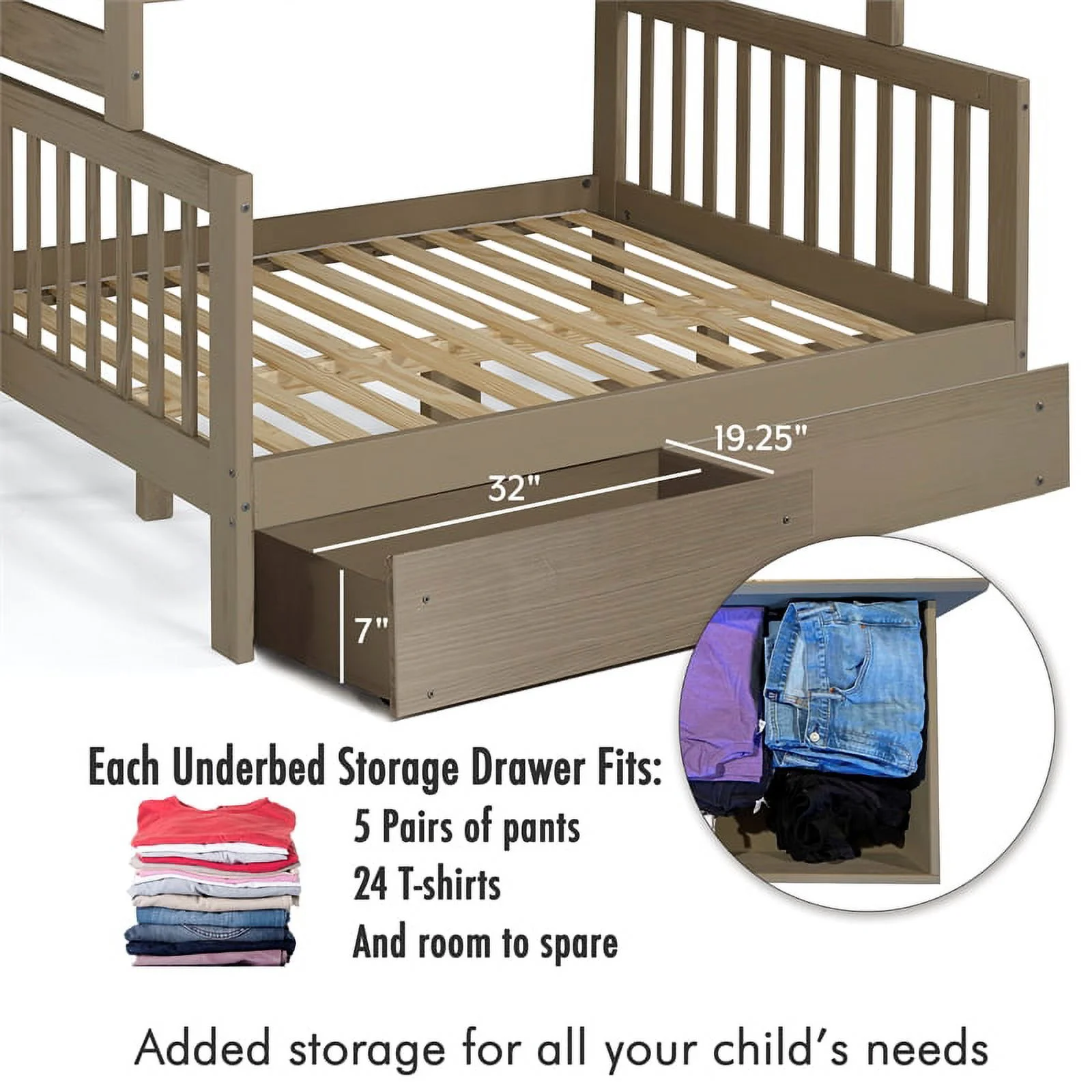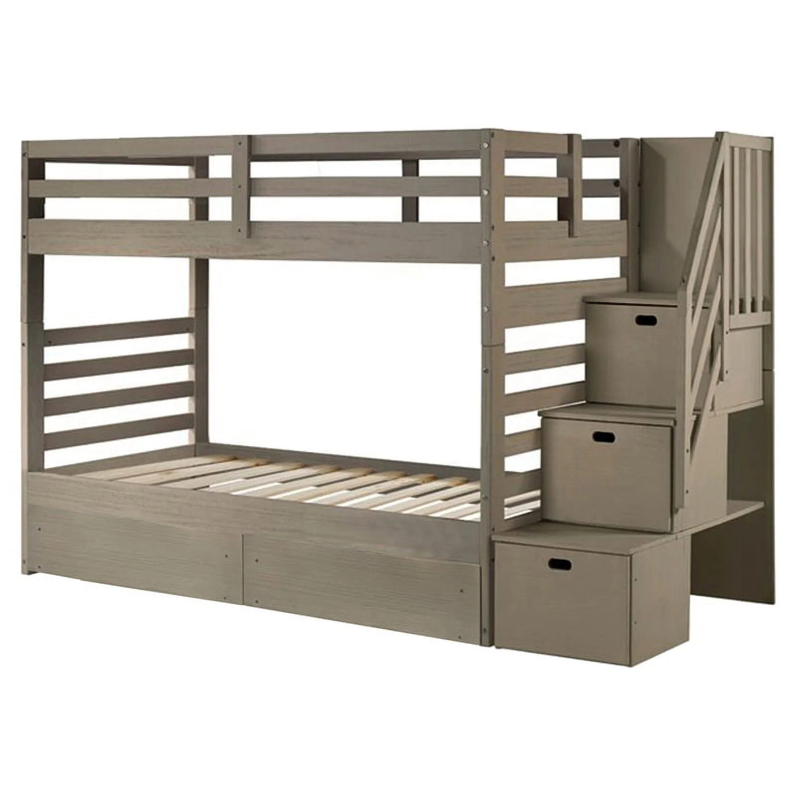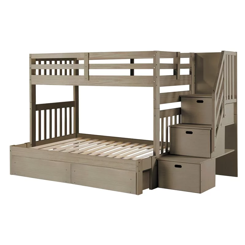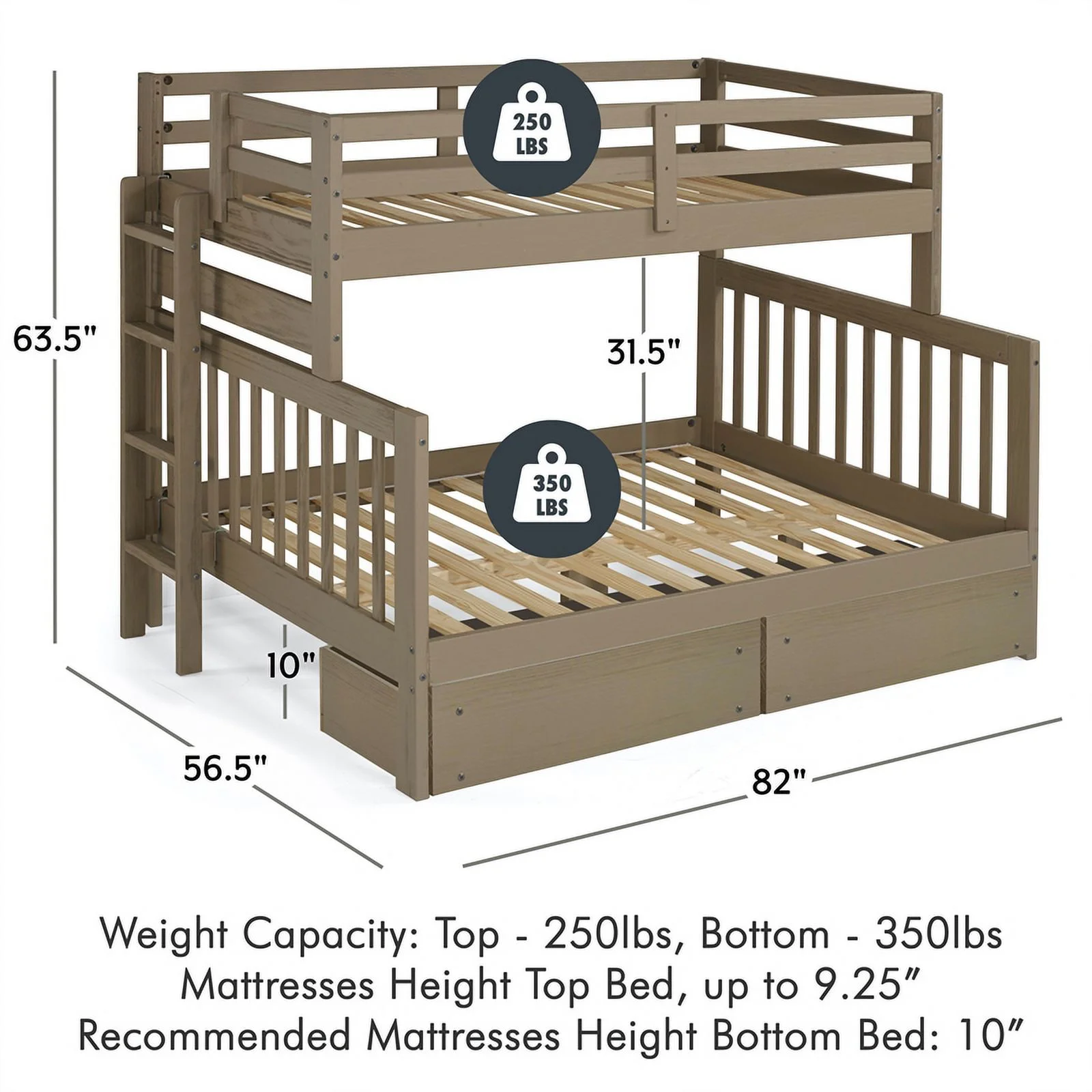 Maxwood Furniture, Inc. Max and Lily Farmhouse Twin over Full Bunk Bed with Storage Drawers Driftwood