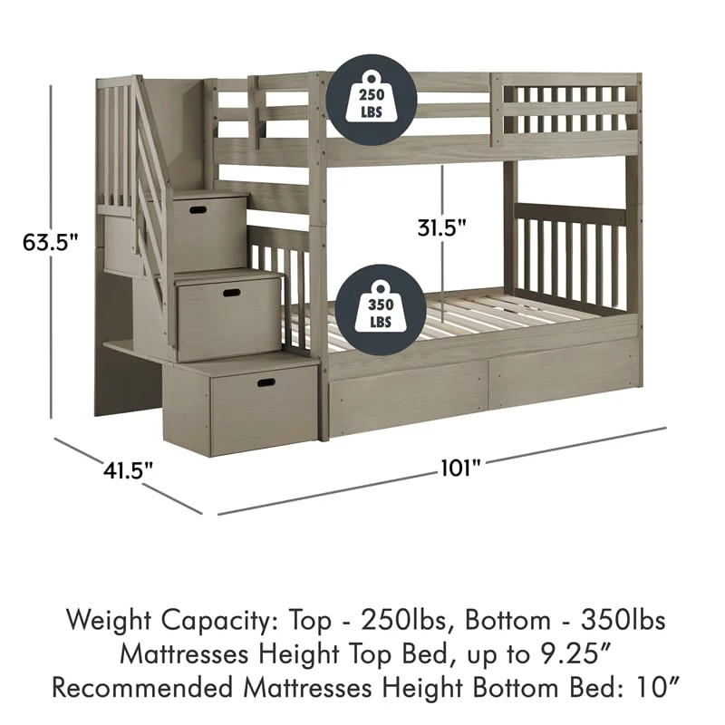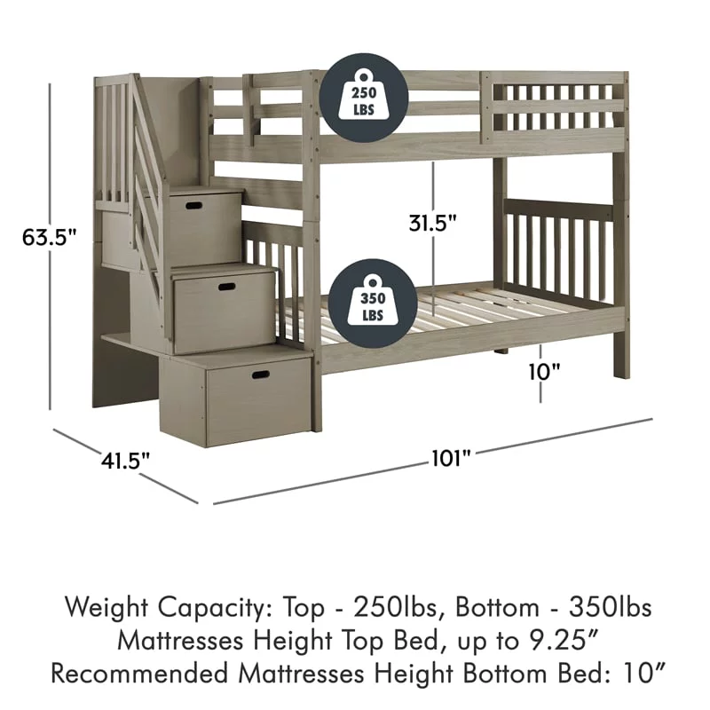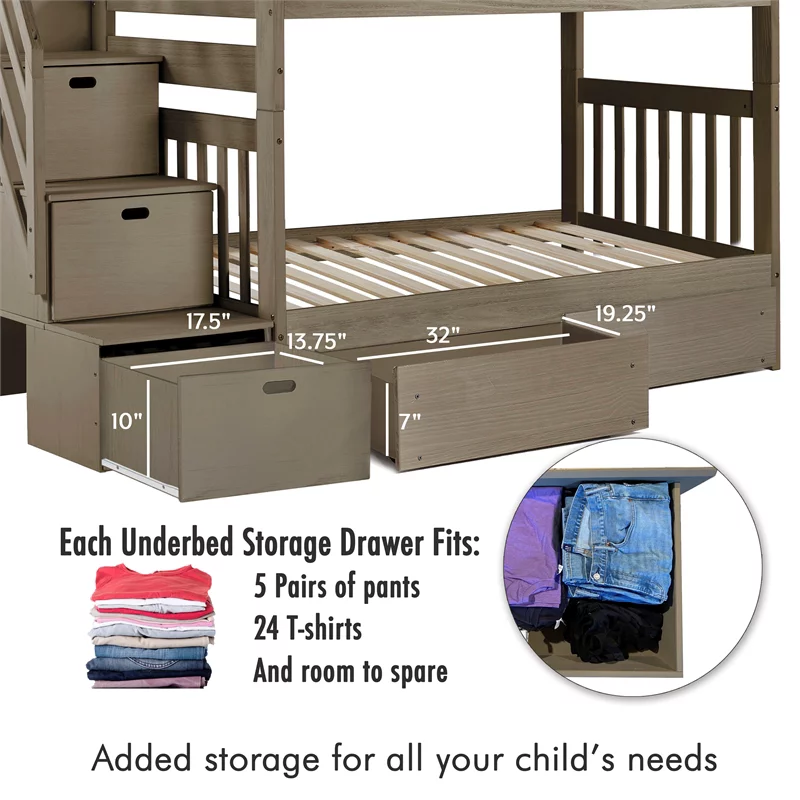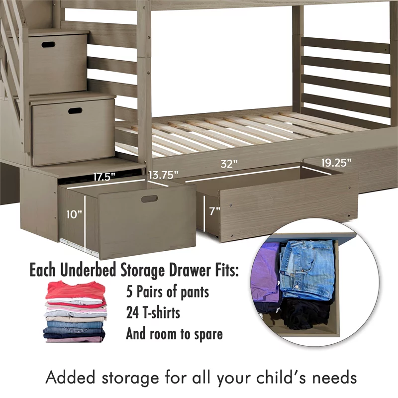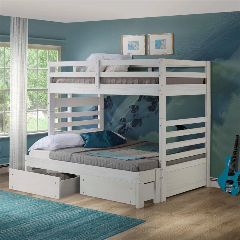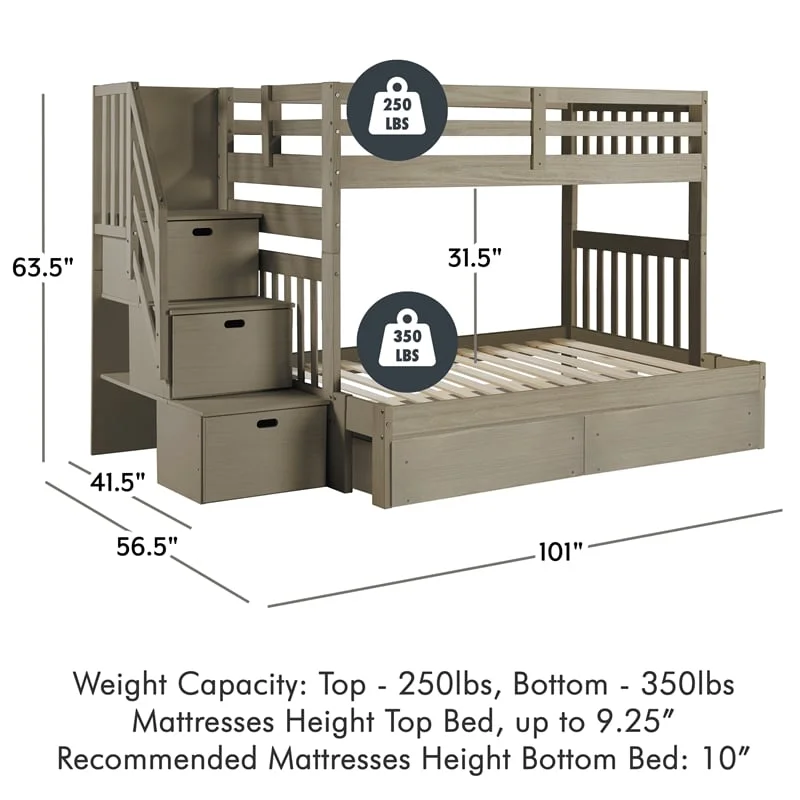 Maxwood Furniture, Inc. Max and Lily Farmhouse Twin over Full Bunk Bed with Storage Drawers Driftwood