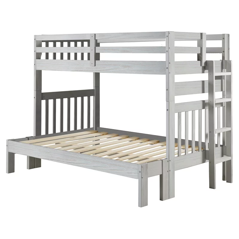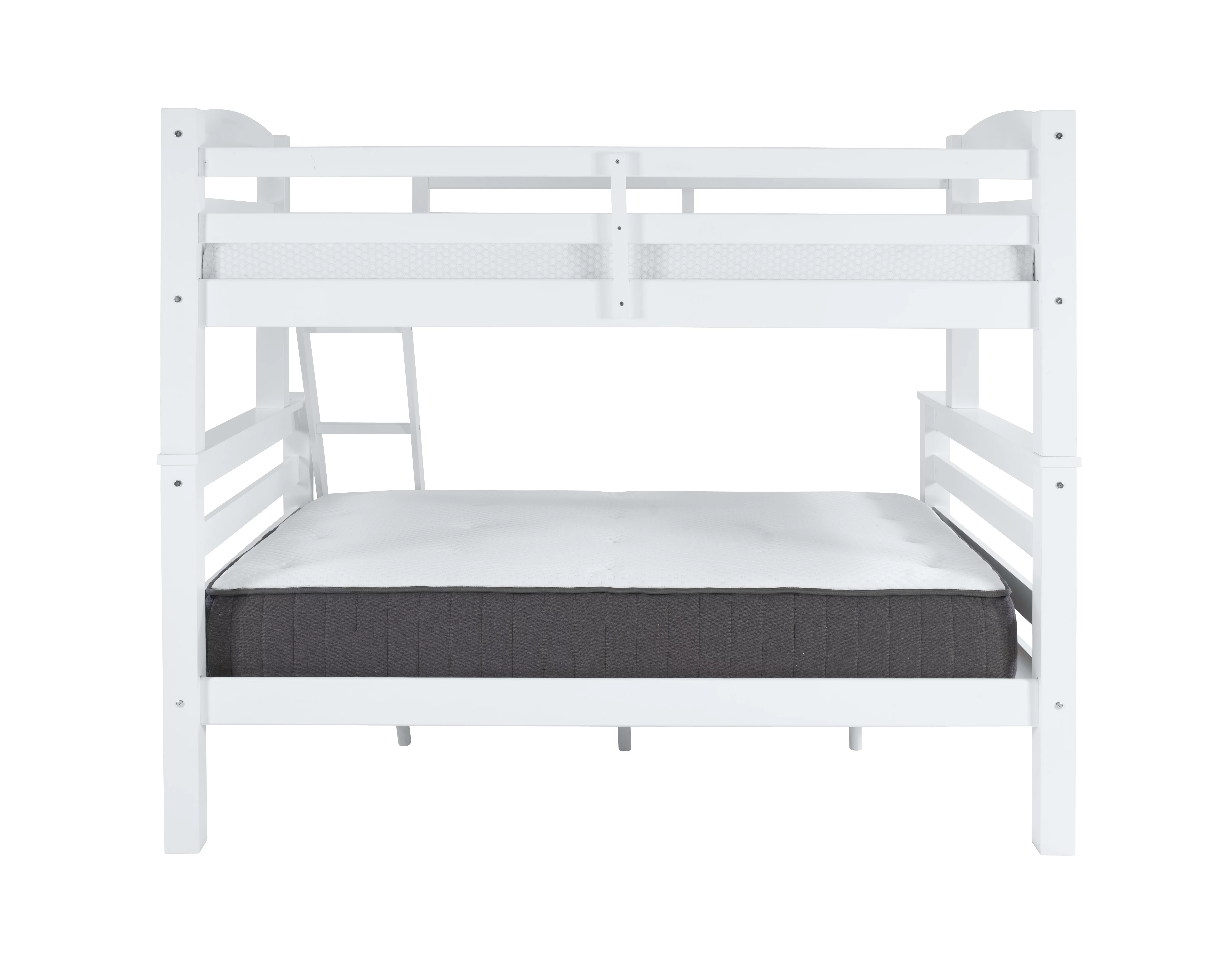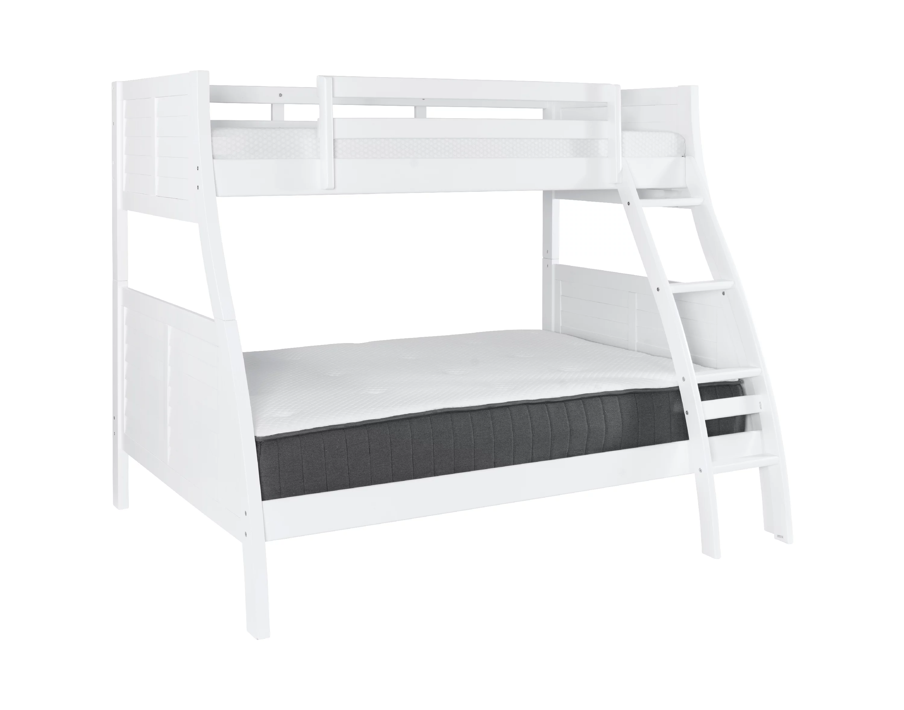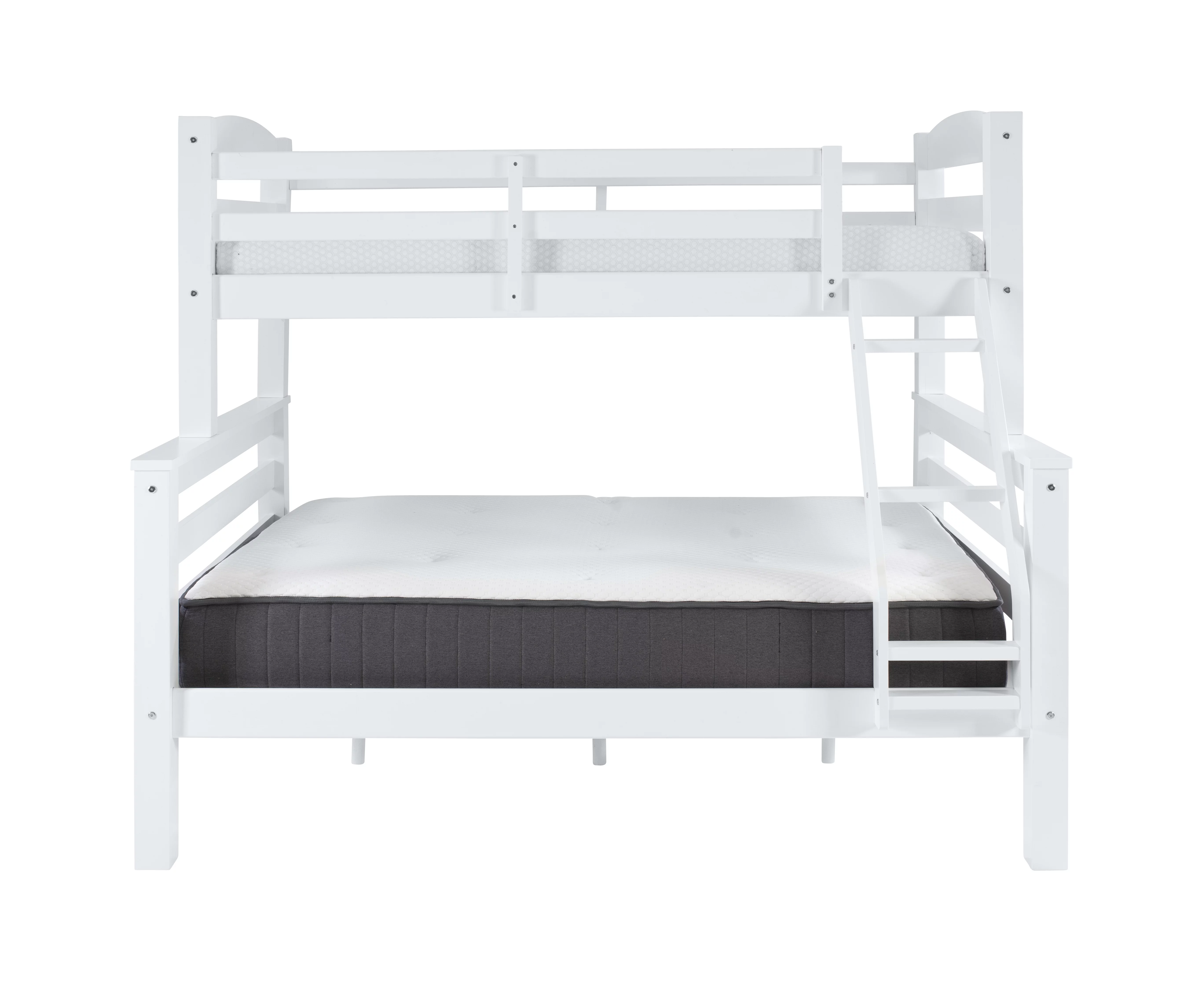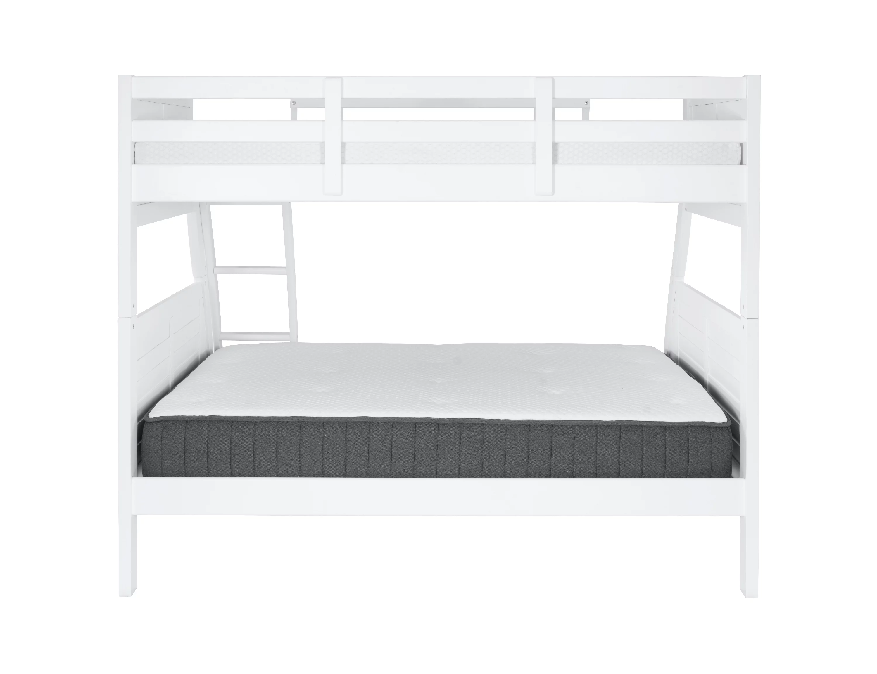 My Bed Now Olympus Twin-over-Full Solid Wood Bunk Bed with Ladder in White Mist