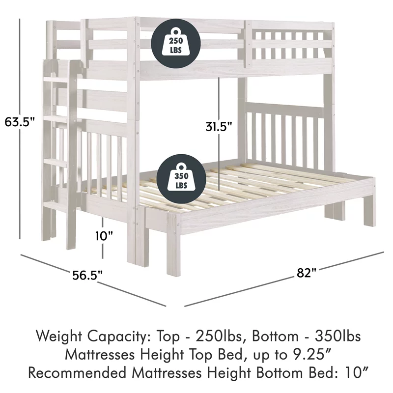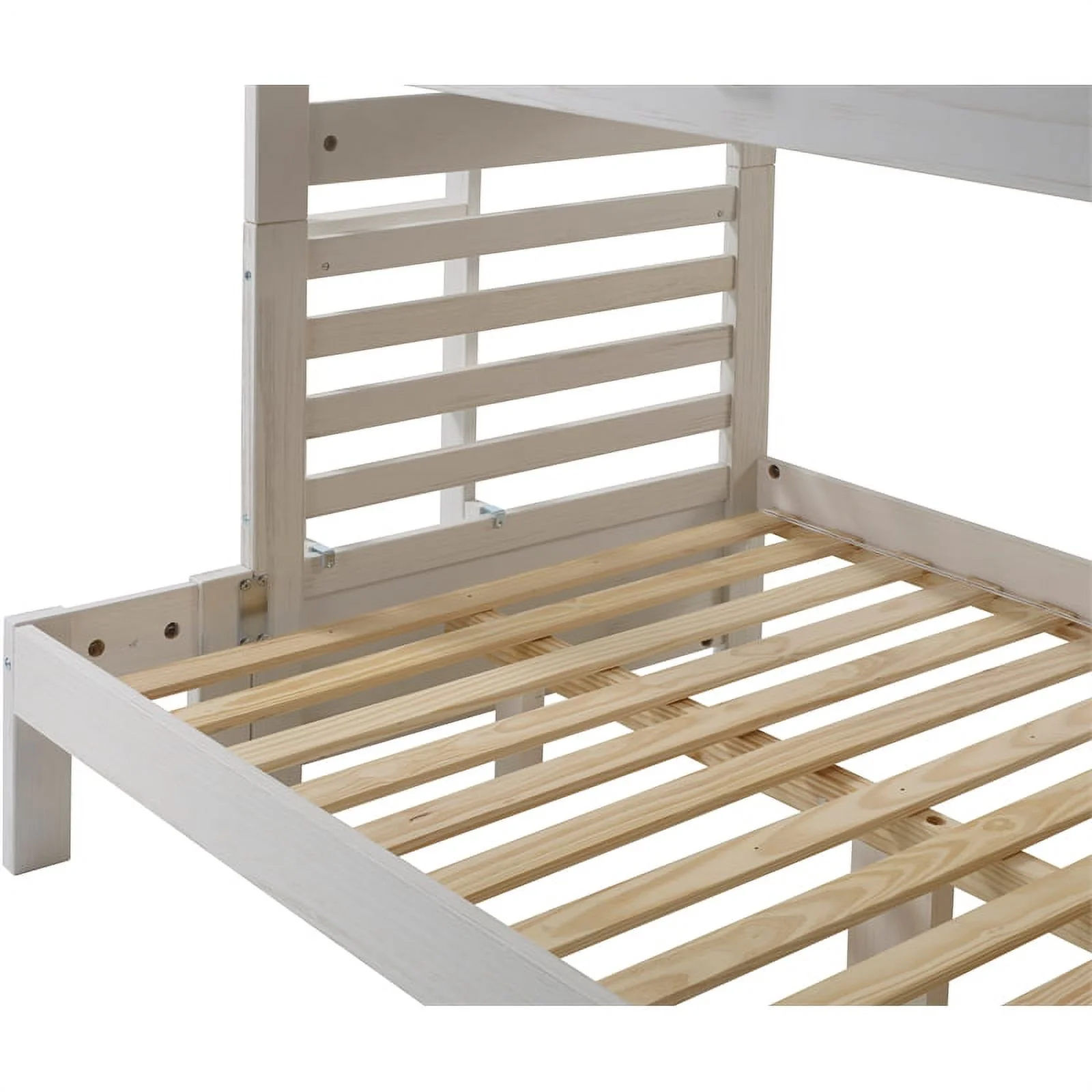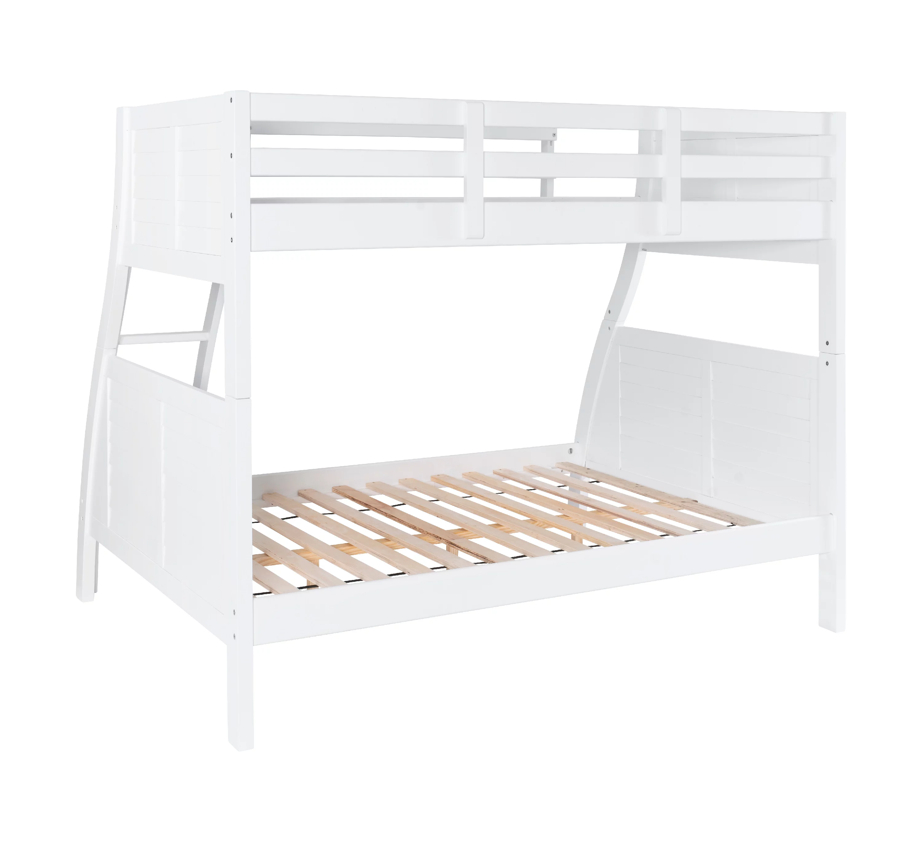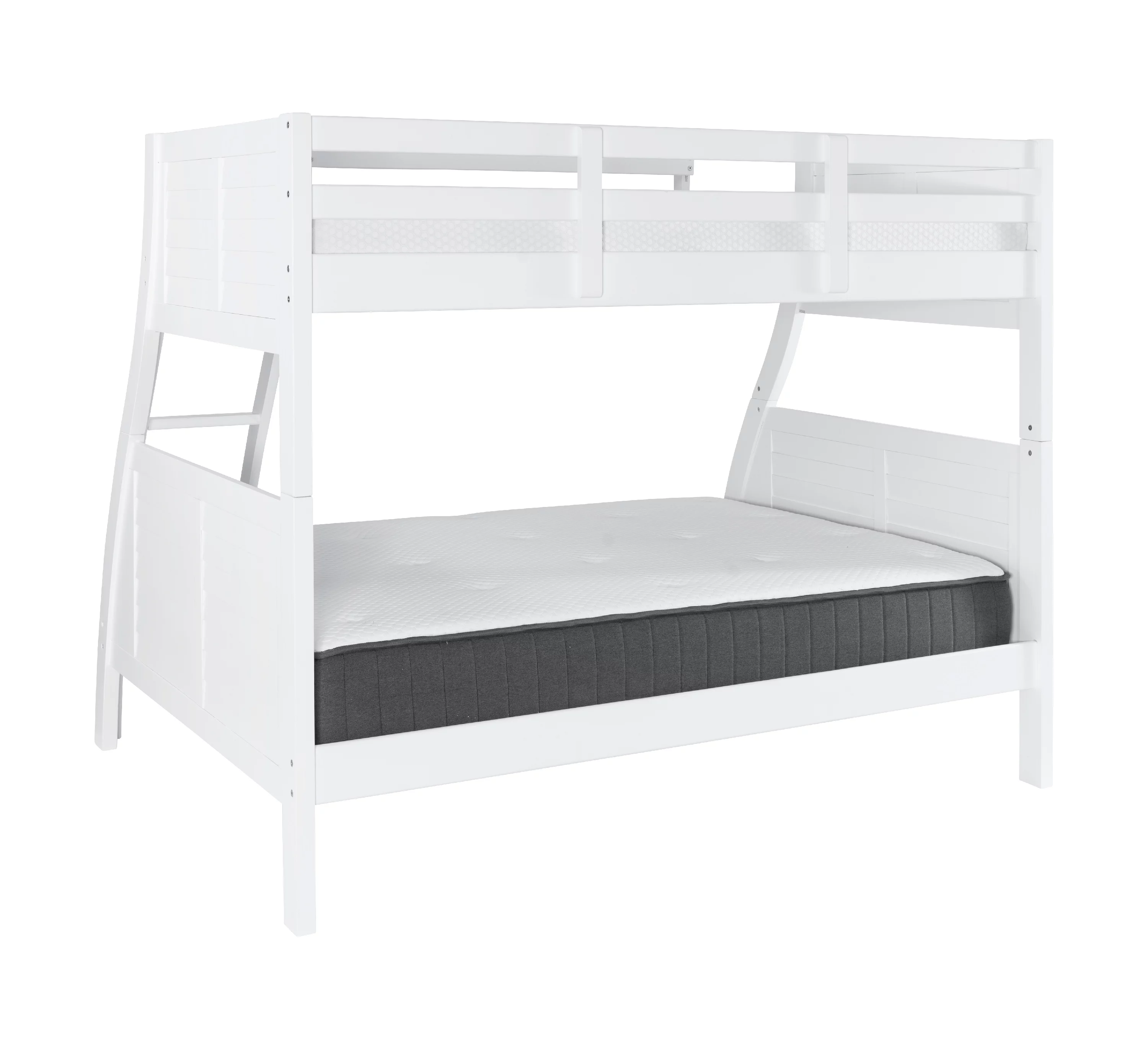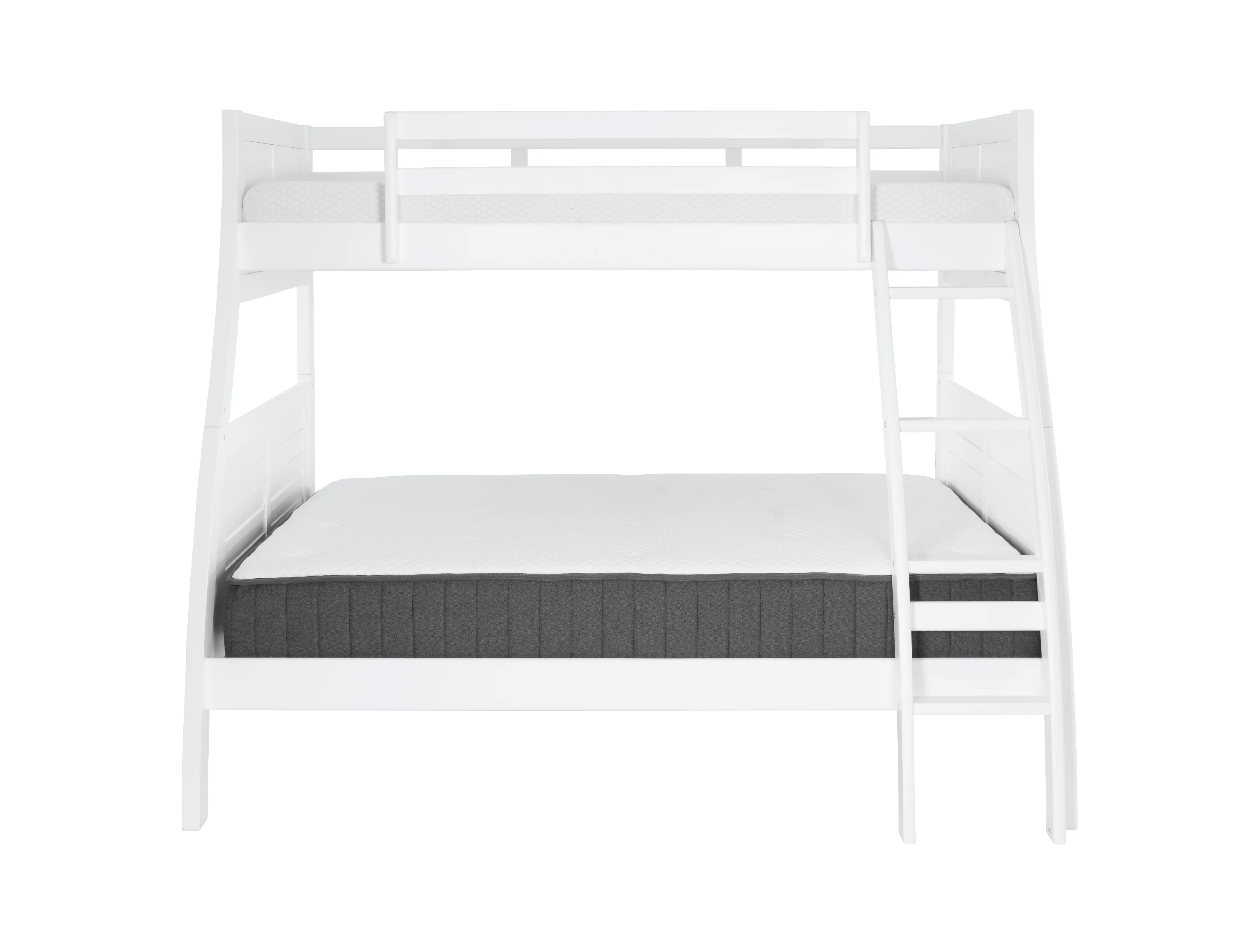My Bed Now Olympus Twin-over-Full Solid Wood Bunk Bed with Ladder in White Mist