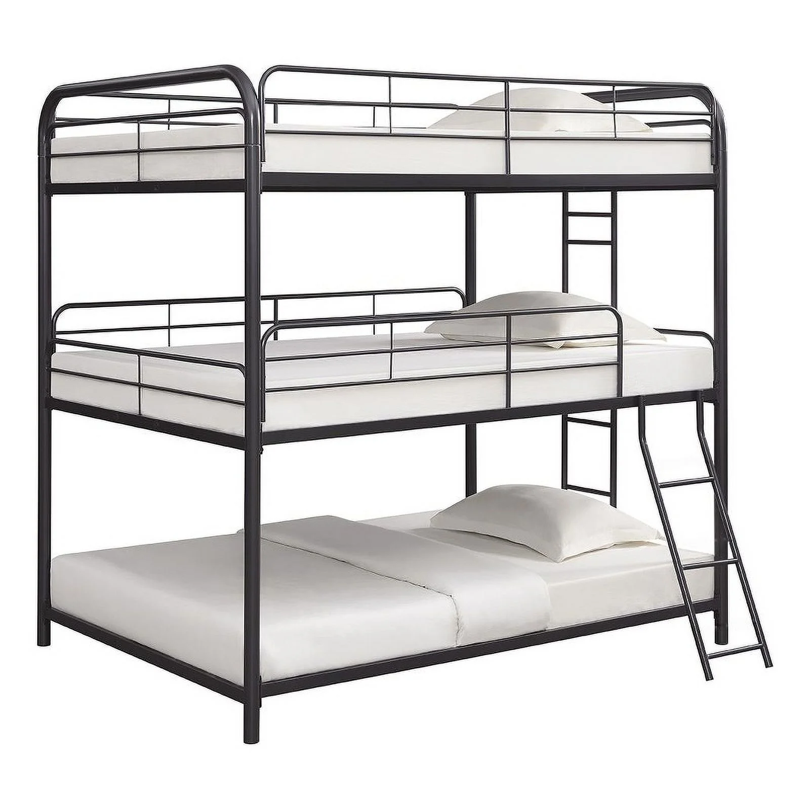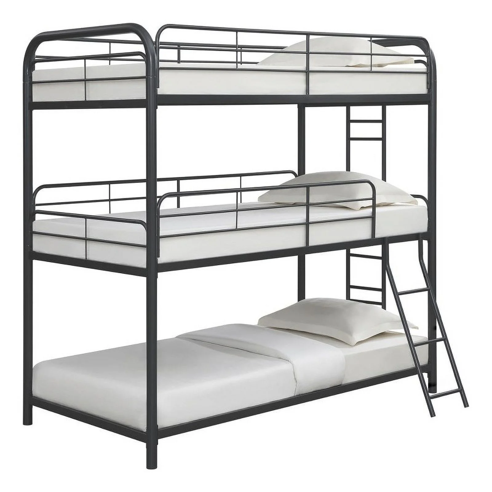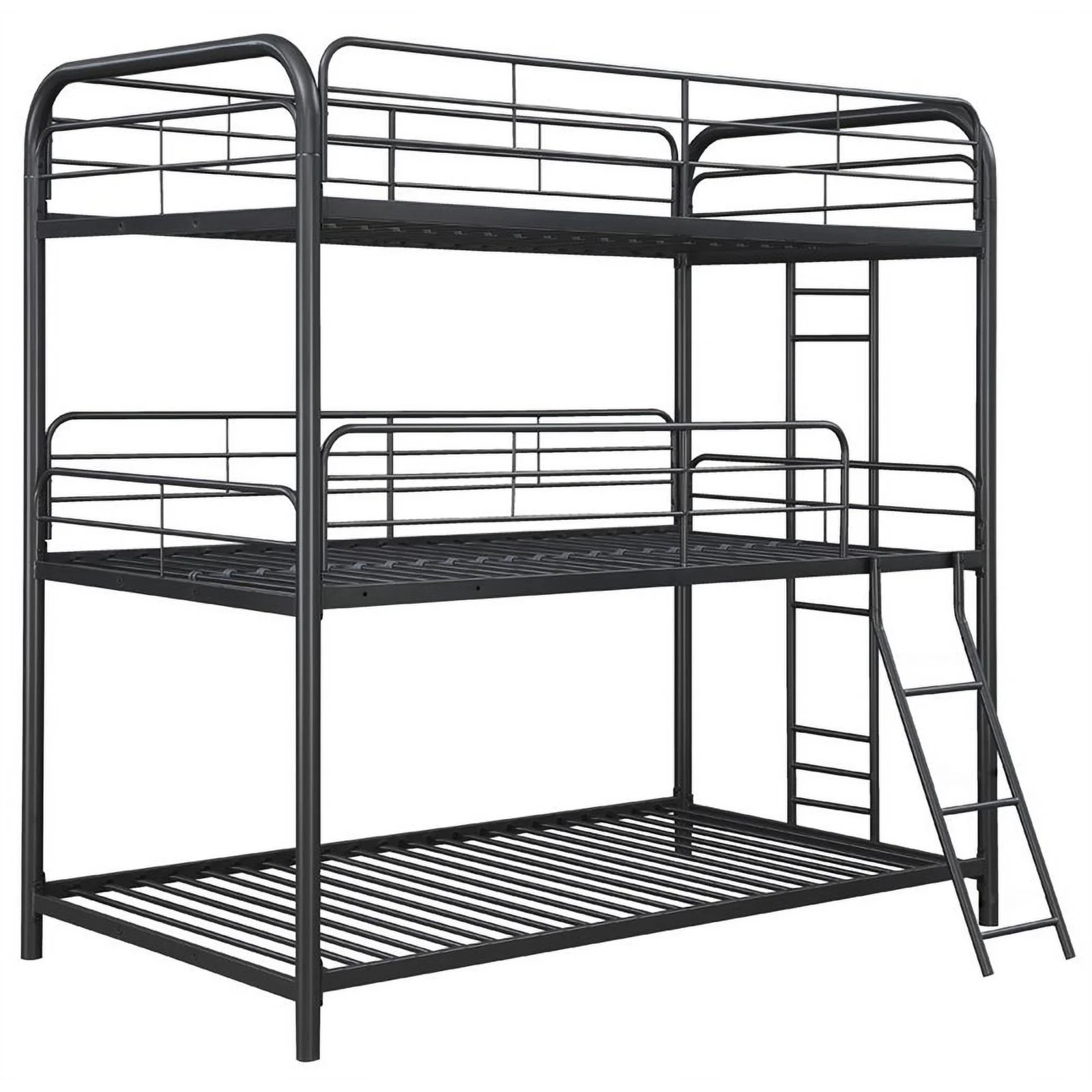 Pemberly Row Triple Twin Farmhouse Metal Bunk Bed with Ladder Gunmetal