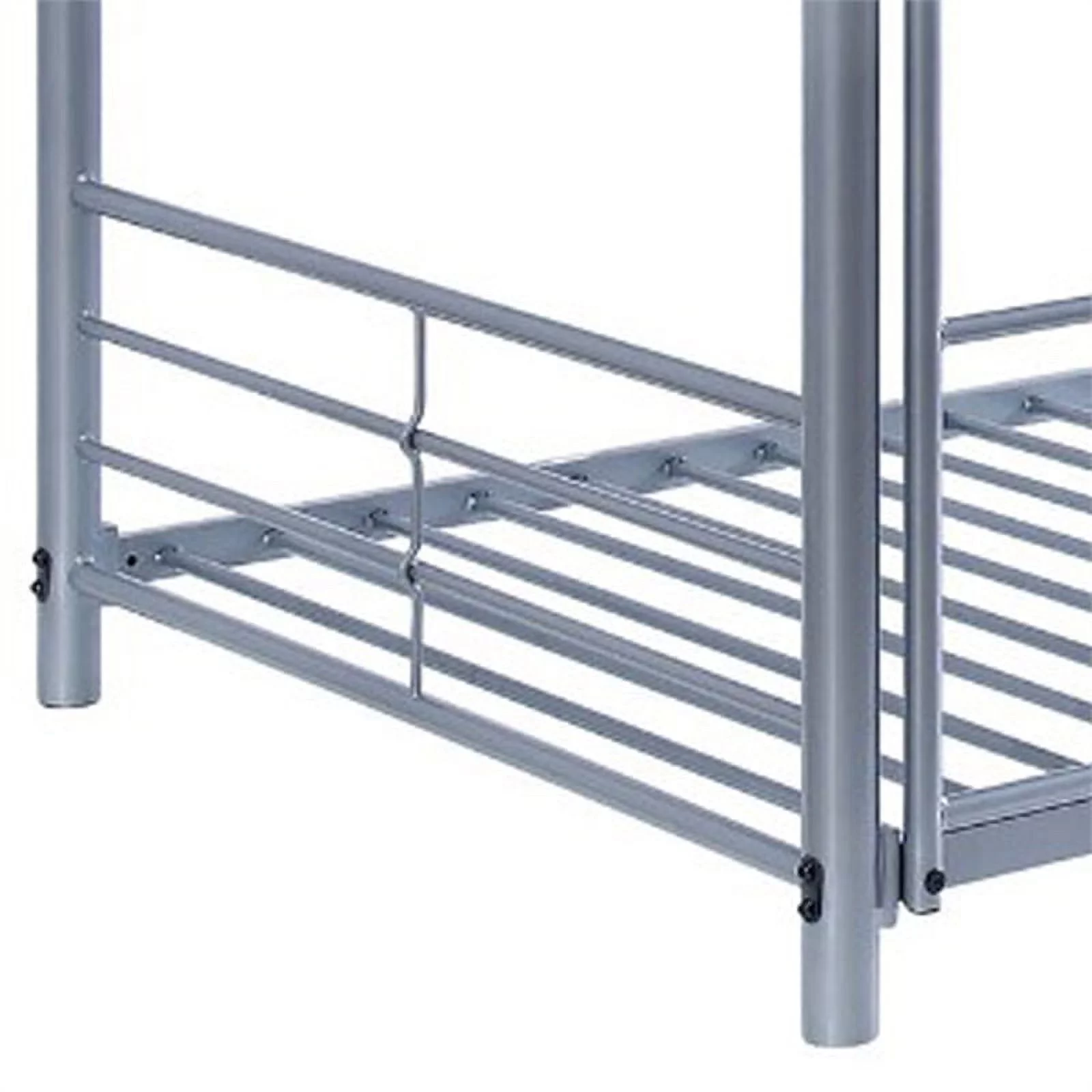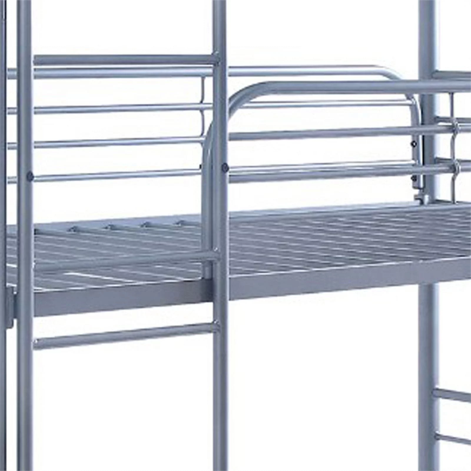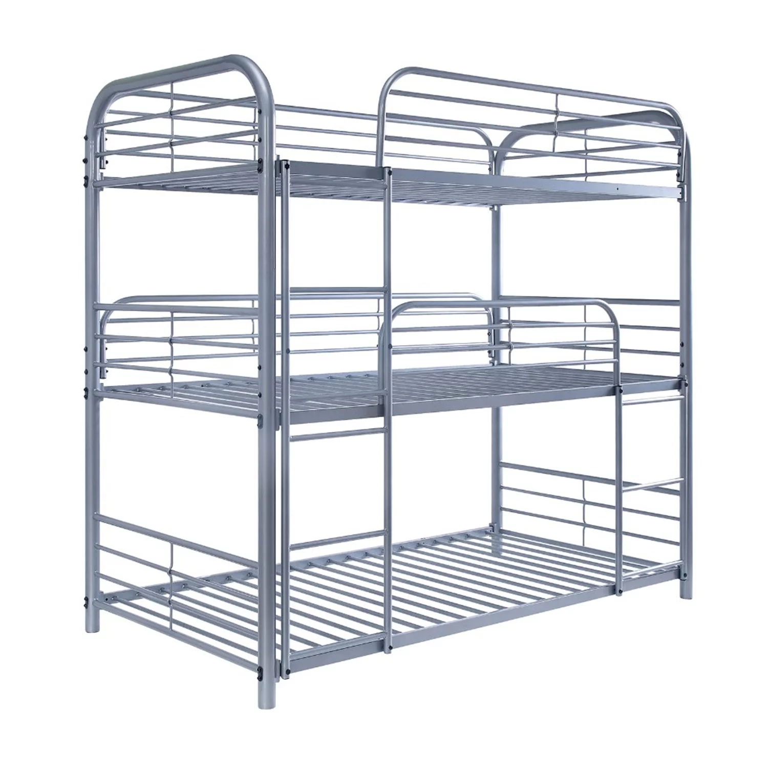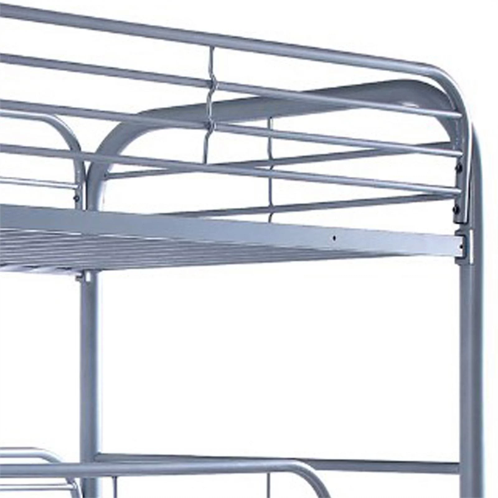 Benzara Metal Frame Three Tier Twin Size Bunk Bed with 2 Attached Ladders and Side Rails, White-Color:Silver